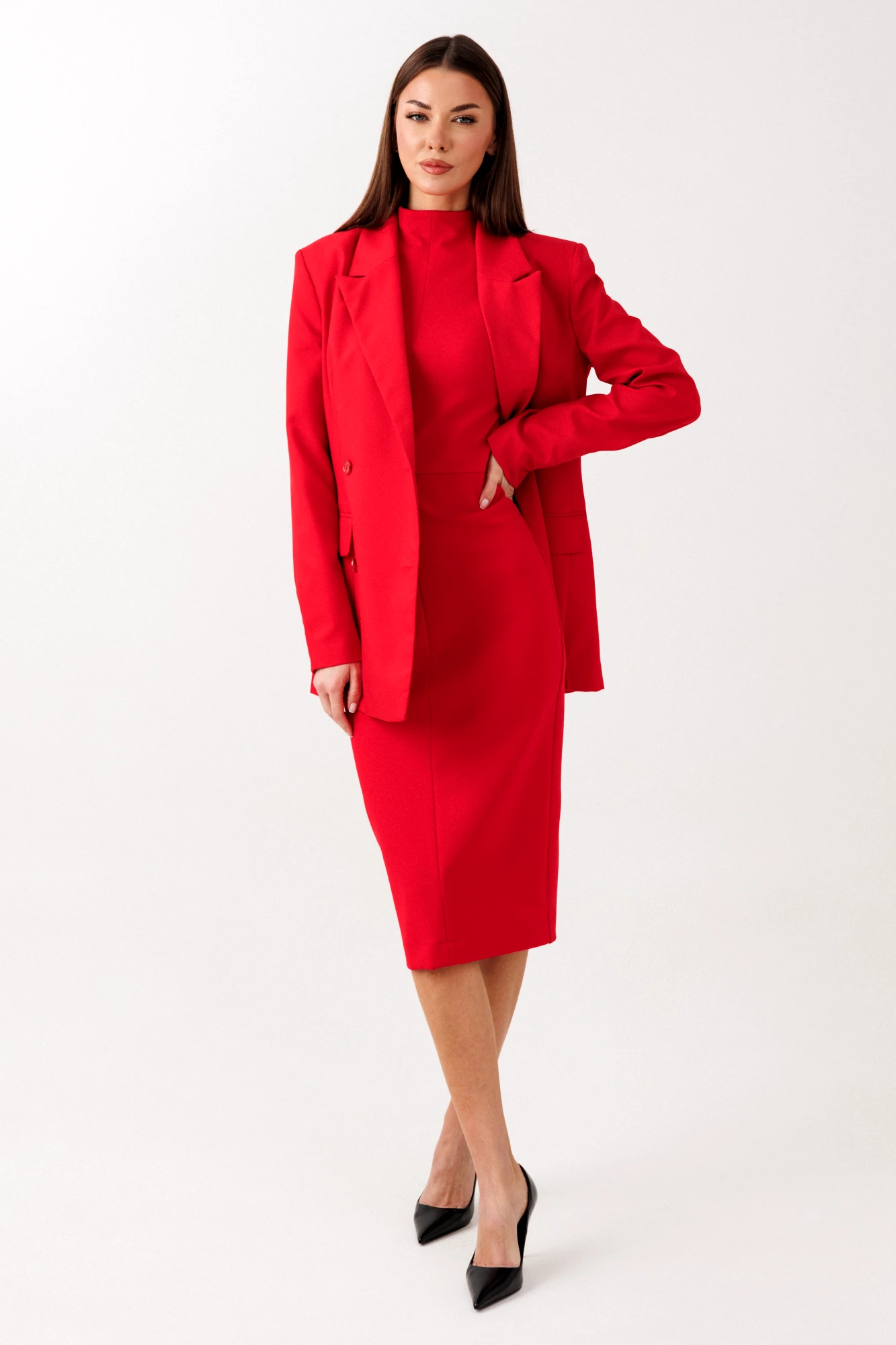 жакет: 65% полиэстер, 32% вискоза, 3% спандекс платье: 65% вискоза, 30% нейлон, 5% эластан