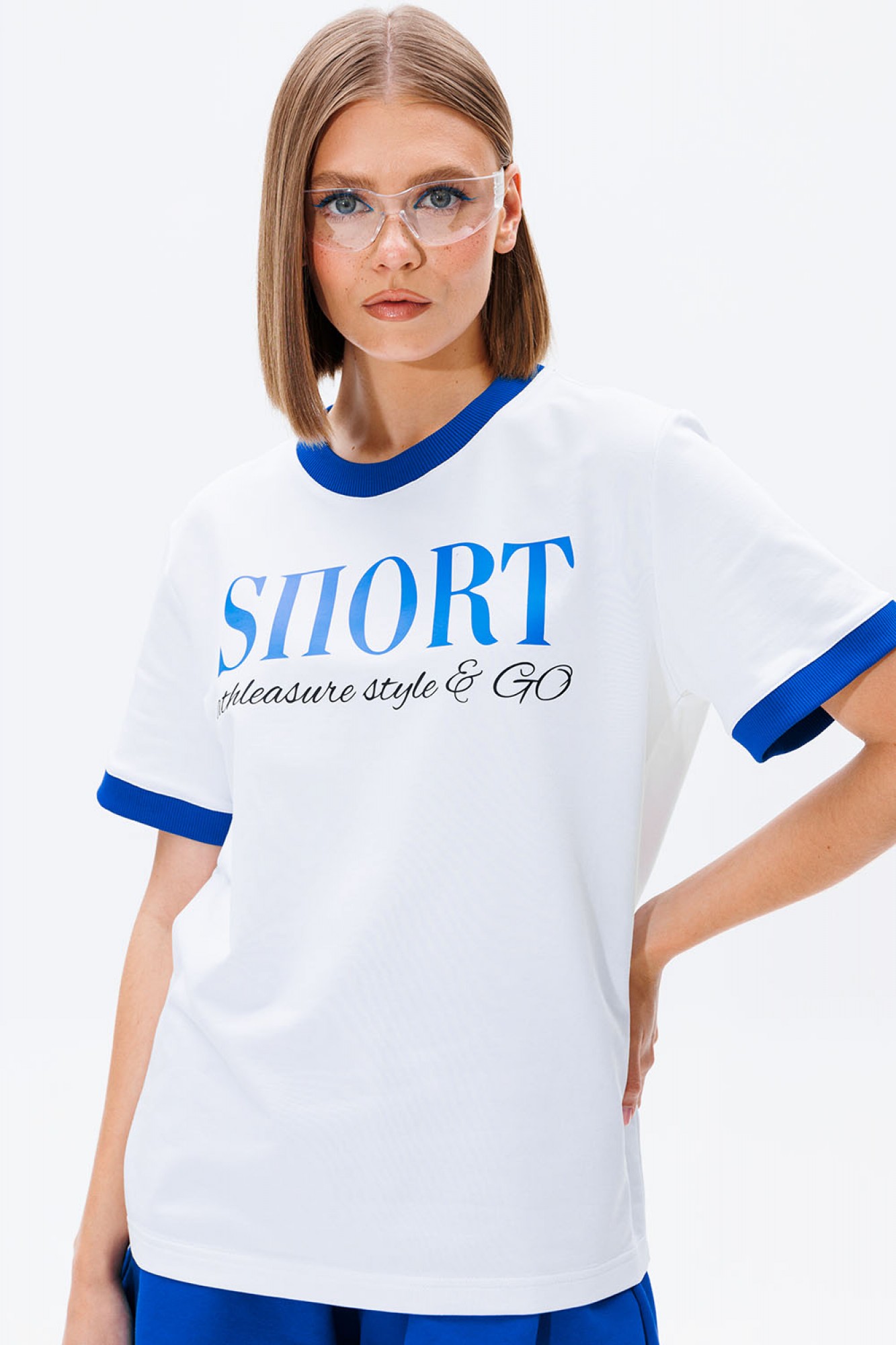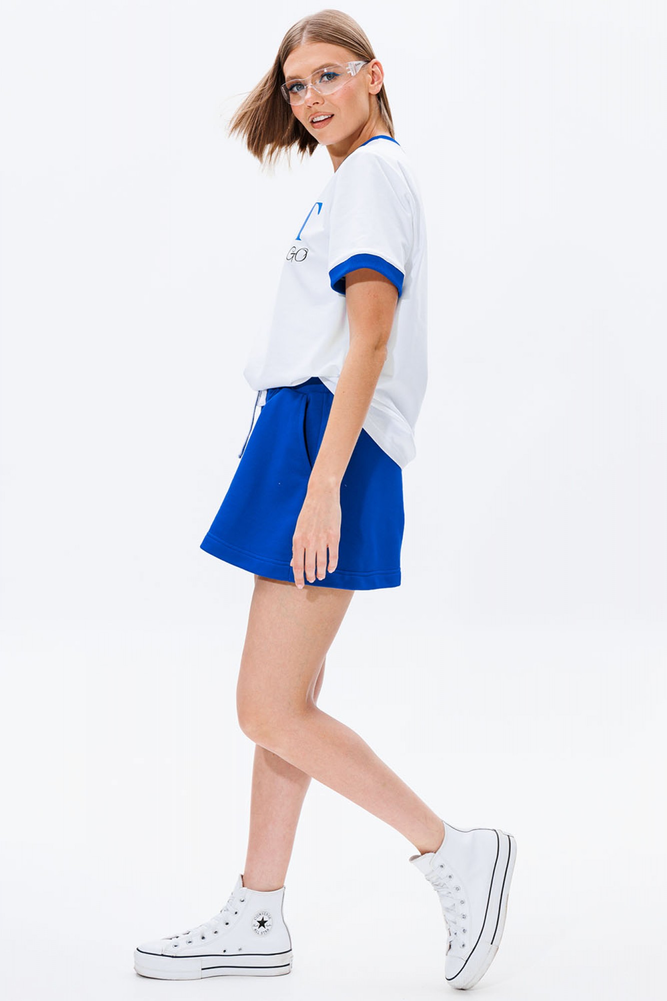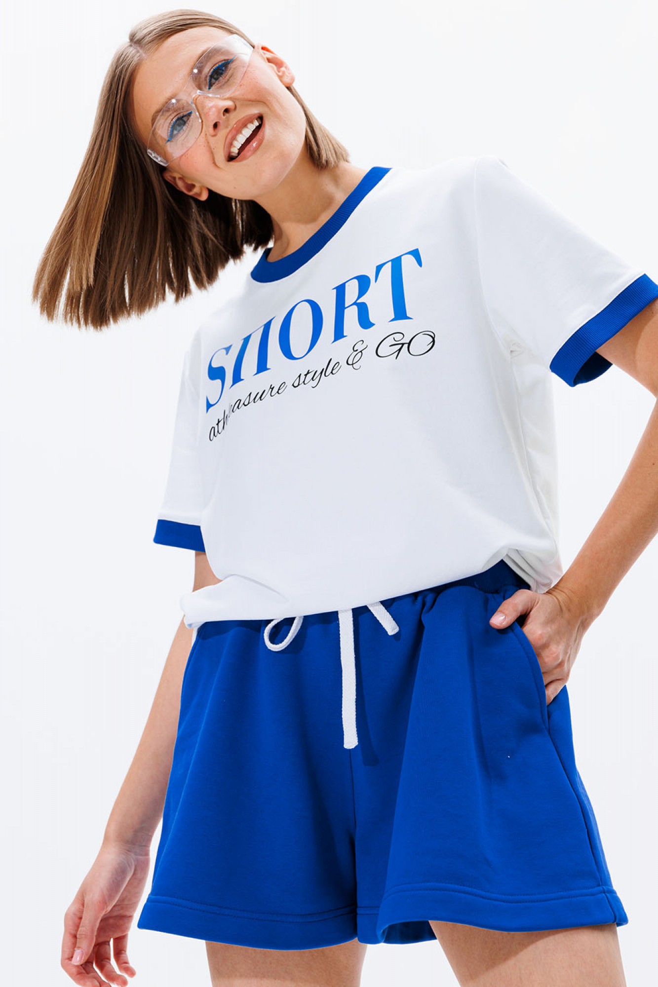 Найден рецепт летнего настроения! Главные ингредиенты - удобные шорты и стильная футболка! Футболка: классический крой и облегание, контрастная печать, контрастная бейка на горловине и рукавах. Шорты: расширенные к низу, трапециевидный силуэт, высокая посадка, пояс из кашкорсе, пояс с резинкой и шнуром, удобные боковые карманы.