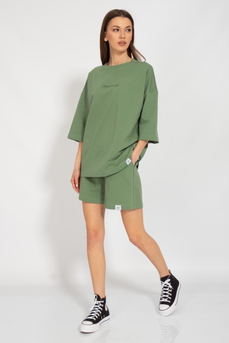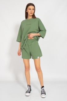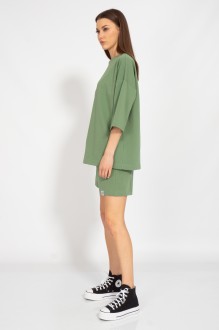 Костюм оверсайз с классическими прямыми шортами средней посадки с карманами в боковых швах. Свитшот оверсайз с приспущенным рукавом Ткань 2-х ниточный футер внутренним слоем из хлопка, качество Пенье, плотность 265 г.м2..