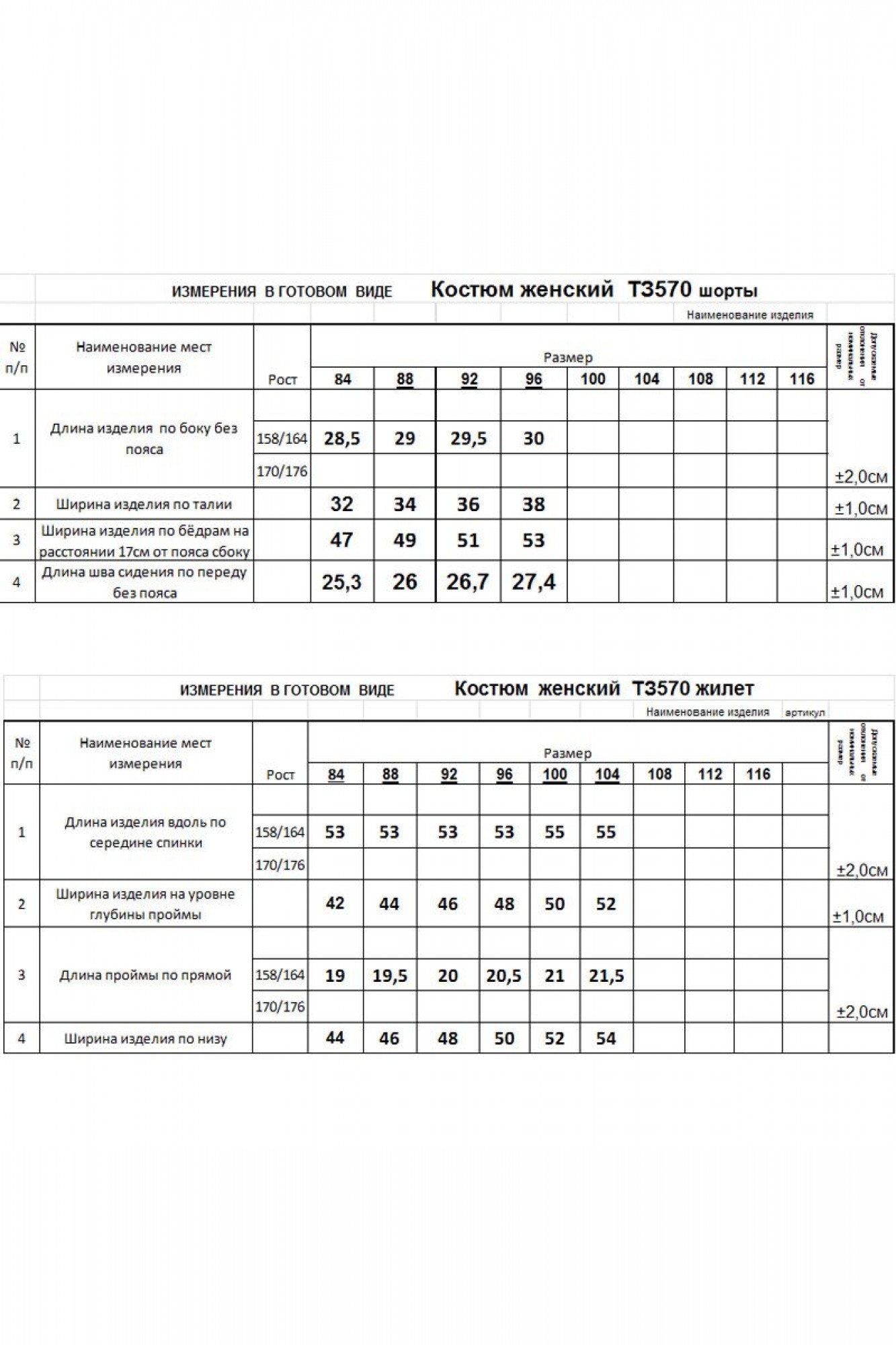 Таблица размеров