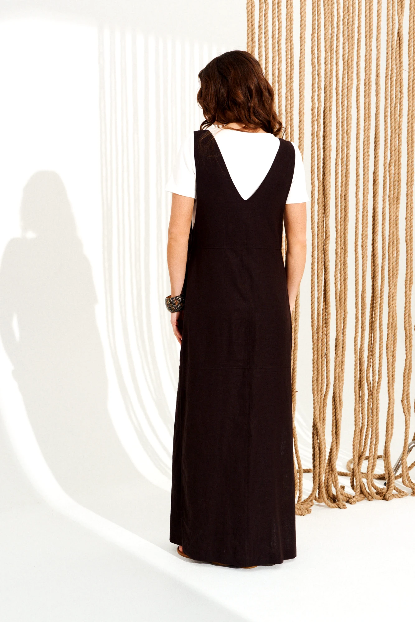 сарафан: 55% лён, 45% вискоза; джемпер: 95% хлопок, 5% эластан