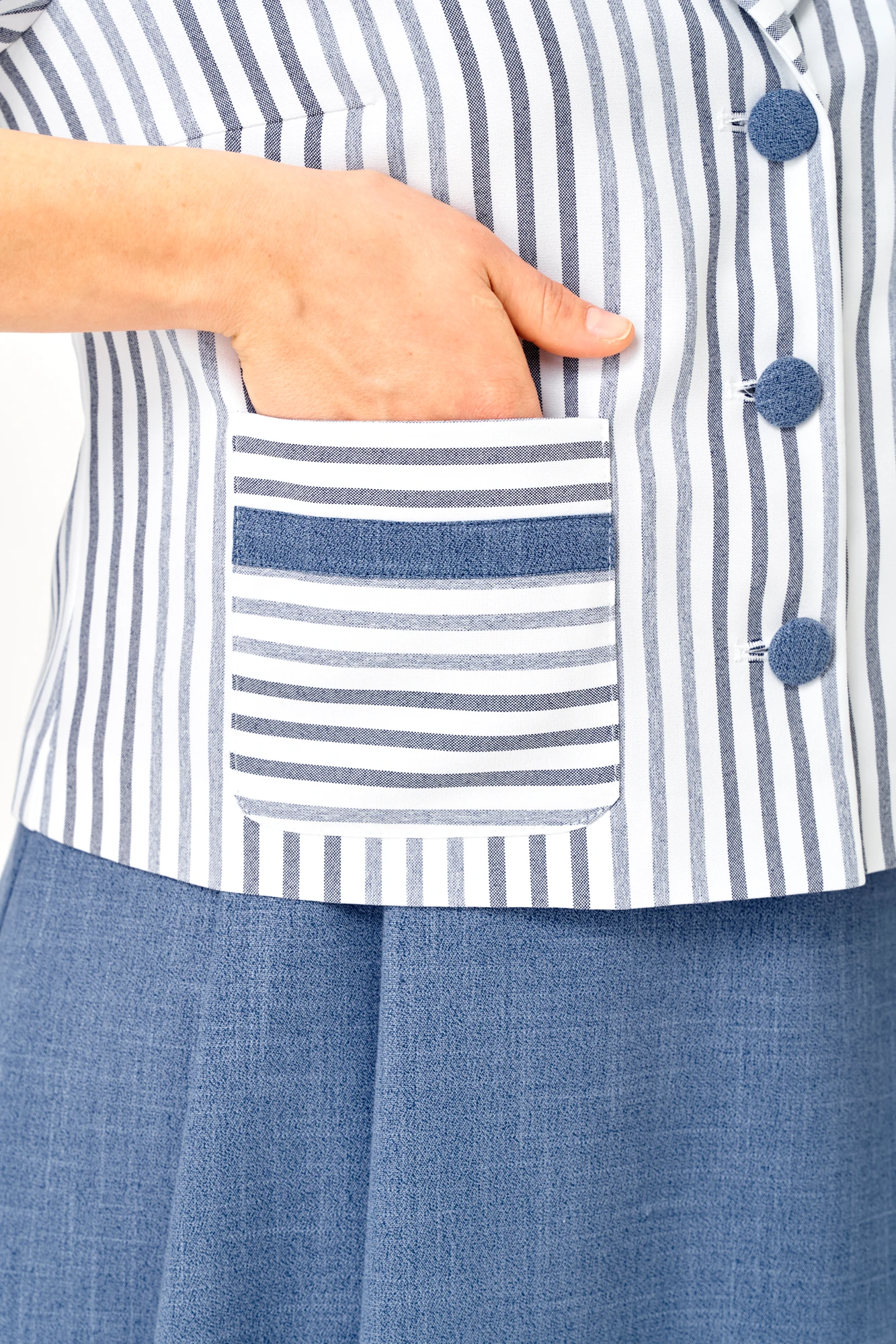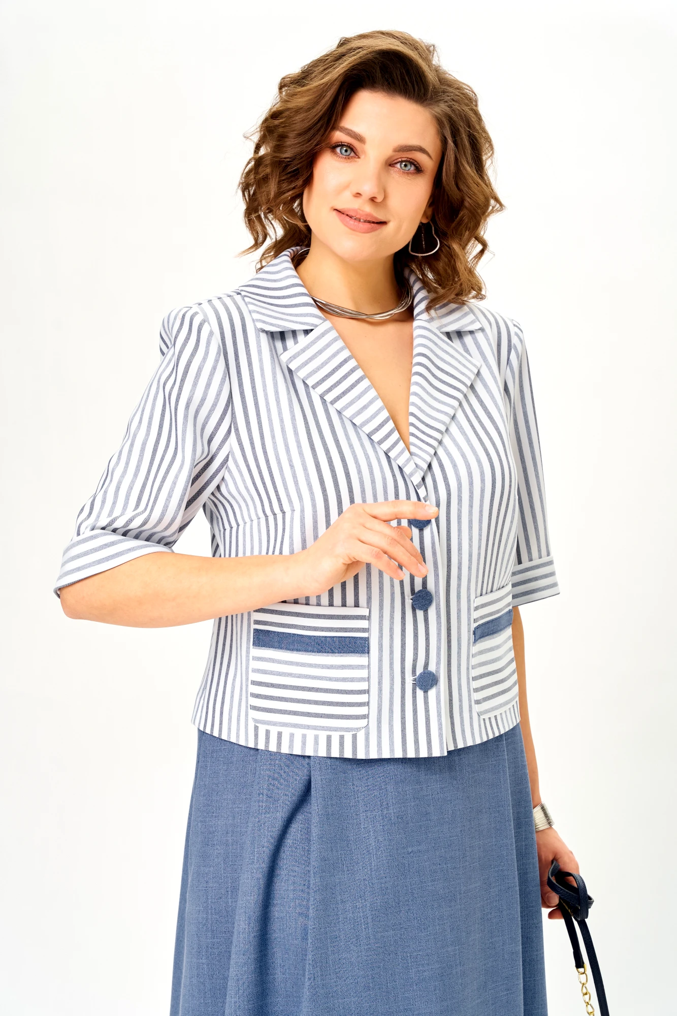 Юбочный костюм Aira Style 24141 двойка синий, полоска