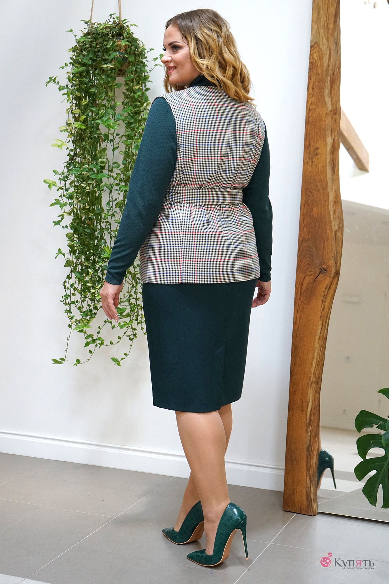 Юбочный костюм ALANI COLLECTION 1227 гусиная лапка и изумруд с ID товара 245695