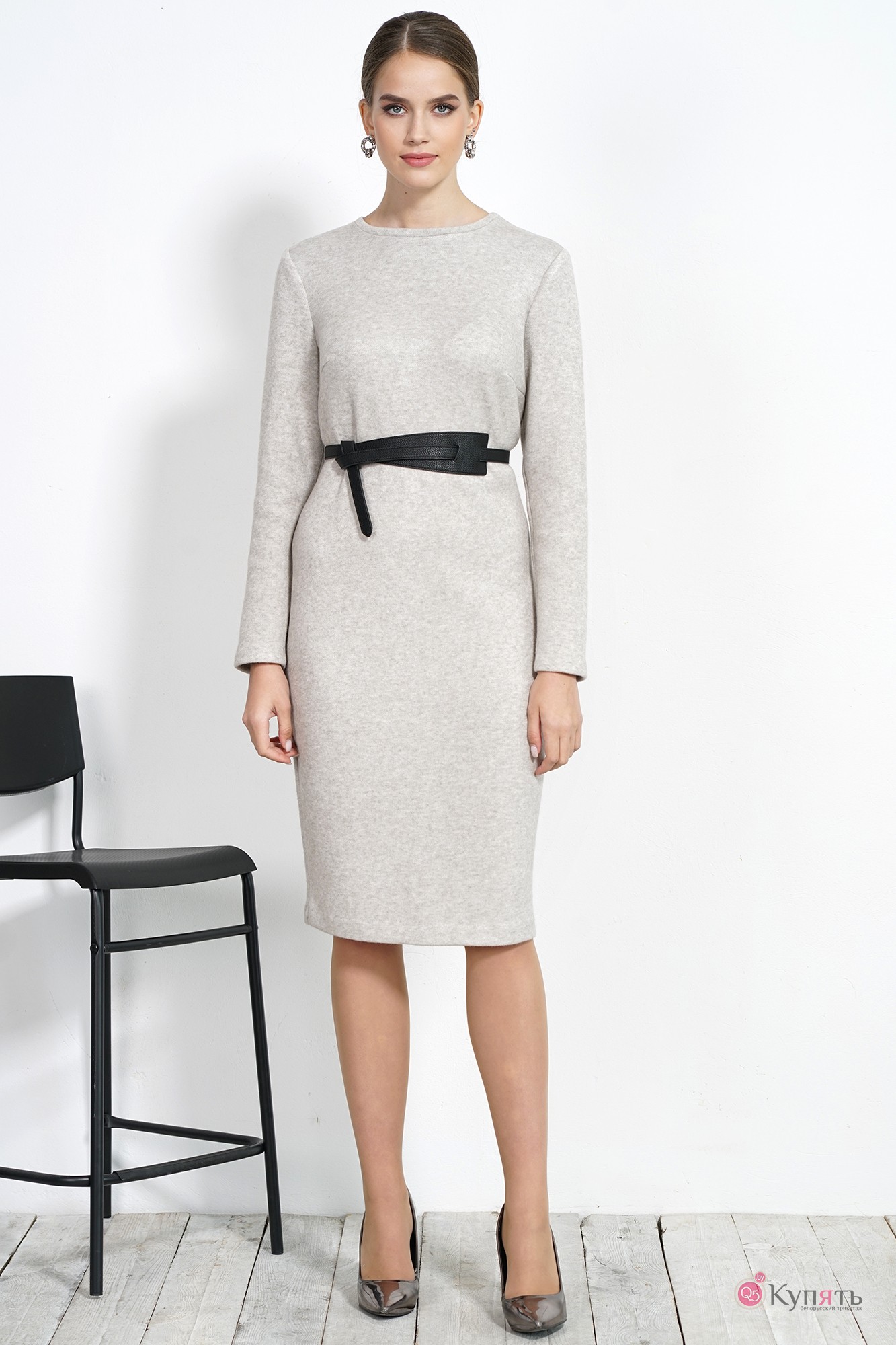 Платье полуприлегающего силуэта с застежкой на потайную тесьму-молнию в среднем шве спинки. Перед с нагрудными вытачками. Спинка со средним швом. Рукава втачные, одношовные, длинные. По горловине бейка.
