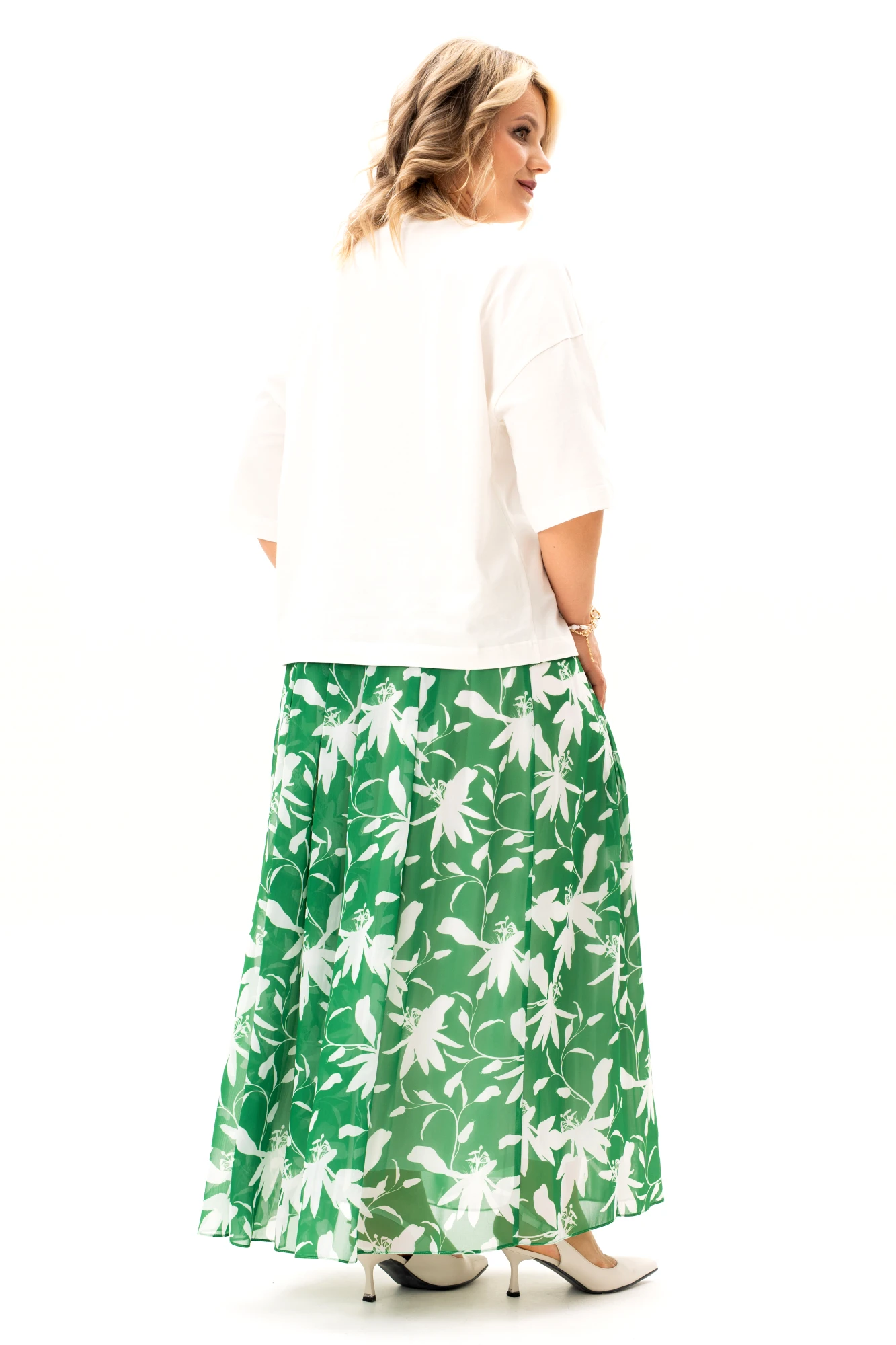 Юбочный костюм ALGRANDA (Novella Sharm) A4152 Изумруд, Молочный