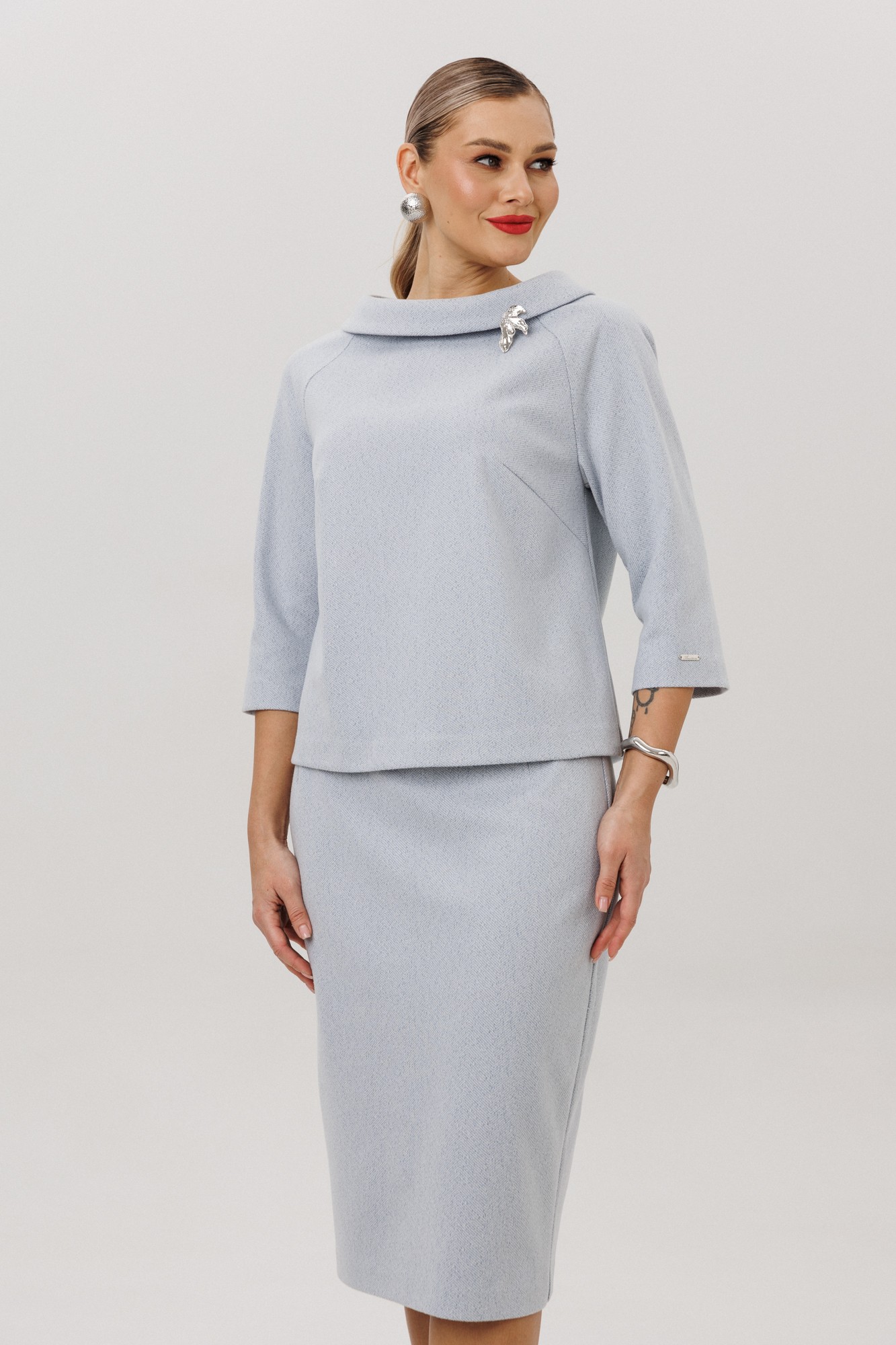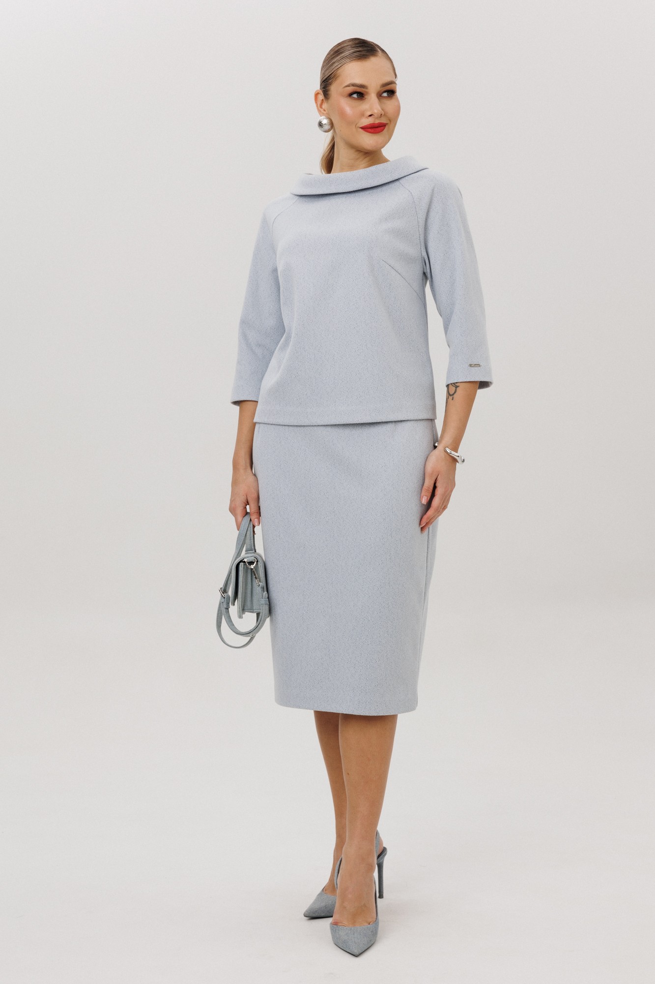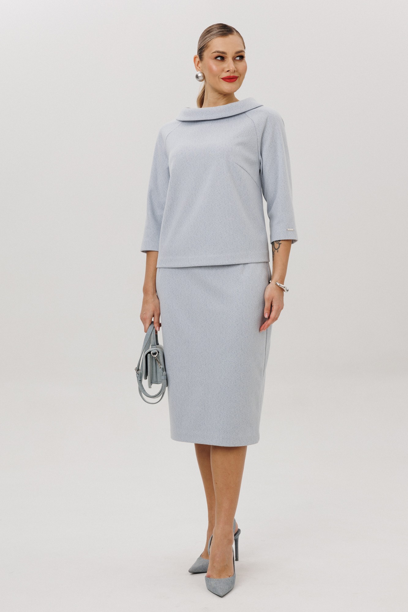Юбочный костюм Anastasia м-1163 двойка серо-голубой