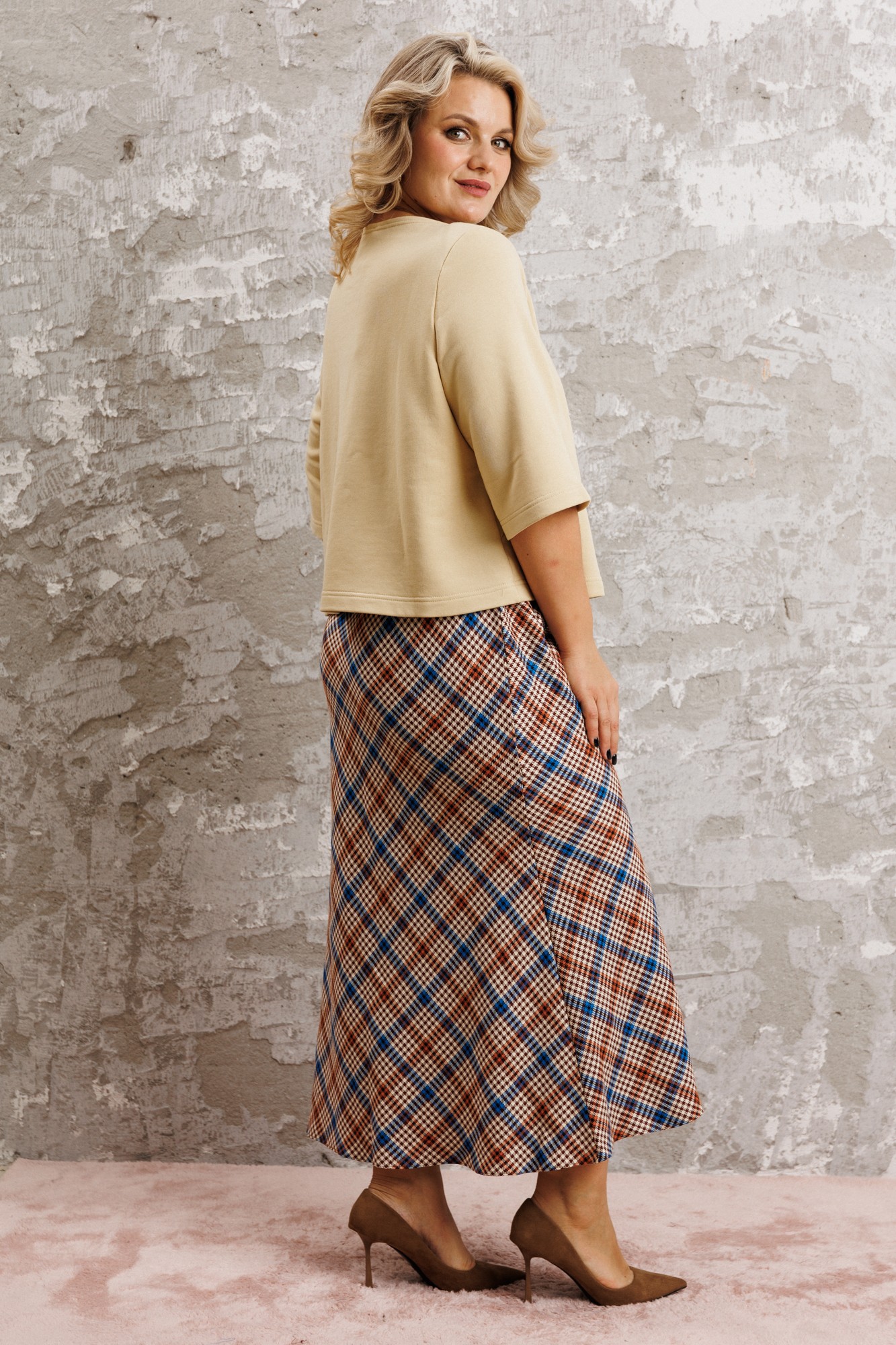 Юбочный костюм Anastasia м-1174 сливочный, клетка
