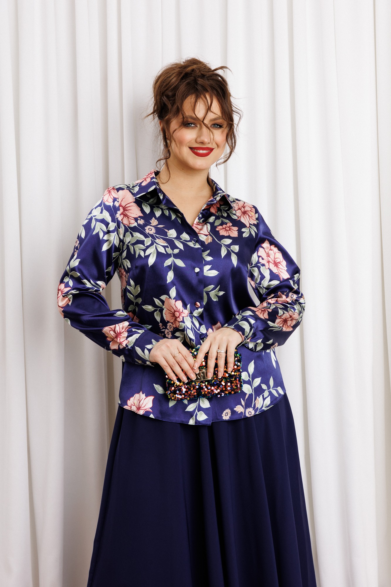 Женский комплект с юбкой макси от Anastasia- для стильных и уверенных в себе женщин. Изготовленный из премиум ткани, этот комплект включает атласную блузку и юбку из двойного шифона. Комплект двойка позволяет создавать как нарядные образы для вечерних выходов, так и строгие луки для офиса. Блузка полуприлегающего силуэта, застежка на планку и пуговицы, воротник на стойке. По полочке грудная вытачка из бокового шва. Рукав втачной, на манжете. Наша классическая блузка сшита из высококачественной английской атласной ткани, которая очень приятна к телу, не линяет и не мнется. Наша красивая блузка подойдет для беременных. Модная и стильная блузка будет актуальна в любое время года. Изделие подходит также для девушек с размером plus size. Великолепный фасон-юбка солнце длиной макси и резинкой на поясе обеспечивает идеальную посадку по фигуре, подчеркивая ваши достоинства и создавая элегантный силуэт. Сочетание оригинального модного дизайна и классического стиля делает этот комплект настоящей находкой для вашего гардероба. Части комплекта вы можете легко носить как самостоятельные изделия. Юбку легко сочетать с различными верхами: топ, блузка, футболка, кружевной жакет, свитер или жакет из текстиля- все это позволит создавать различные образы на разные случаи. Благодаря своей длине блузкой можно дополнять различные комплекты из вашего гардероба. Почувствуйте себя уверенно и элегантно нашем комплекте!