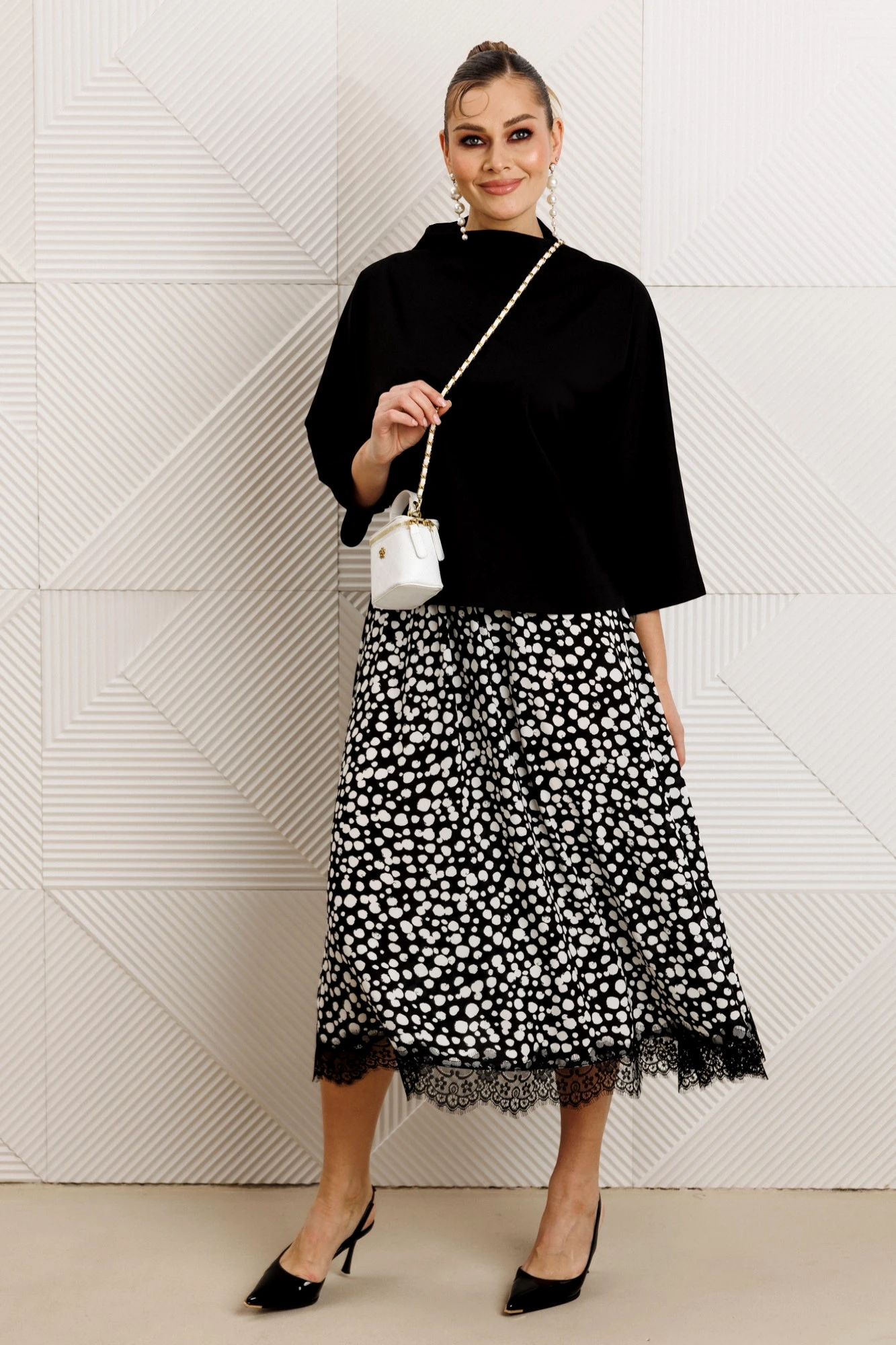 Представляем вашему вниманию стильный комплект, который станет настоящим маст-хэвом в вашем гардеробе. Этот комплект станет вашим верным спутником в любой ситуации, добавляя нотки элегантности и шарма в вашу повседневную жизнь. Комплект женский 2-х предметный (блузка, юбка). Блузка прямого силуэта, из трикотажного полотна, со спущенным плечом станет незаменимой вещью в вашем гардеробе. Рукав "летучая мышь", 3/4 длины. Горловина цельнокроенная в виде стойки. Юбка расширенная к низу. По низу тренд нового сезона - кружево. Пояс на резинке. Для повседневного ношения отлично подойдёт будущим мамам и беременным. Мягкая резинка в поясе не давит и идеально держится на любой талии. Модель легкой миди в стиле бохо и кэжуал подходит на любую фигуру и отлично вписывается в базовый гардероб для повседневного ношения на работу в офис стиле оверсайз. Отдельные части комлекта будут легко сочетаться с вещами из вашего гардероба. Внимание: рекомендуем использовать антистатик в случае, если юбка электризуется.