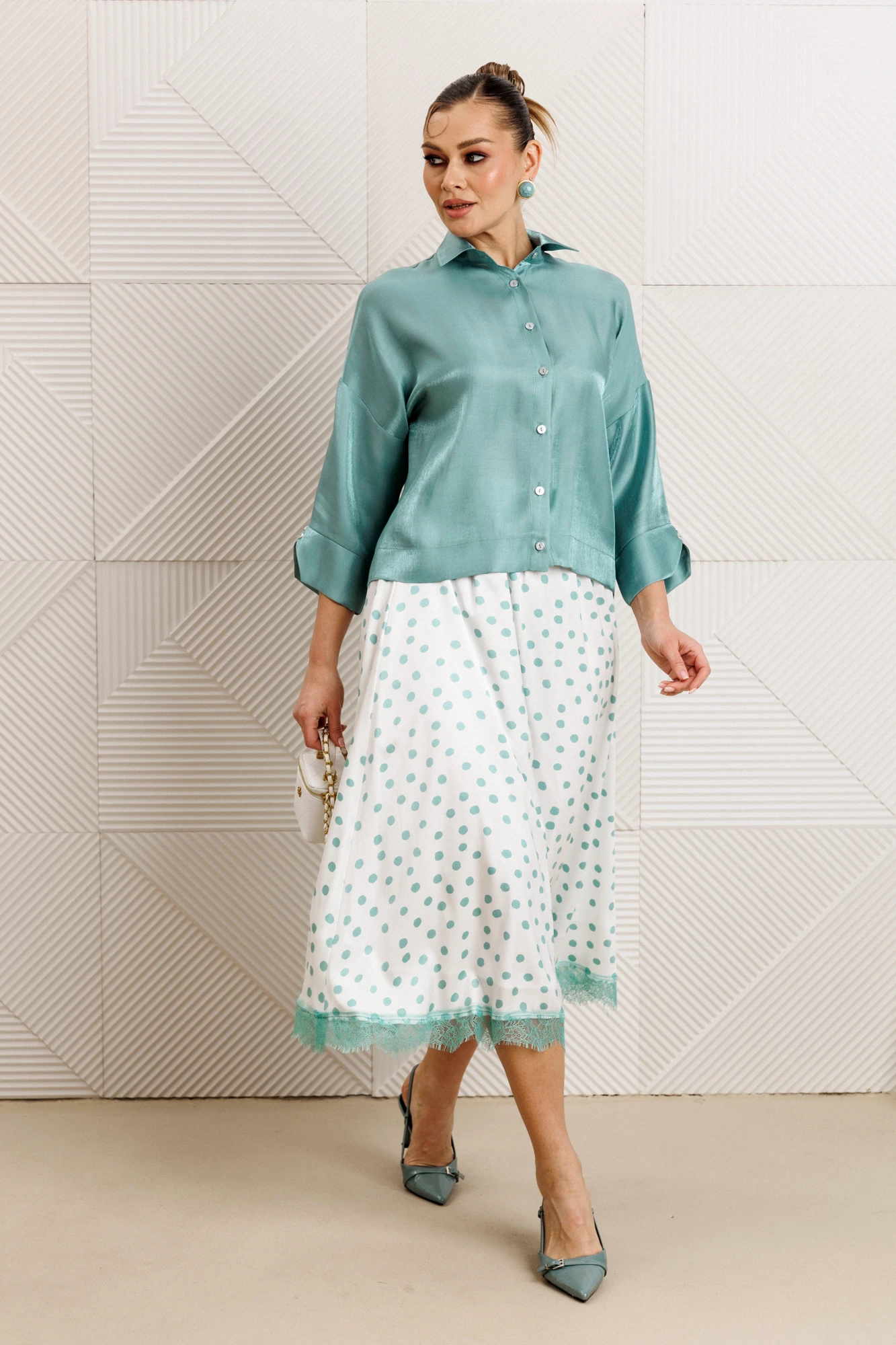 Блузка: вискоза-90%, полиэстер-10%, Юбка: полиэстер-100% , подкладка: полиэстр-98%, спандекс-2%
