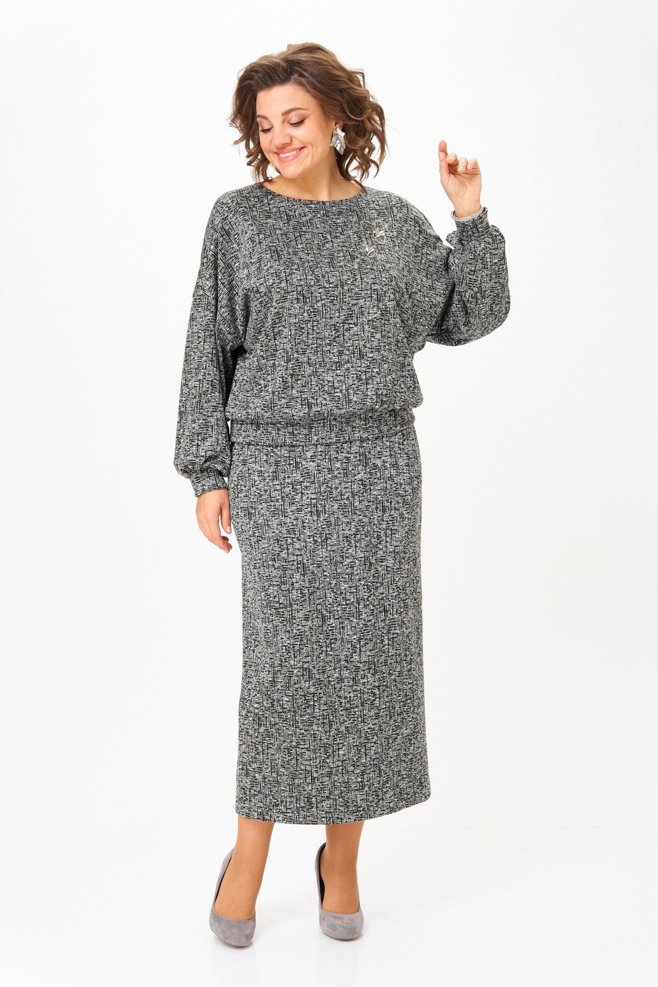 Предлагаем стильный костюм от бренда «AXXA», выполненный из легкого комфортного трикотажа приятного к телу. Комплект состоит из блузы свободного покроя и стильной юбки. Горловина блузы округлой формы, линия плеча спущена. Рукав полноценной длины, по низу присобран на манжету. Юбка прямого силуэта, пояс выполнен на широкой резинке, что придает дополнительный комфорт. Спинка юбки со средним швом. Элегантный высокий разрез усиливает эффект стройности и создает комфорт при движении. К блузе прилагается съёмный стильный декор, что придает свою изюминку данному комплекту. Свободная блуза и длинная юбка макси подчеркивают женственность и грацию, делая этот костюм фаворитом в Вашем гардеробе. Отличный вариант для офиса, прогулок или встреч с друзьями.