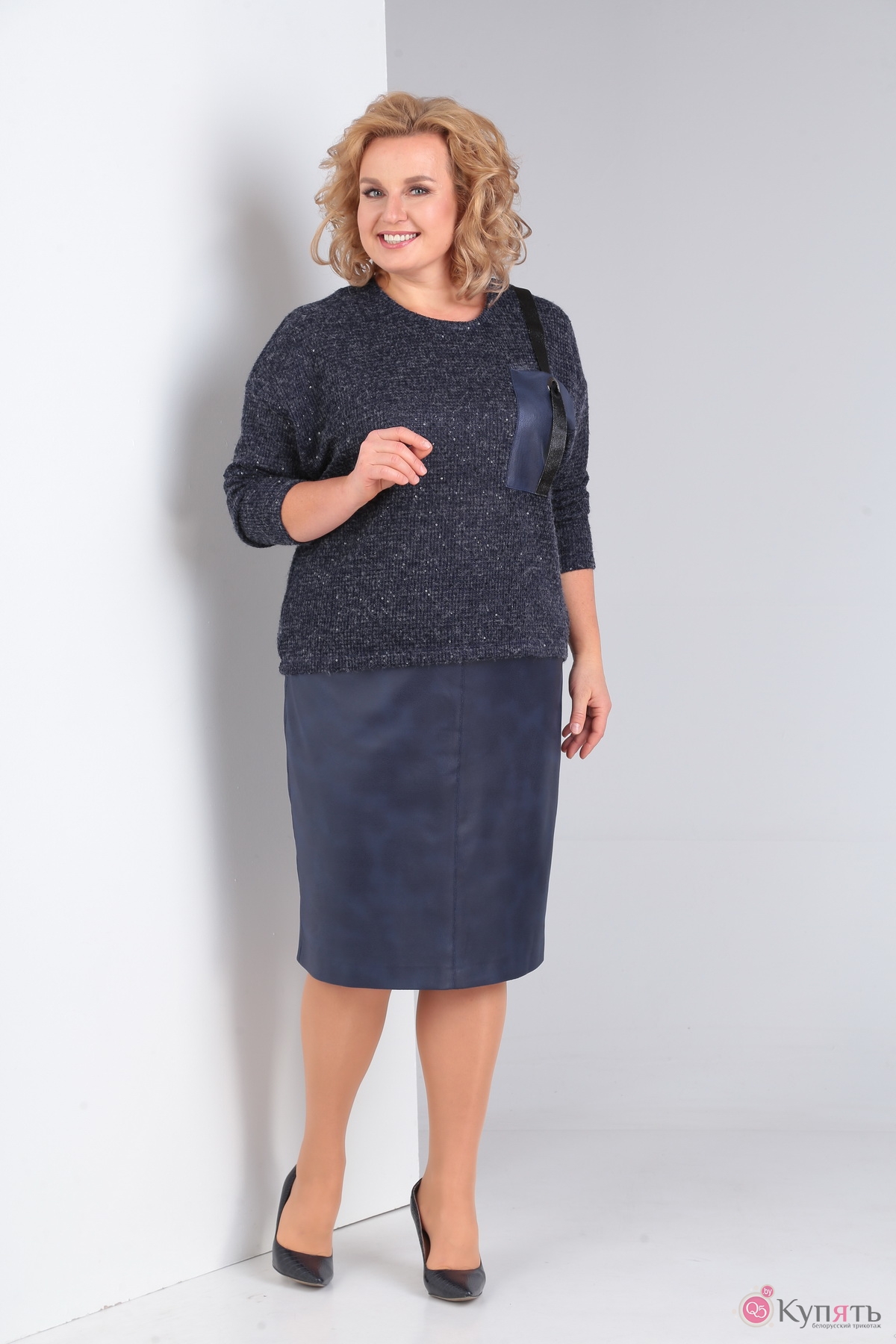 блузон - 60% ангора, 20% вискоза, 20% ПЭ; юбка - 100% ПЭ (экокожа)