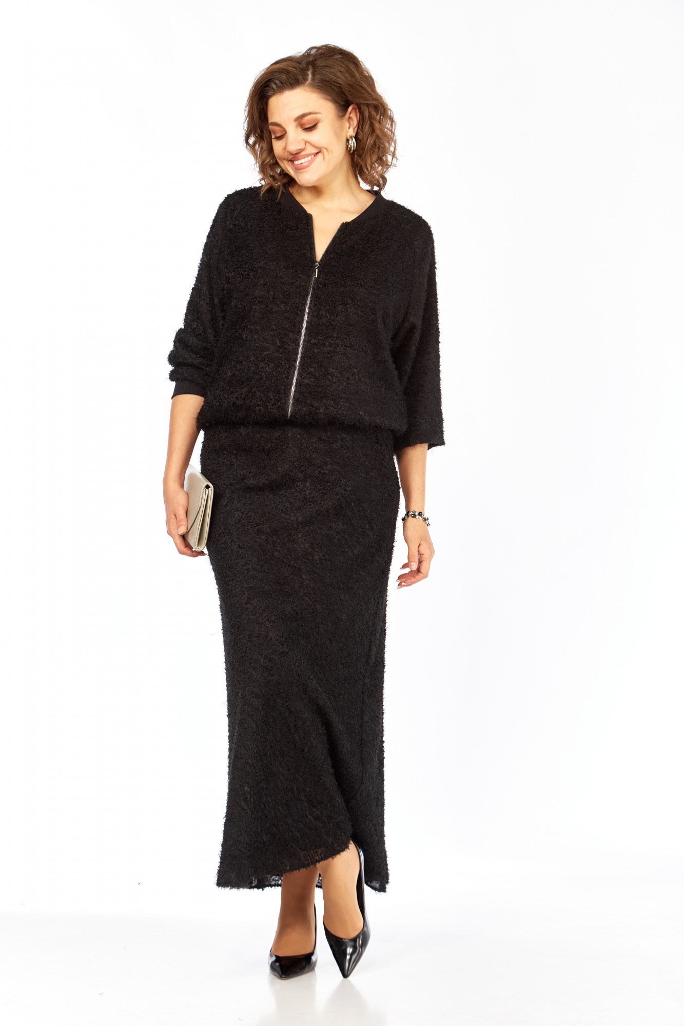 Костюм женский с юбкой. Кофта с центральной застежкой на тесьму-молнию, рукава-реглан. По низу изделия и низу рукава - манжет из отделочной ткани. По горловине воротник-стойка из отделочной ткани. Кофта на подкладке. Юбка длинная, верхний срез обработан поясом с резинкой сзади. Застежка в левом боковом шве на тесьму молнию, петлю-пуговицу. Юбка на подкладке.
