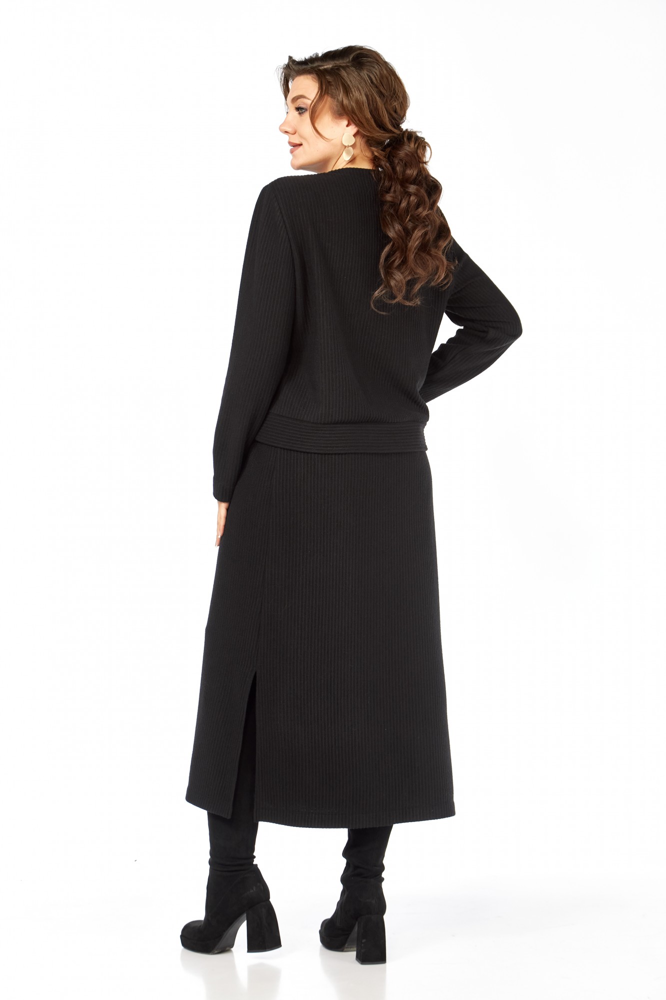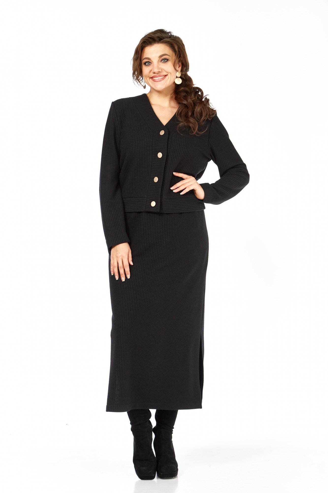 Осенний комплект джемпер и юбка, выполнен из мягкой и приятной к телу трикотажной ткани с добавлением натуральных нитей, которые обеспечивают комфорт и тепло в течение всего дня. Данный юбочный костюм идеально подходит как для офиса, так и для неформального повседневного использования. Джемпер прямого силуэта с втачным длинным рукавом. На передней части изделия расположена планка с застежкой на акцентные пуговицы. Юбка прямого силуэта на подкладке, пояс притачной на резинке в круговую , что обеспечивает комфортную посадку. В боковых швах предусмотрены разрезы.