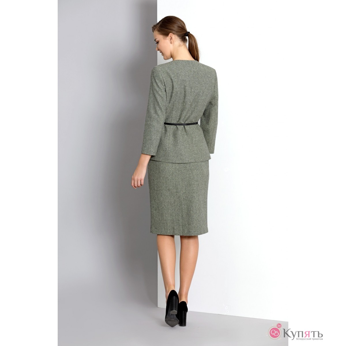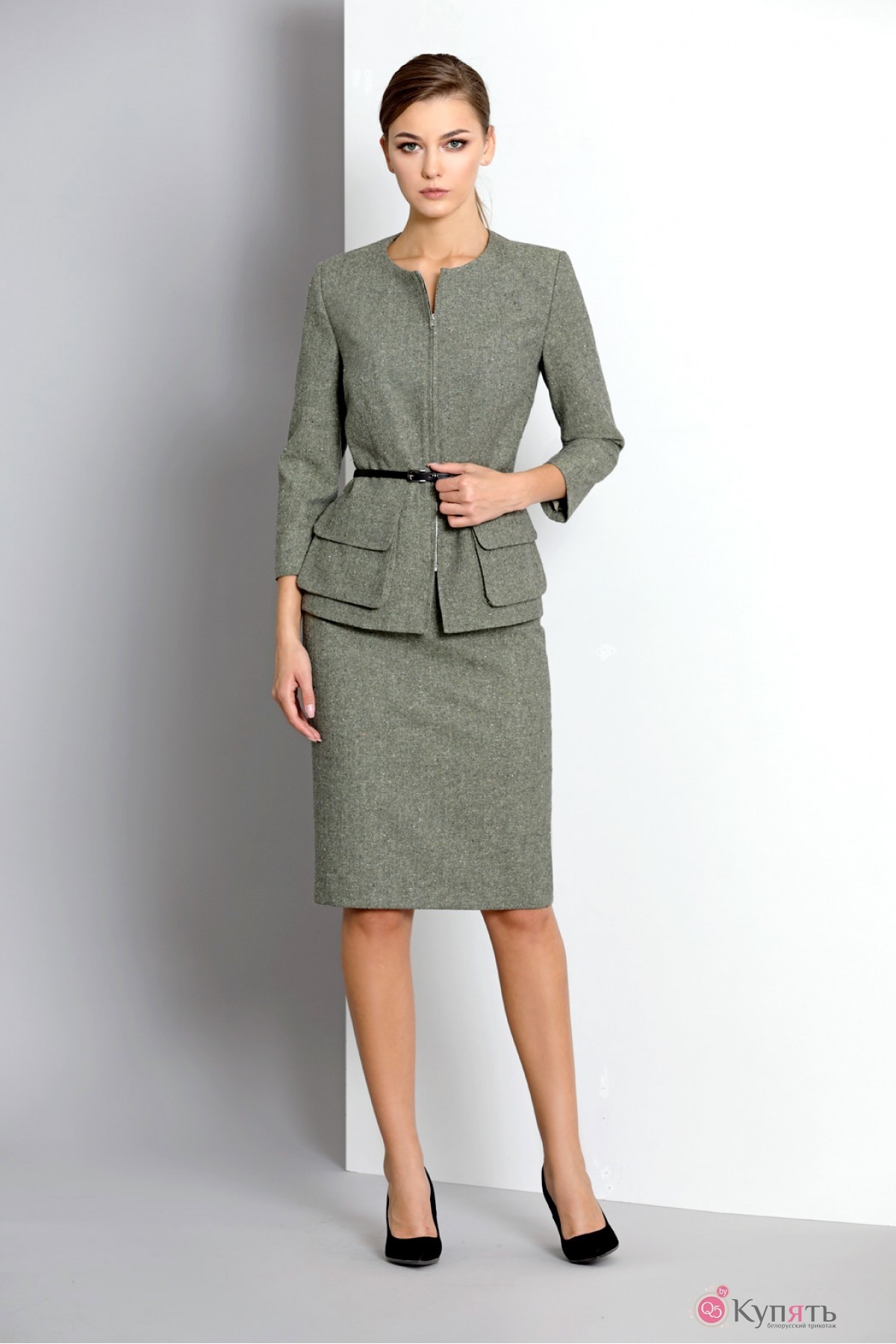 Комплект: жакет, юбка. Жакет с застежкой спереди на разъемную молнию,с боковыми накладными карманами "портфель" и декоративным клапаном. Рукав втачной длиной 3/4. Юбка на притачном поясе, с застежкой на потайную молнию в среднем шве задних половинок, со шлицей.