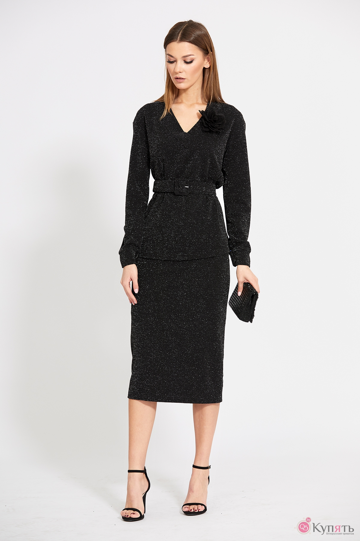 Юбочный костюм EOLA 1743 чёрный с блеском с ID товара 207149
