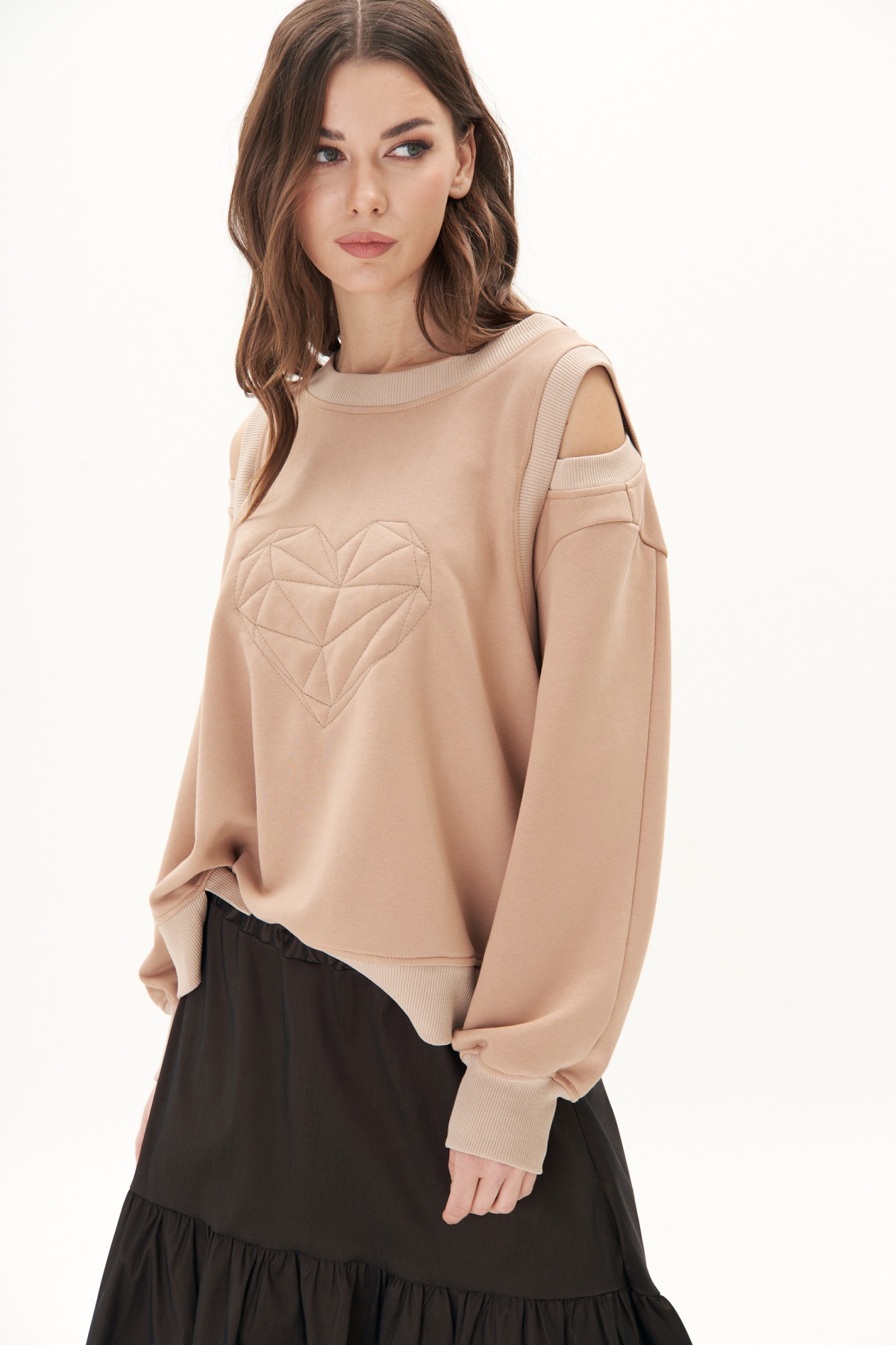Мода всегда приветствует новые и свежие решения. Поэтому комплекты необычного кроя становятся всё более популярными. Юбка А-силуэта, с разноуровневым низом на эластичном поясе с застёжкой по боковому шву. К верхней части юбки пришит эффектный конический волан со сборкой. Свитшот оригинального кроя с эффектными подрезами по полочке и спинке (образующими открытый участок в области плеча) эффектной наполненной выстрочкой на полочке и отделочными довязами.
