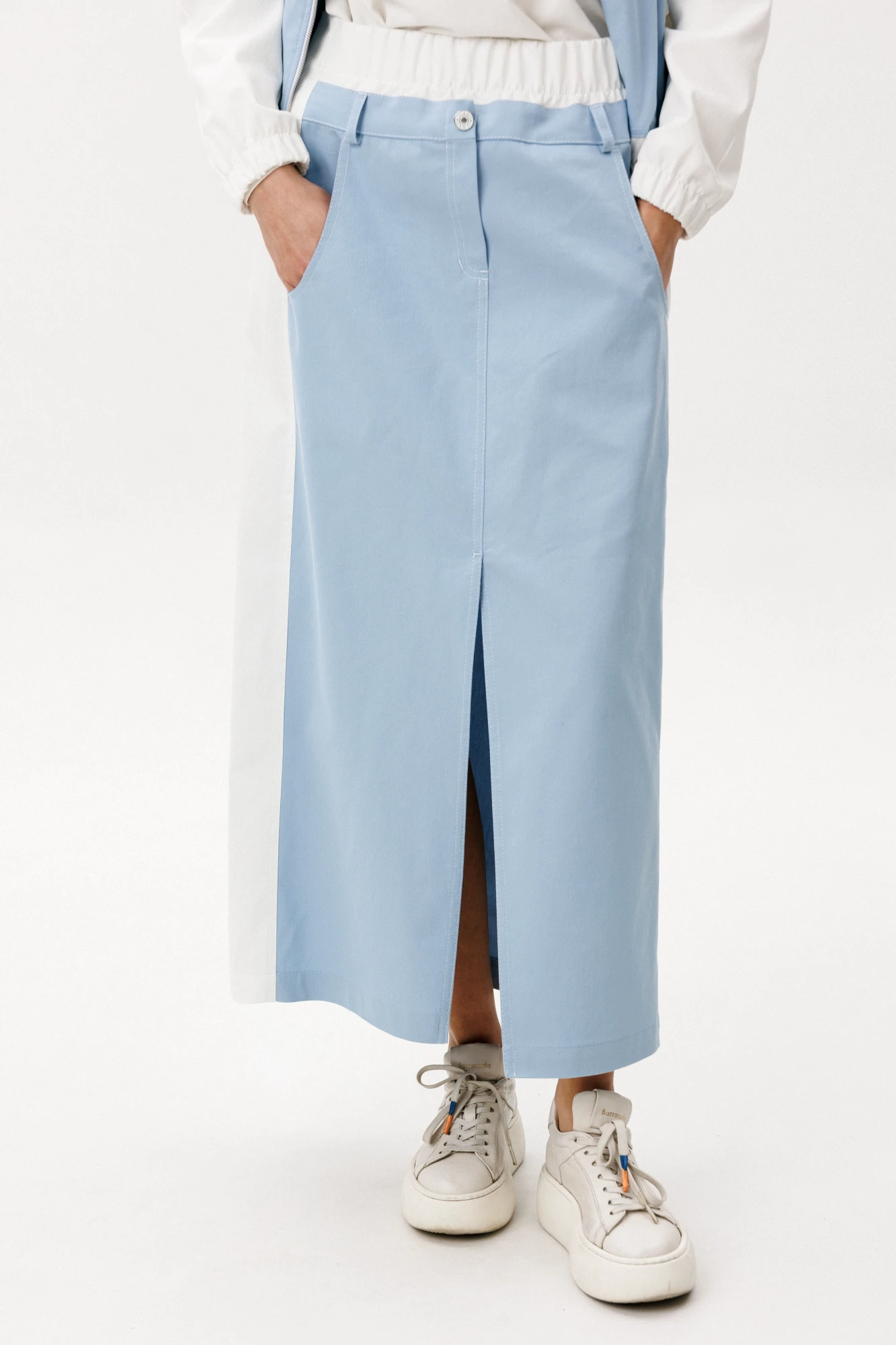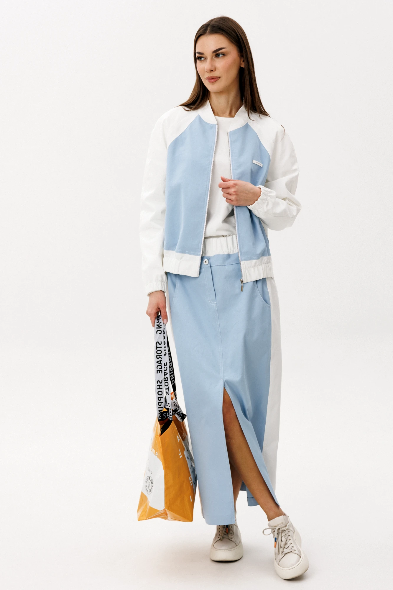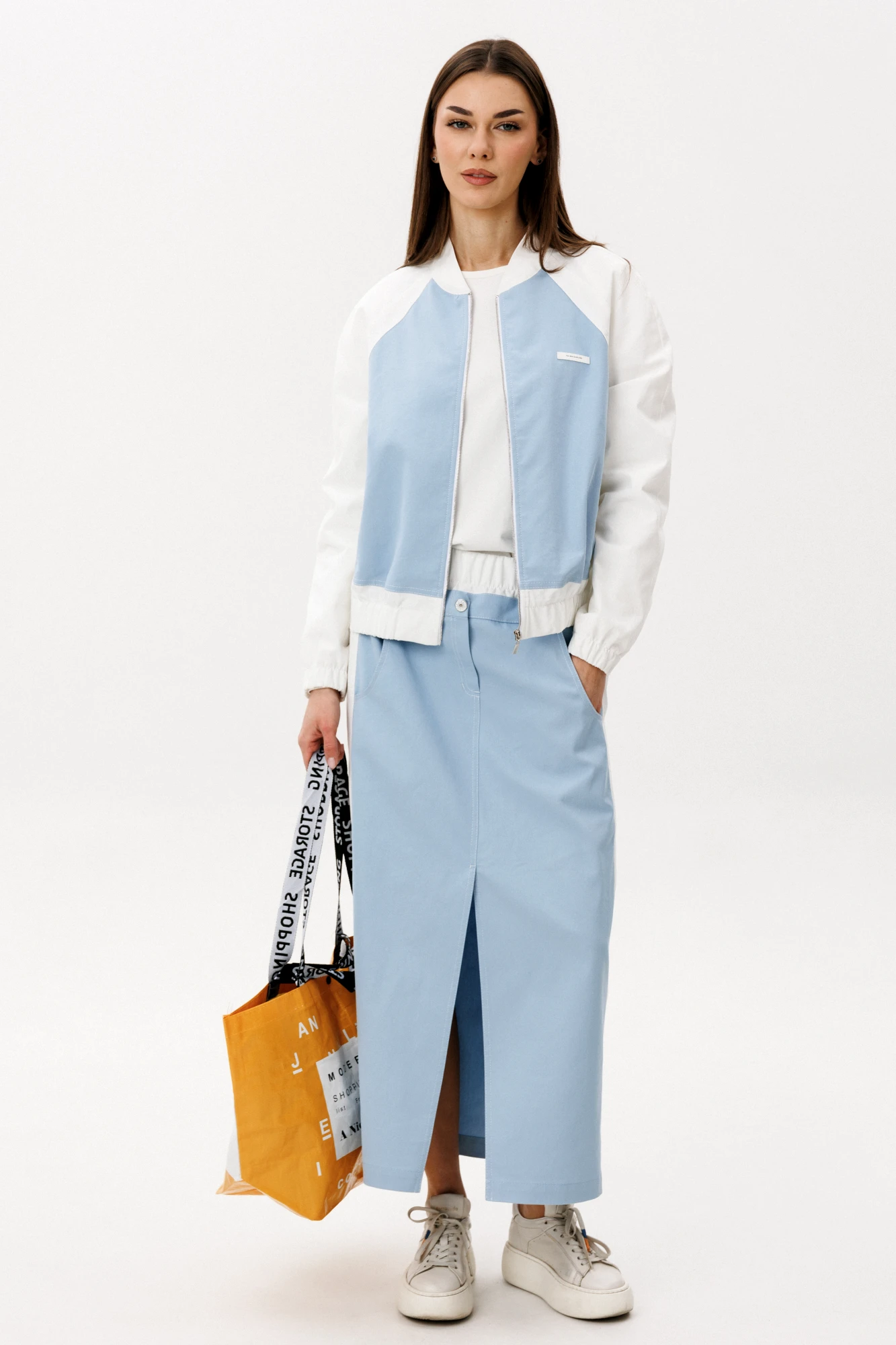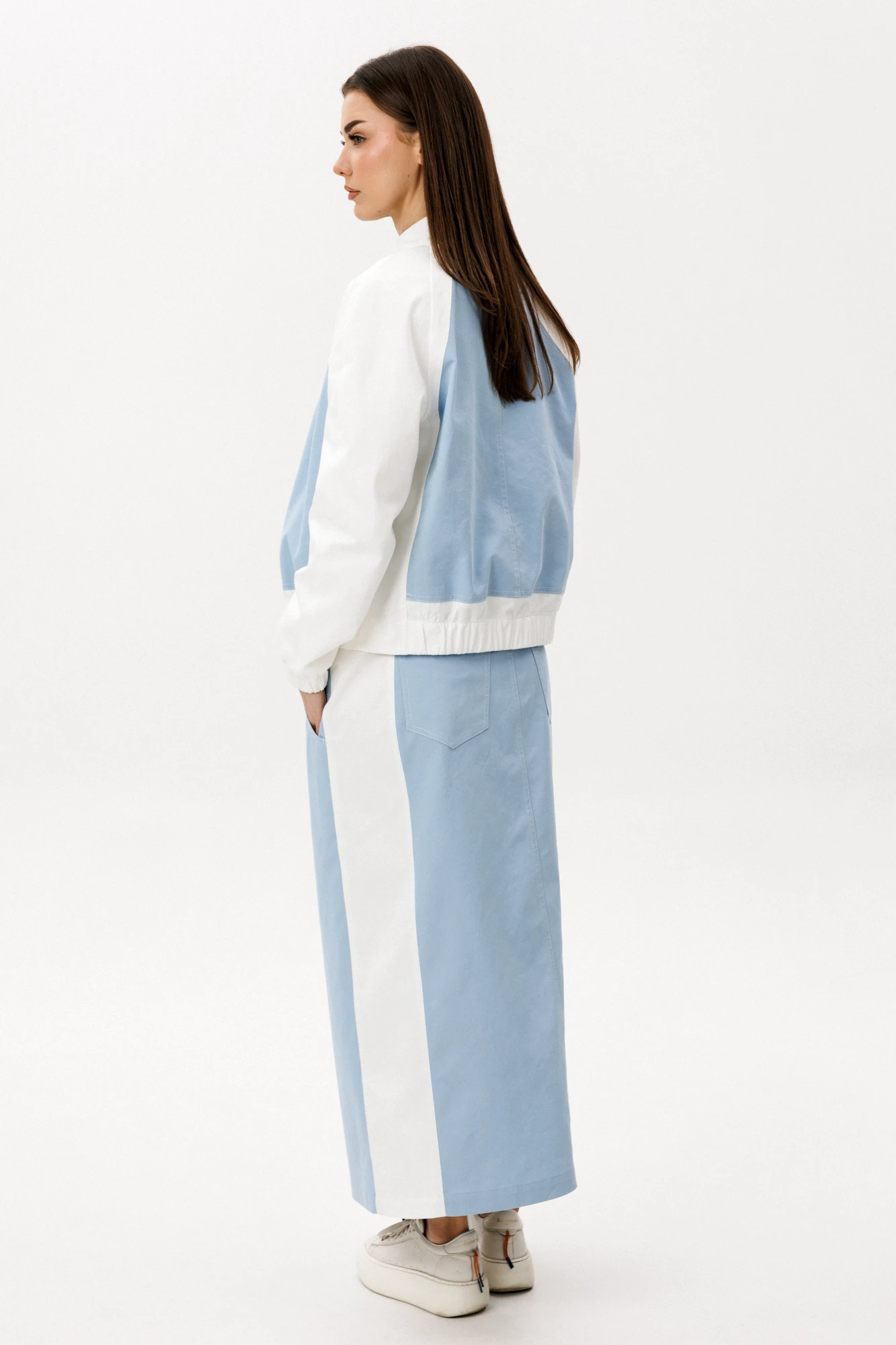 Женственный и современный юбочный комплект в оттенке «Тиффани» — идеальное сочетание комфорта и утончённой простоты. Лаконичный дизайн и свежая цветовая палитра делают образ лёгким, актуальным и универсальным для повседневной жизни. Особенности модели: Юбка миди прямого кроя с аккуратным разрезом спереди. Комфортная посадка по талии. Лёгкая куртка на молнии с контрастными белыми рукавами. Минималистичный дизайн без лишнего декора. Комплект выполнен из качественного хлопчатобумажного полотна. Натуральная ткань обеспечивает воздухопроницаемость, мягкость и комфорт в течение всего дня. Материал держит форму, сохраняя аккуратный и стильный силуэт. Юбка с разрезом добавляет образу динамики и лёгкой женственности, а укороченная куртка подчёркивает линию талии и делает силуэт более выразительным. Комплект отлично сочетается с кроссовками, кедами или лаконичной обувью в спортивном стиле. Преимущества: Натуральный хлопковый состав. Актуальная длина. Свежий оттенок «Тиффани». Универсальность для городских образов. Юбочный комплект "Tiffany" — это баланс комфорта, стиля и лёгкости. Идеальный выбор для тех, кто хочет выглядеть современно и чувствовать себя свободно каждый день.