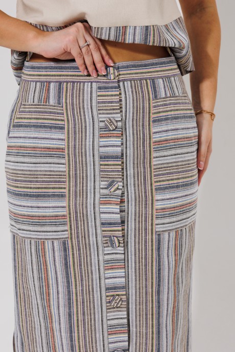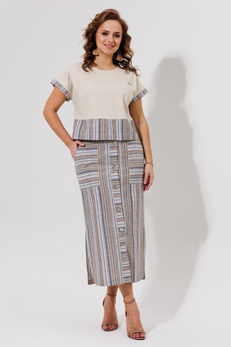 Юбочный костюм Galean Style 693 бежевый, мультиколор полоска