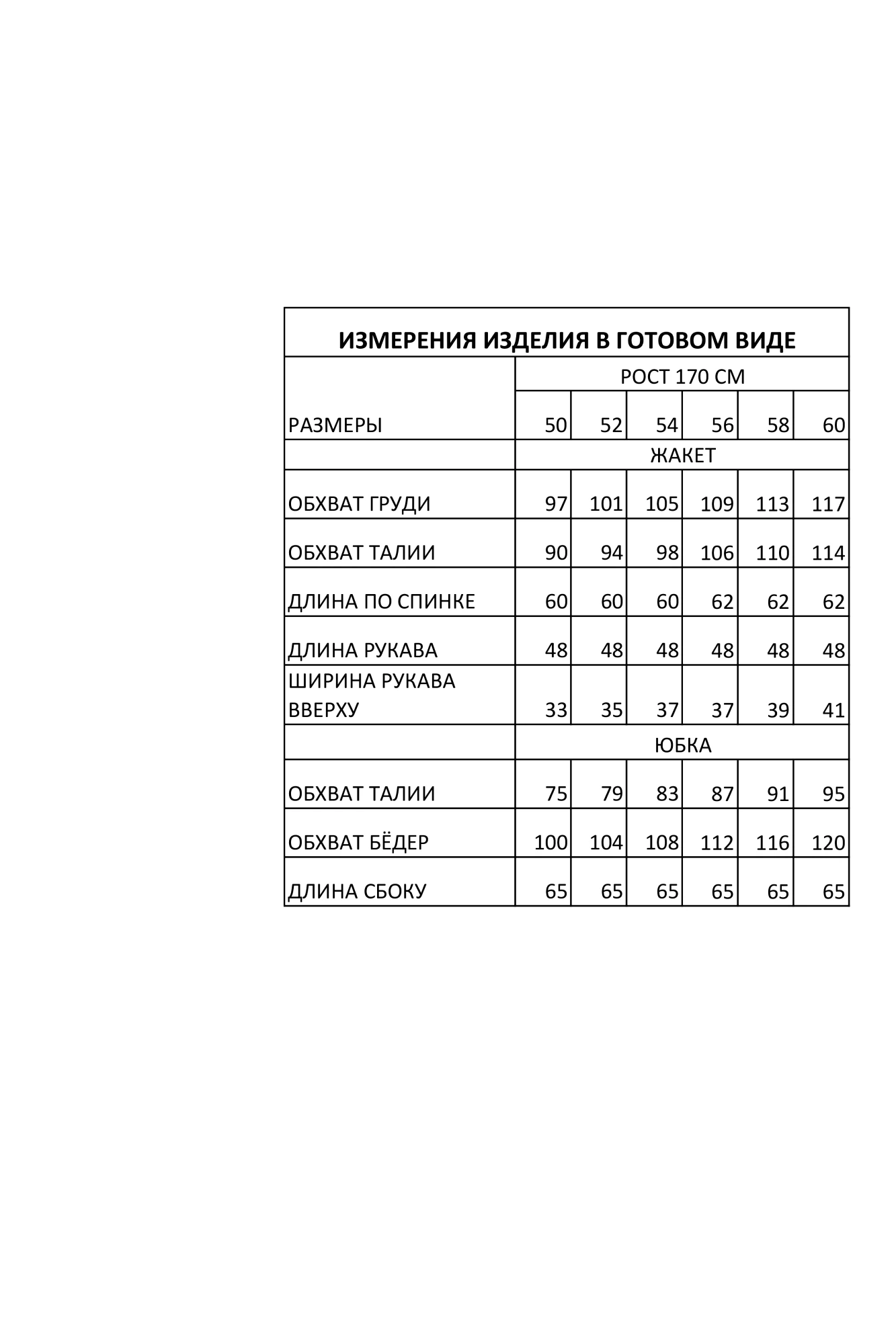 полиэстер 55%, вискоза 40%, спандекс 5%; подкладка жакета и юбки полиэстер 100%.