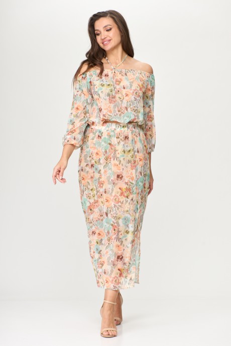 Юбочный костюм КаринаДелюкс М-1115 цветочный принт с ID товара 423134