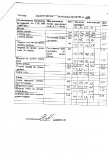 Жакет: длина рукава - см, ширина рукава – см, длина спинки – см.