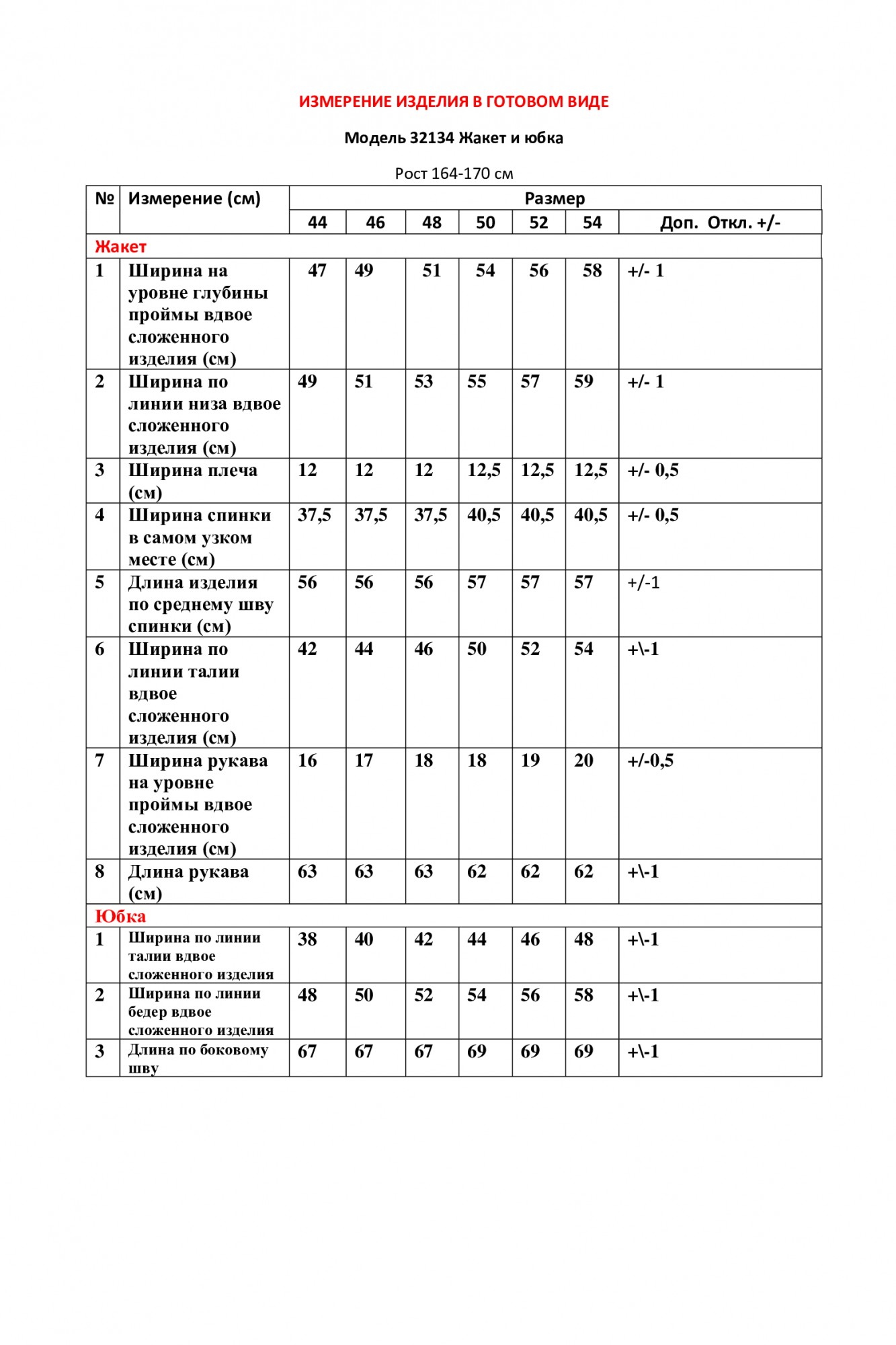 Таблица размеров