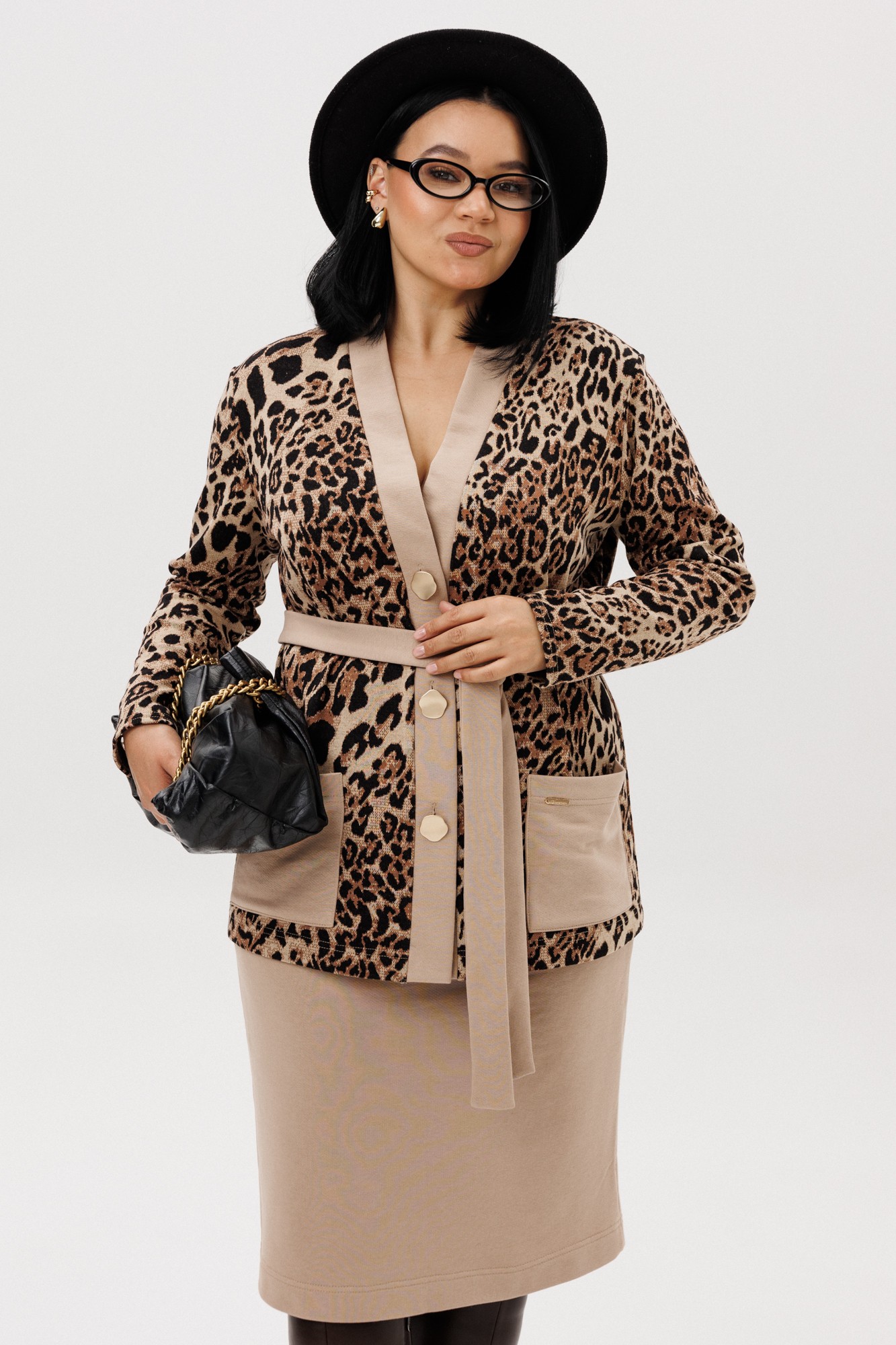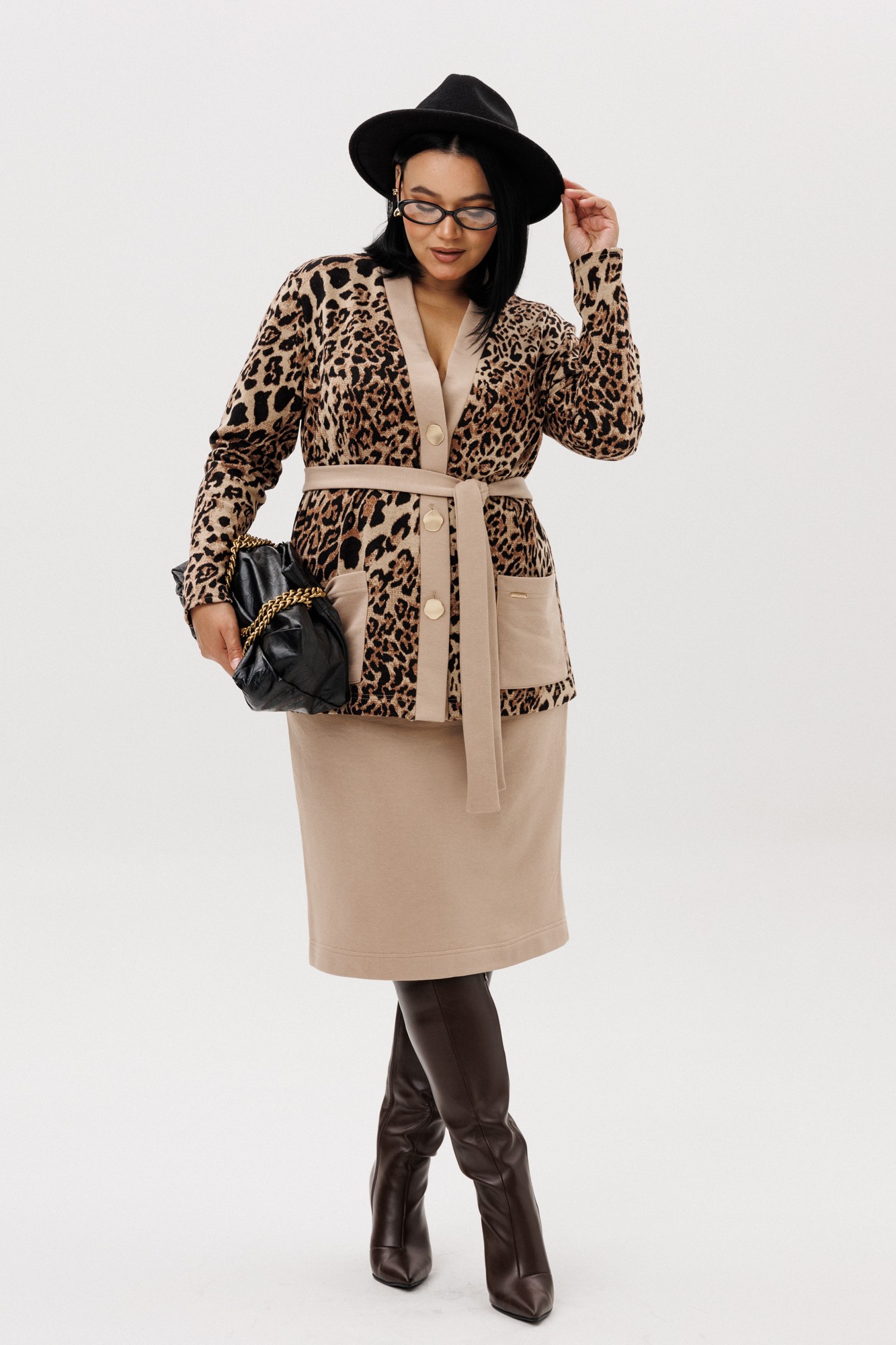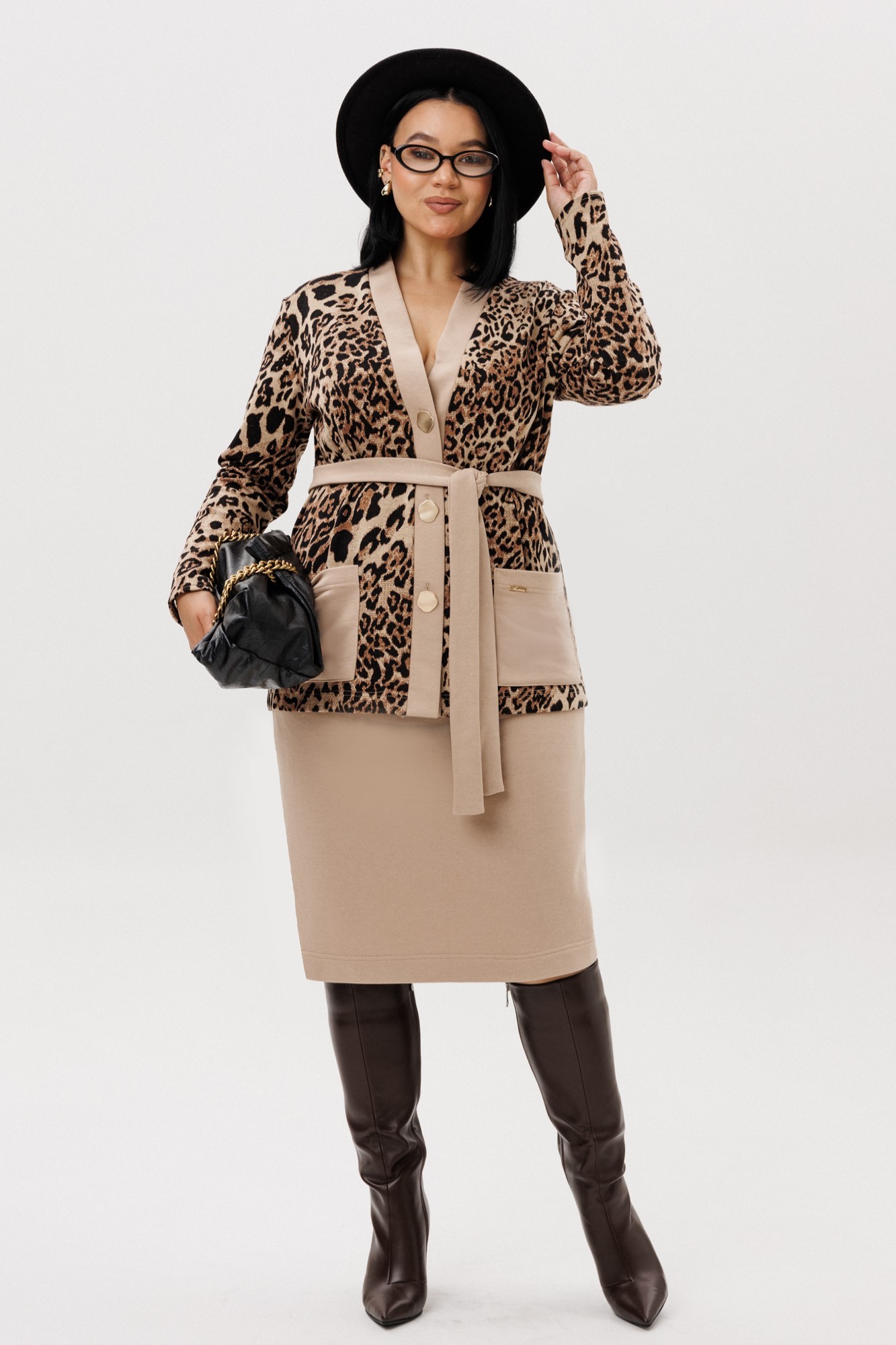 Юбочный костюм Anastasia м-1293 бежевый, анималистический принт