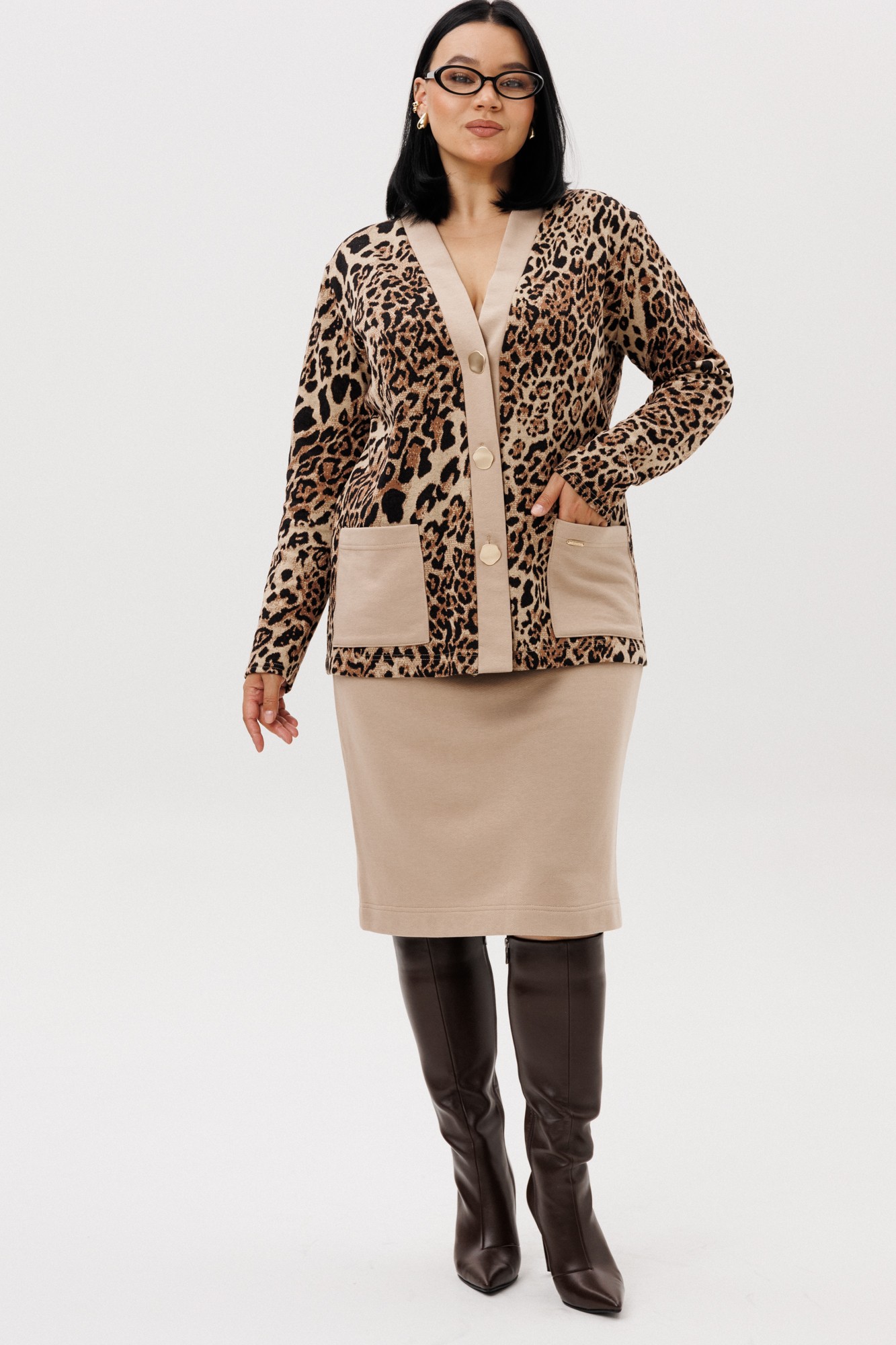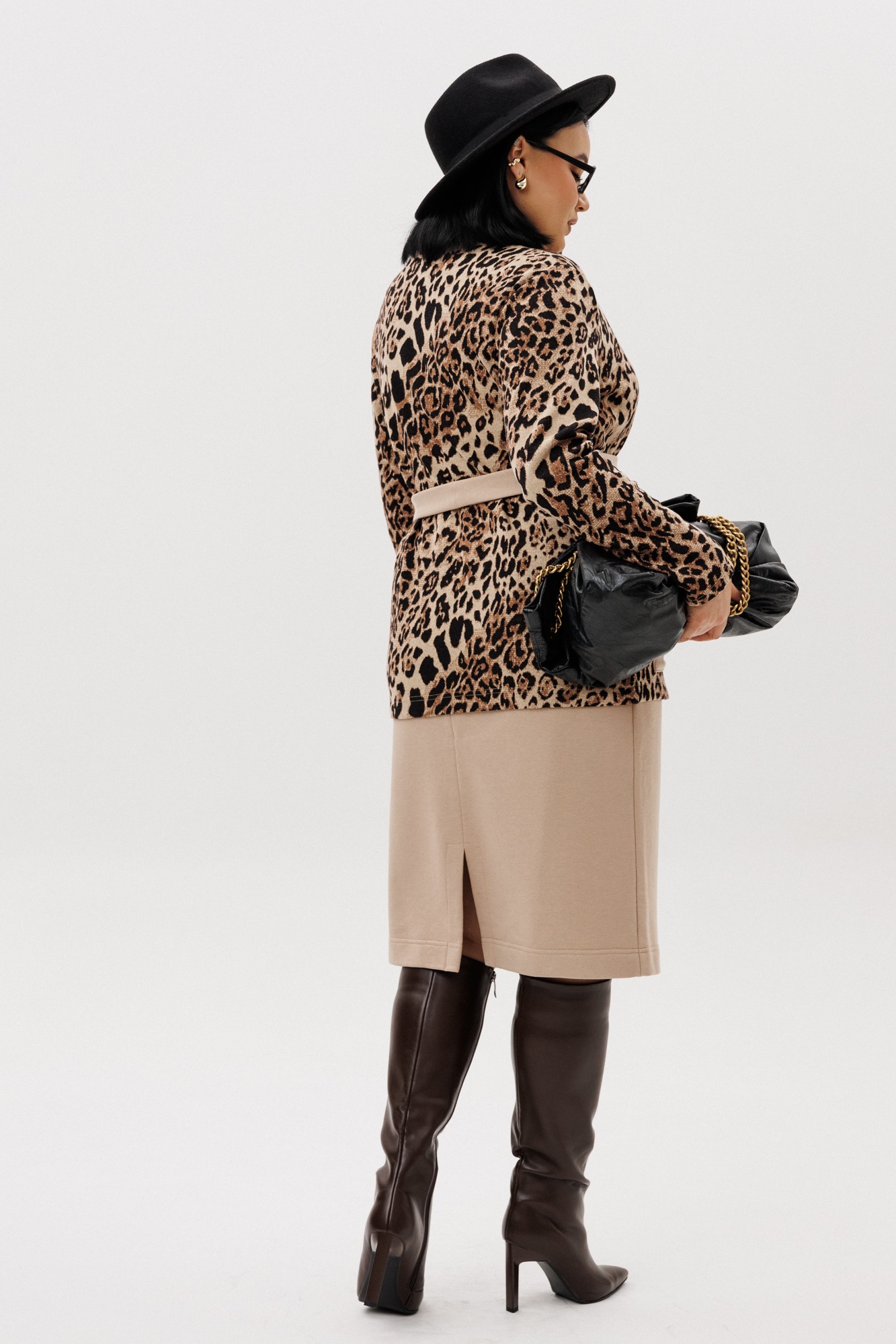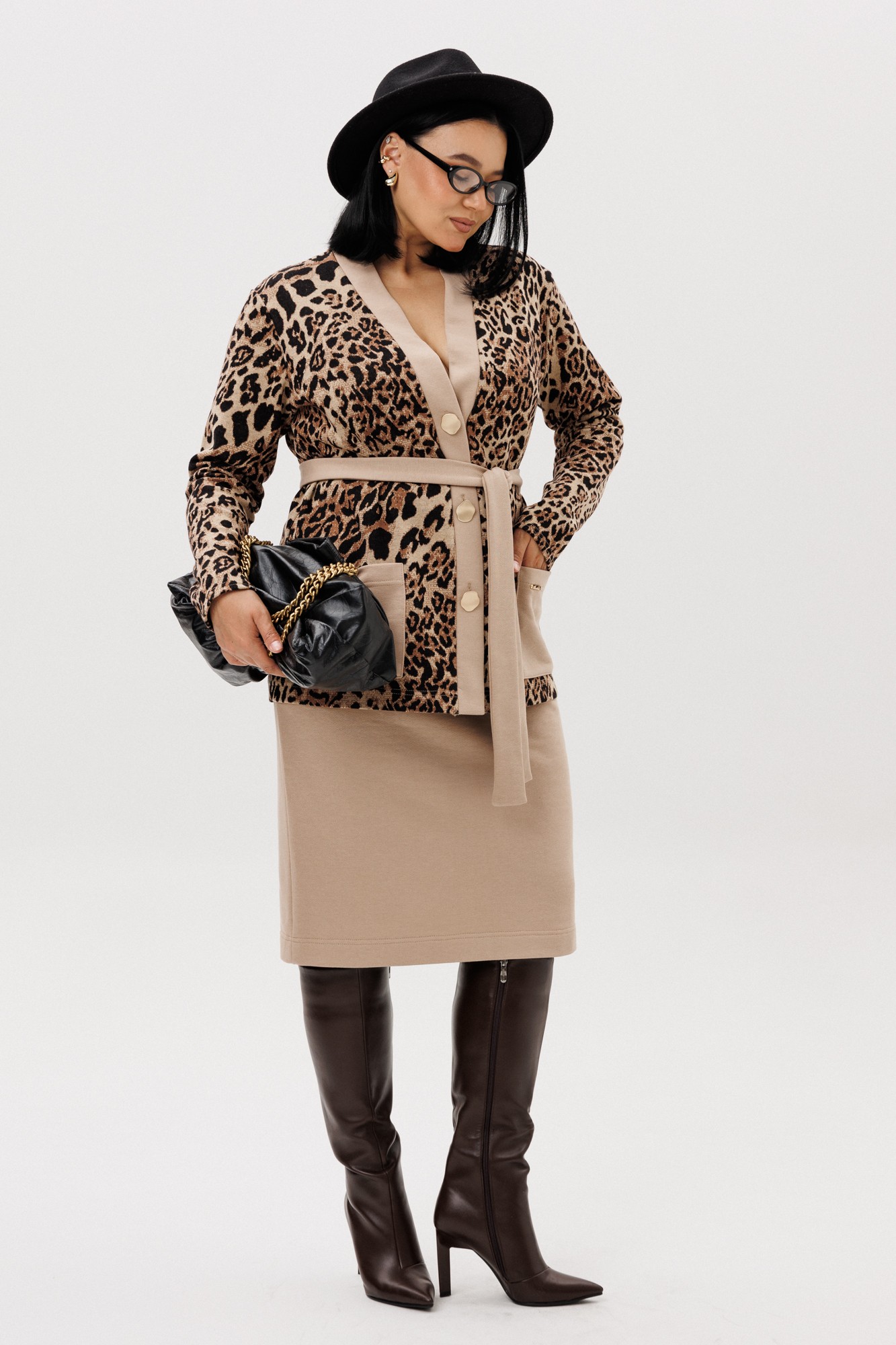Юбочный костюм Anastasia м-1293 бежевый, анималистический принт