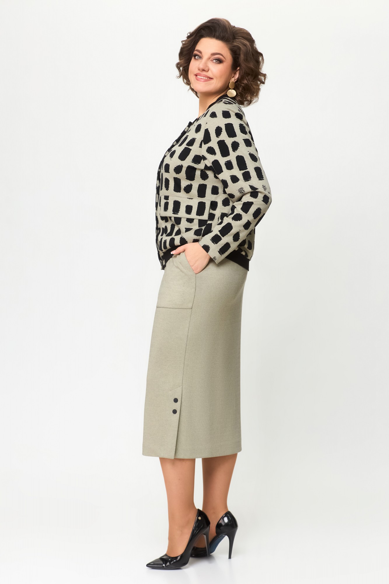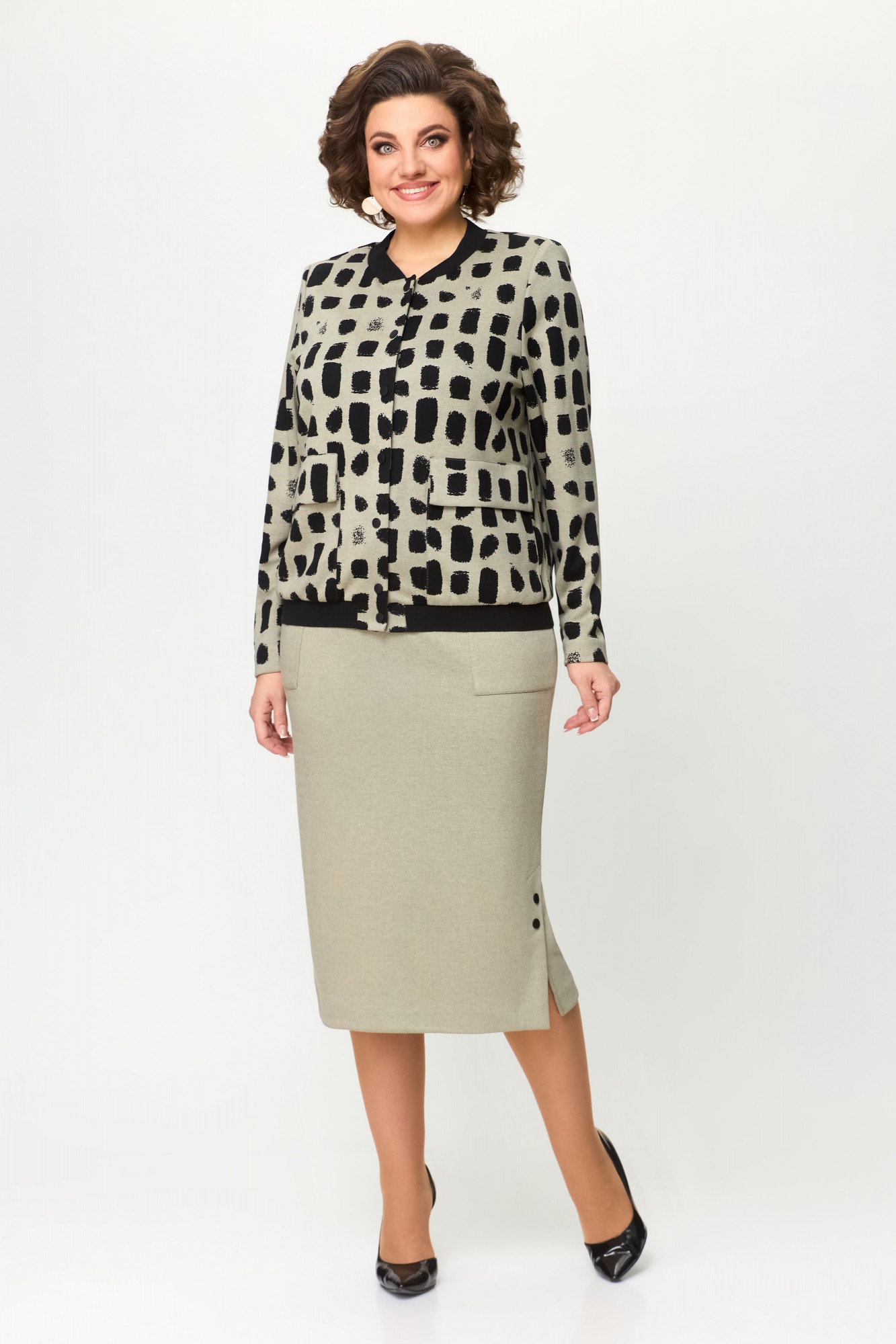 Юбочный костюм Дали 5677К бежевый с черным с ID товара 392185