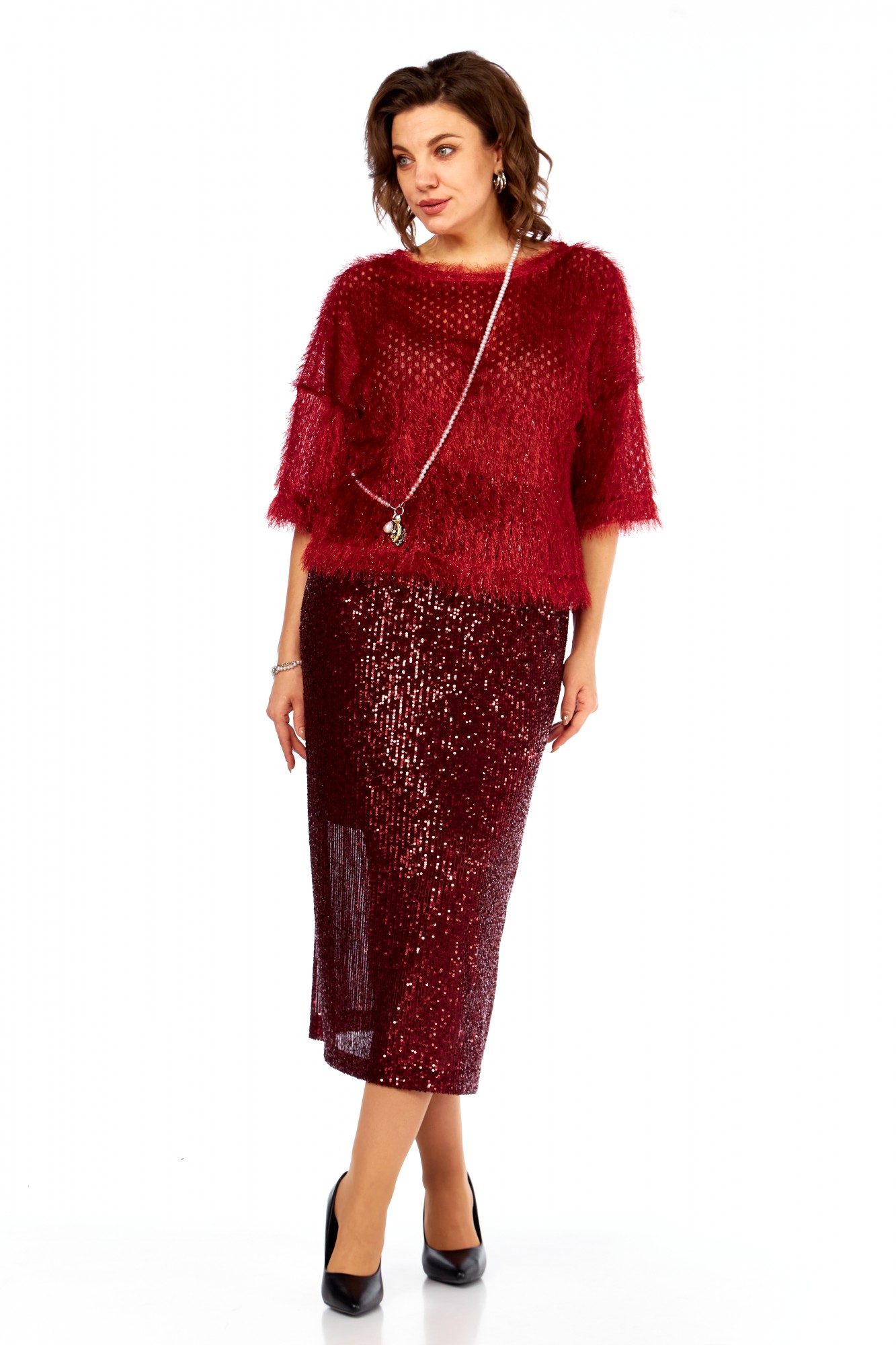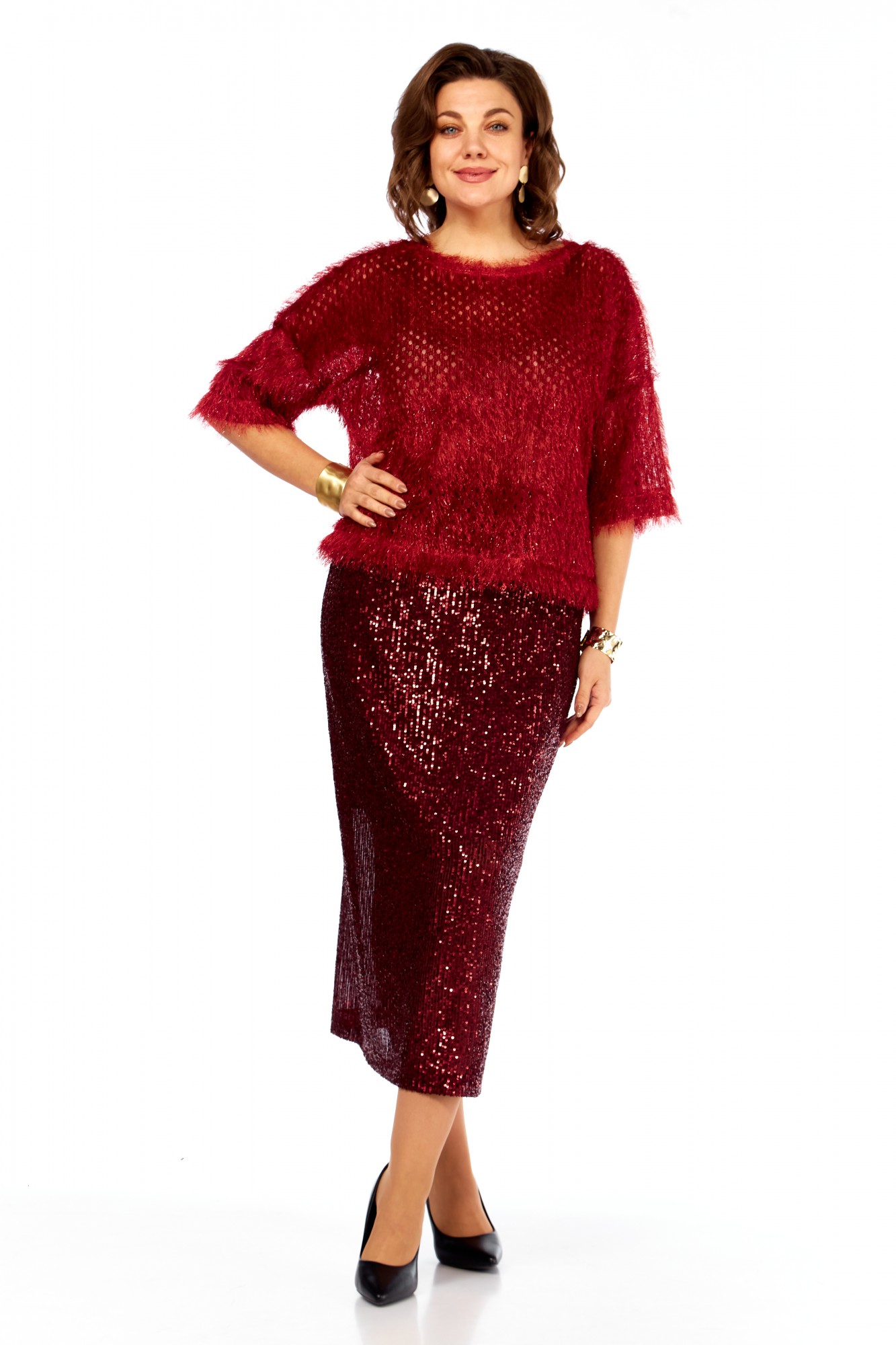 Юбочный костюм hOla_la Л413 темный красный