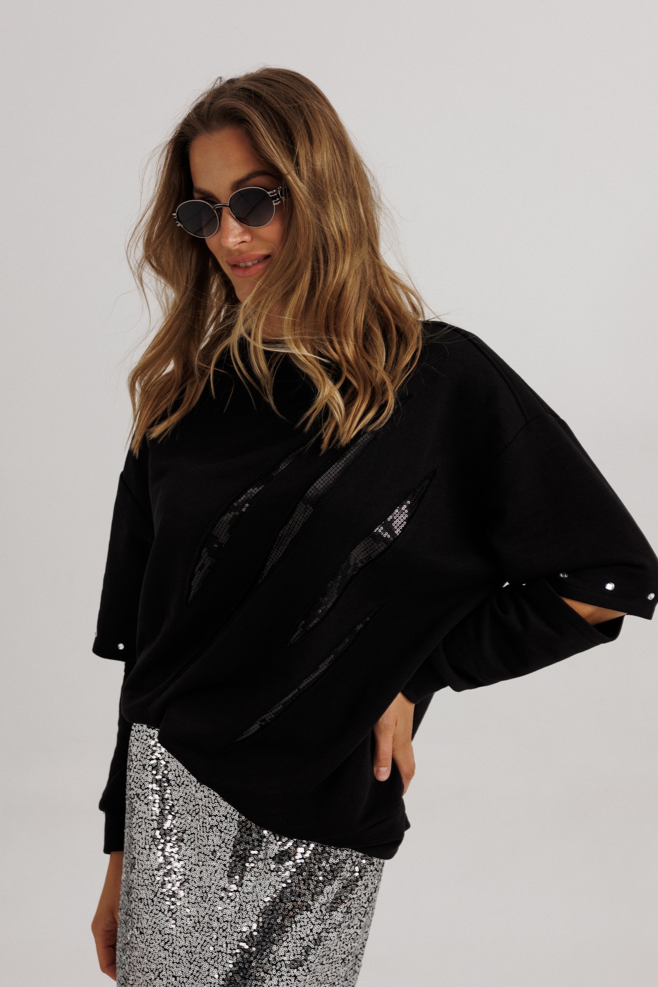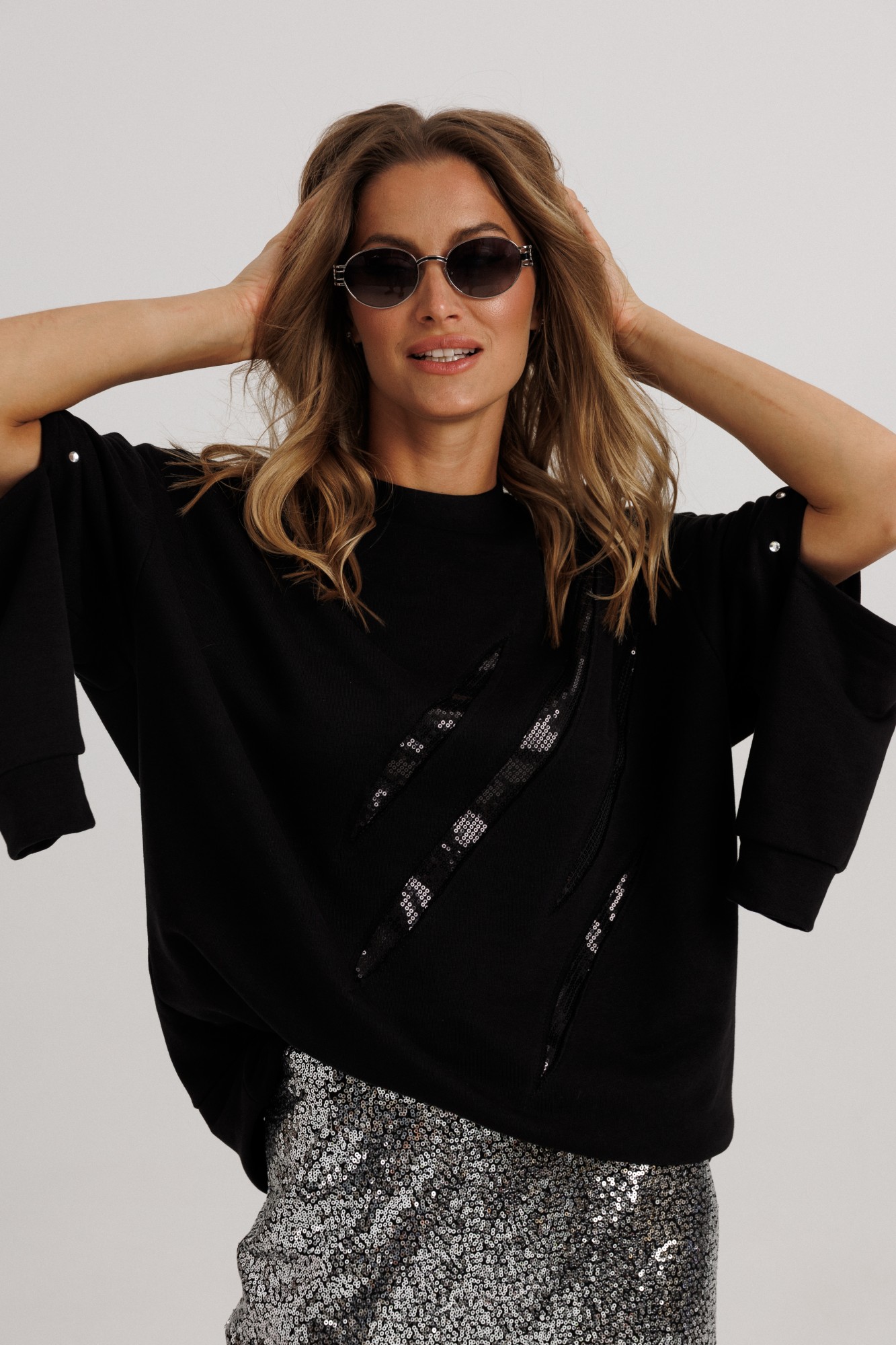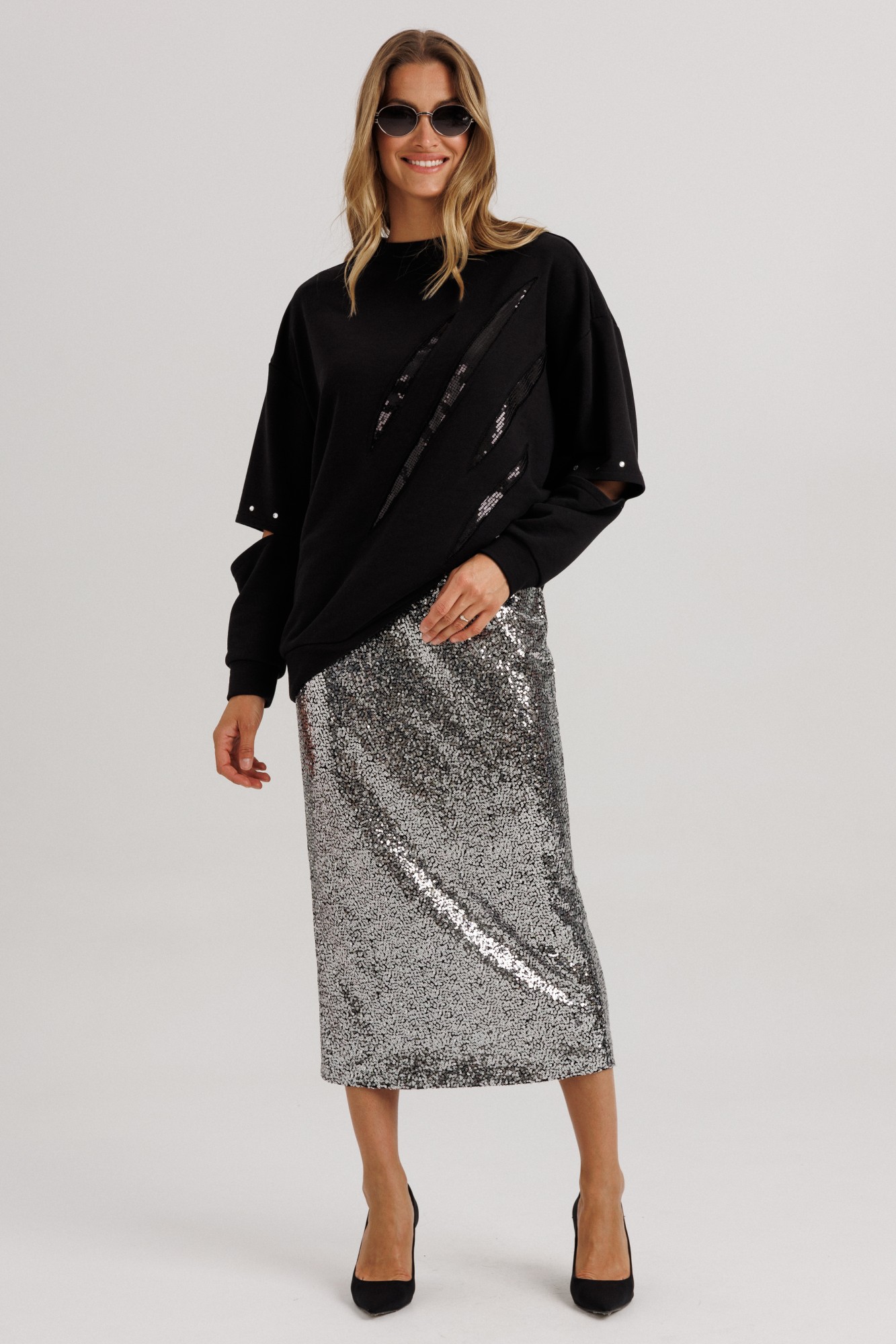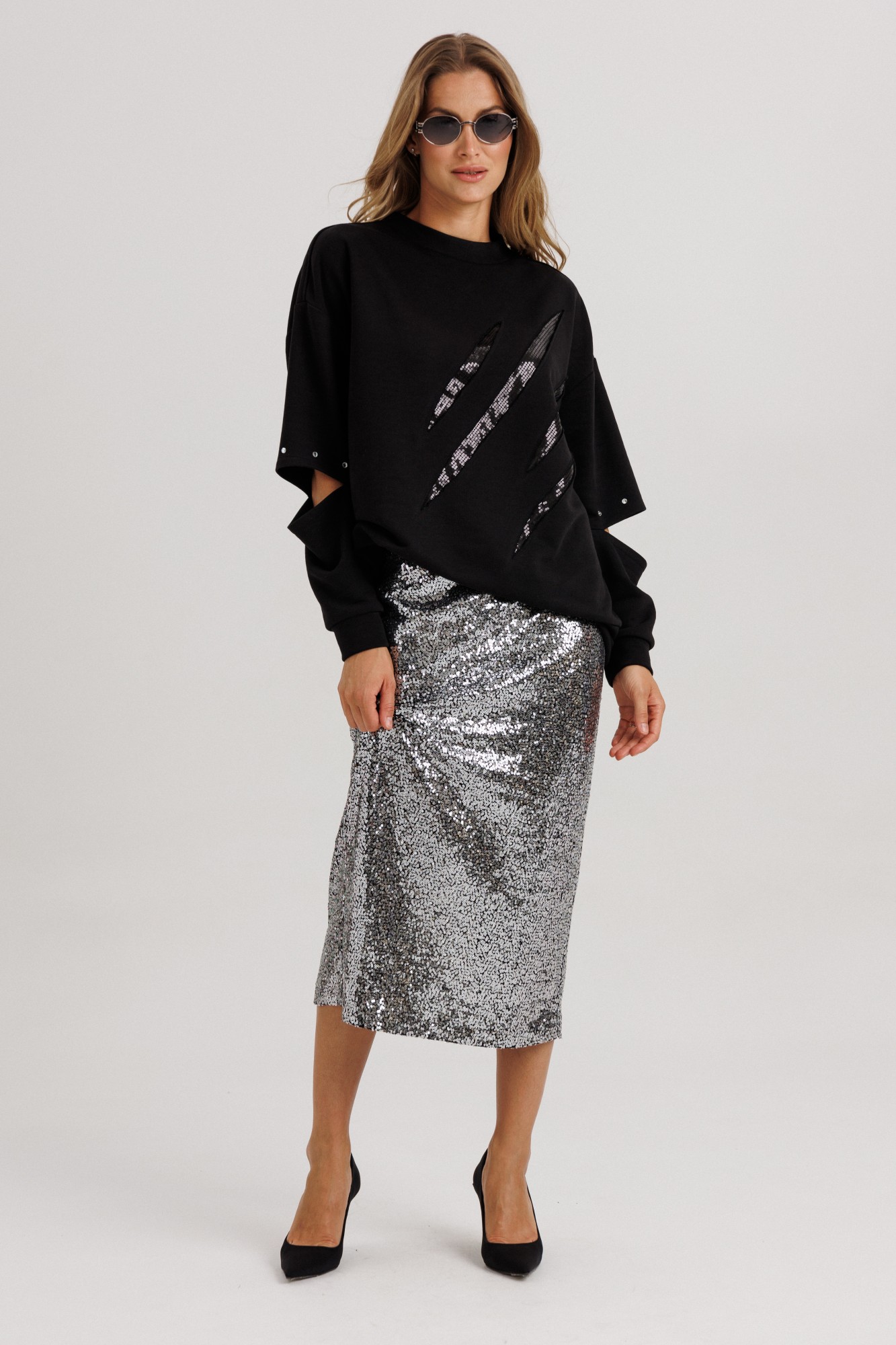 Юбочный костюм Ларс Стиль 1147 черный, серебро