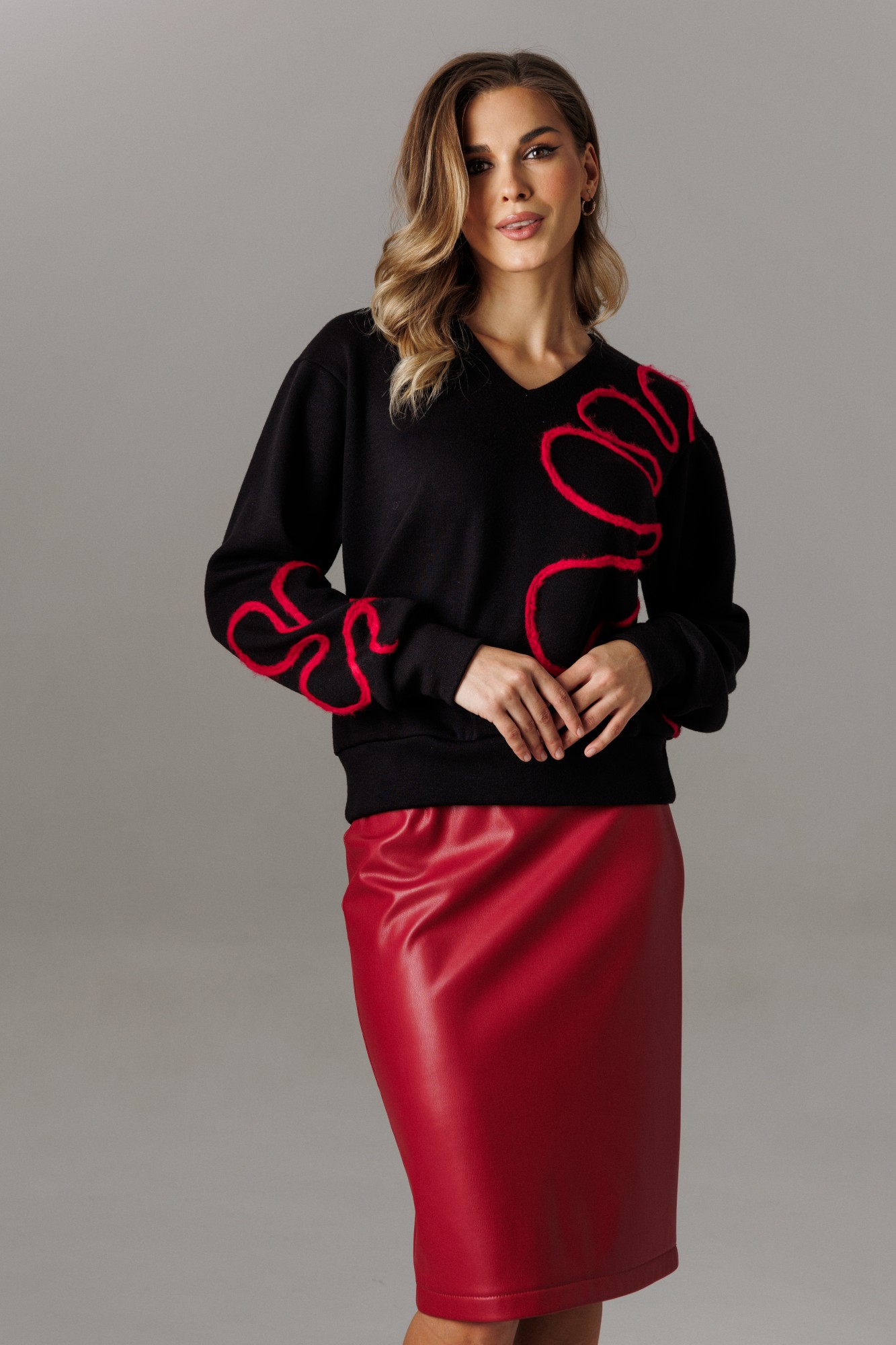Юбочный костюм Ларс Стиль 1185 черный, красный