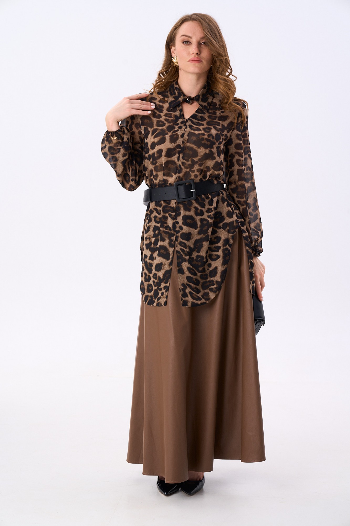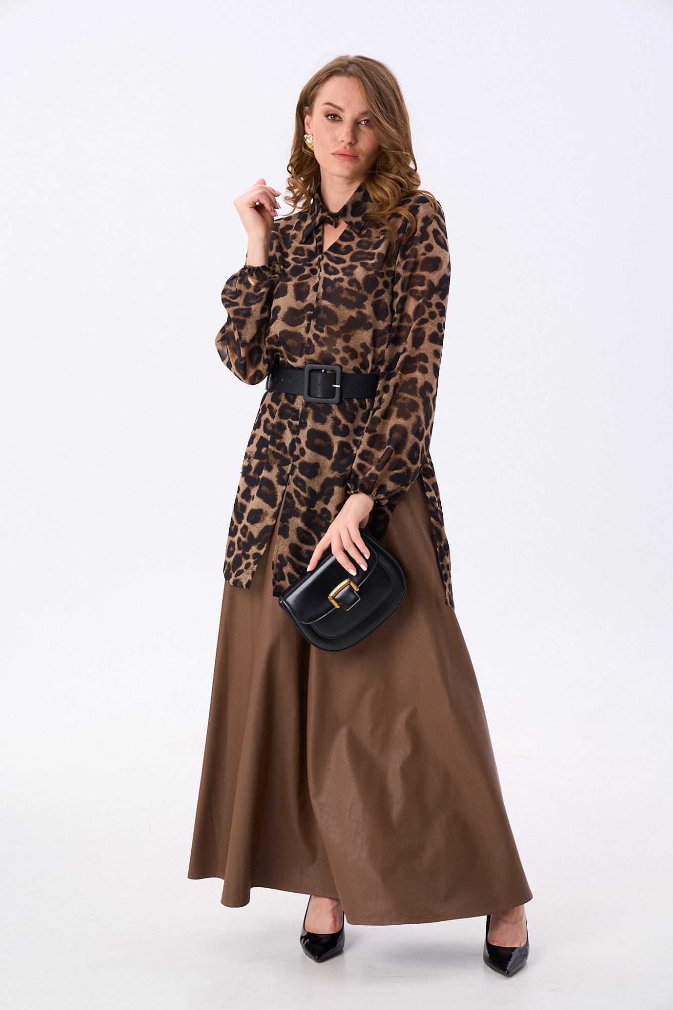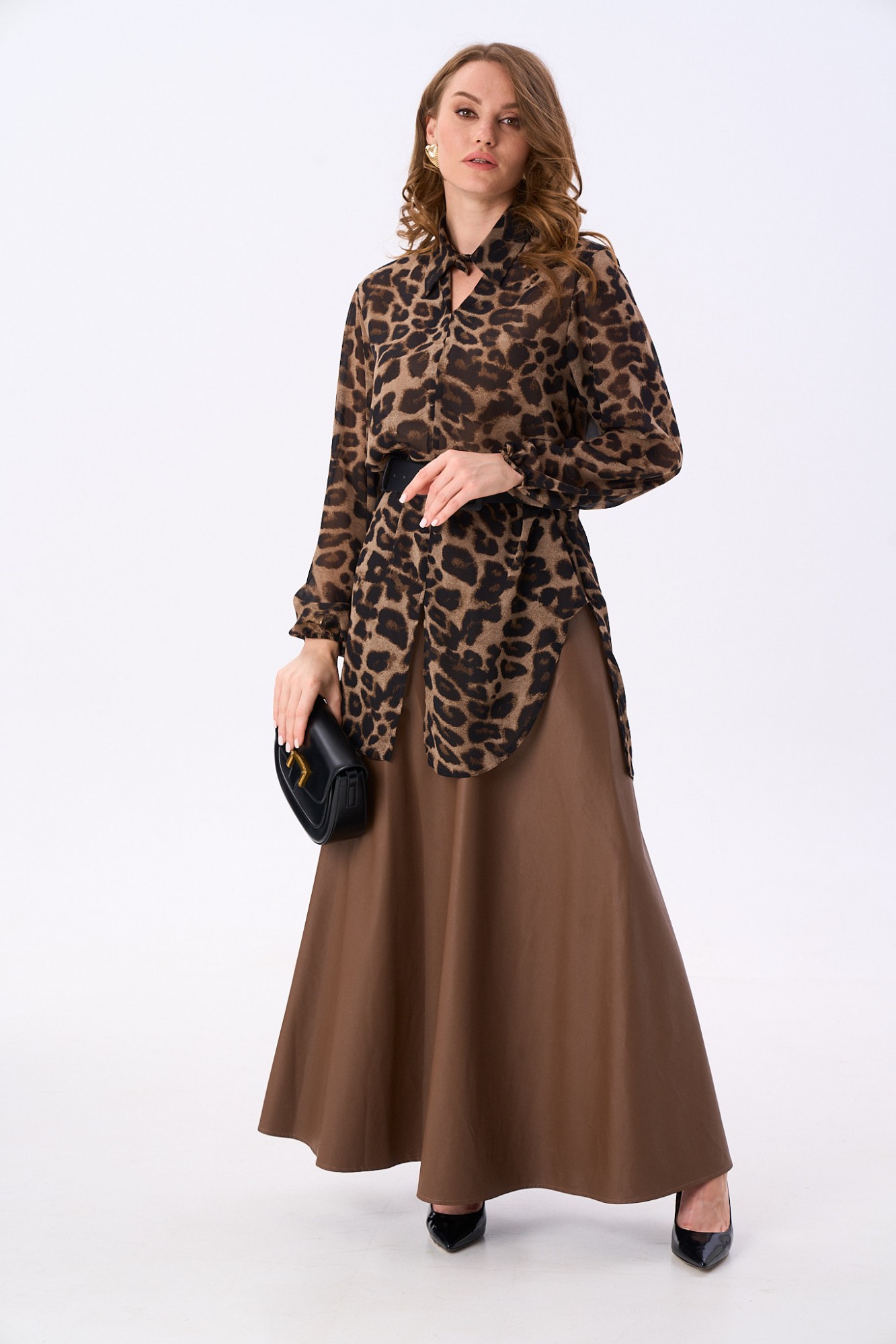 Юбочный костюм NikVa н815 двойка -4 шоколад и шоколадный леопард