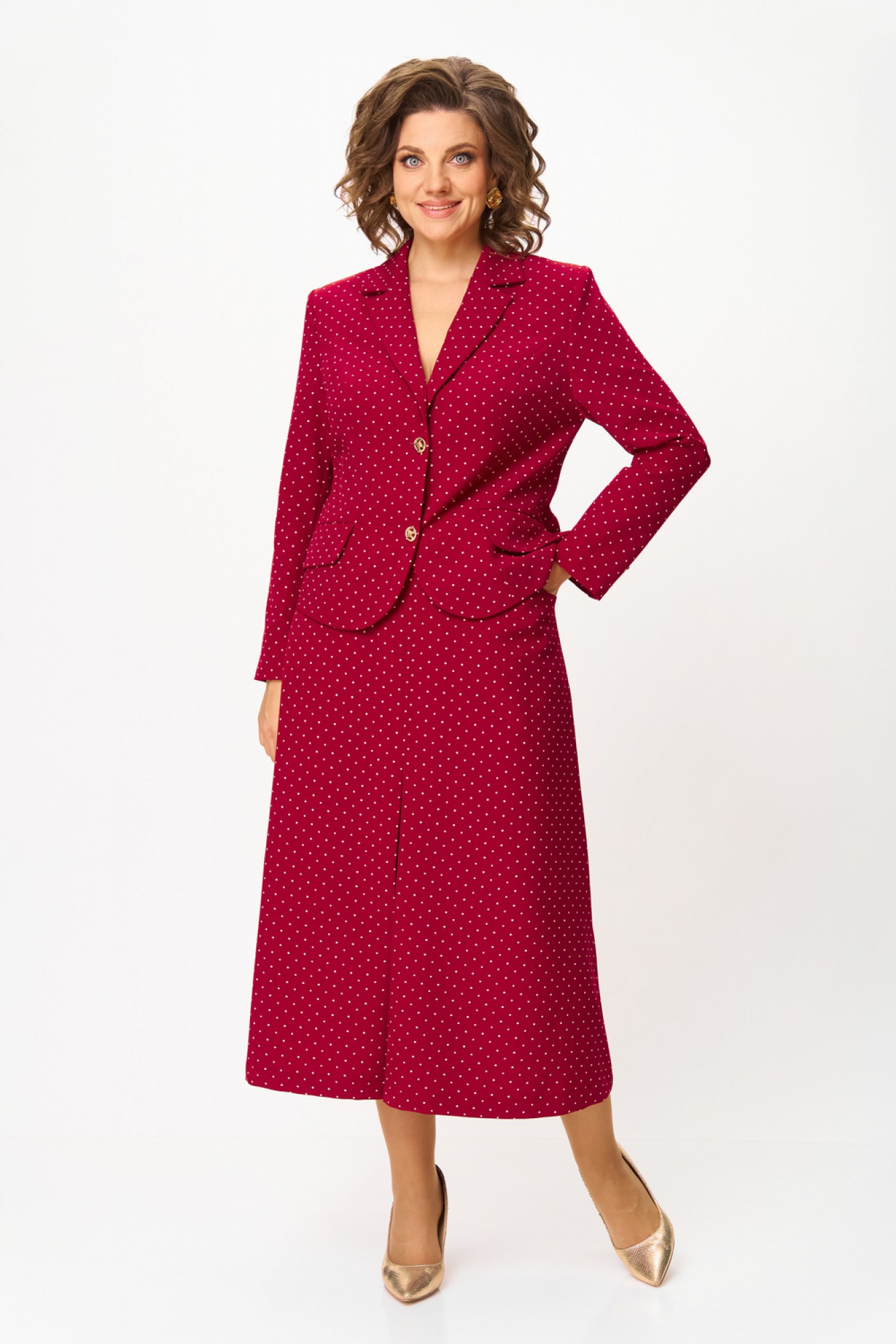 Юбочный костюм Svetlana-Style 2140 бордовый, горох