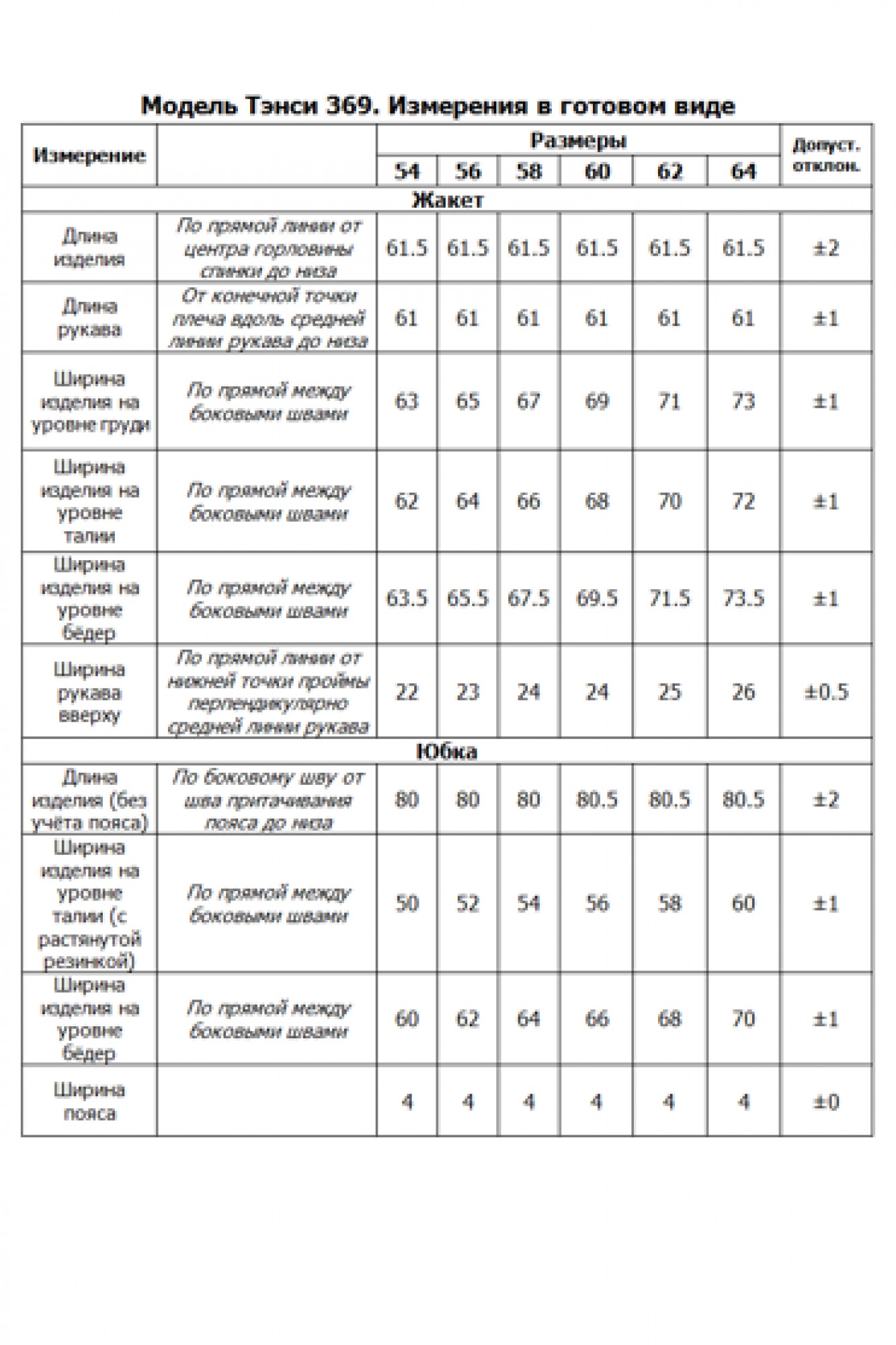 Длина футболки от центра горловины спинки до низа: 58-58,5 см. Длина жакета от центра горловины спинки до низа: 61,5 см. Длина рукава от конечной точки плеча до низа: 61 см. Длина юбки по боковому шву без учета пояса: 80-80,5 см.