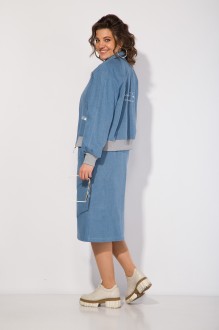 Эффектный джинсовый костюм, состоящий из жакета и юбки - представляет собой идеальное сочетание комфорта, стиля и универсальности. Жакет по типу бомбера, с рукавом покроя реглан. Воротник отложной, застежка центральная на металлическую молнию. Низ рукава и низ изделия обработаны притачными манжетами из кашкорсе. Спинка с декоративной печатью – накат. Юбка в костюме длиной за колена, прямая. По центру шов переходящий в разрез. Юбка на притачном поясе, в боковых швах вставлена резинка на комфортное прилегание. Застежка юбочная тесьма-молния по переду.