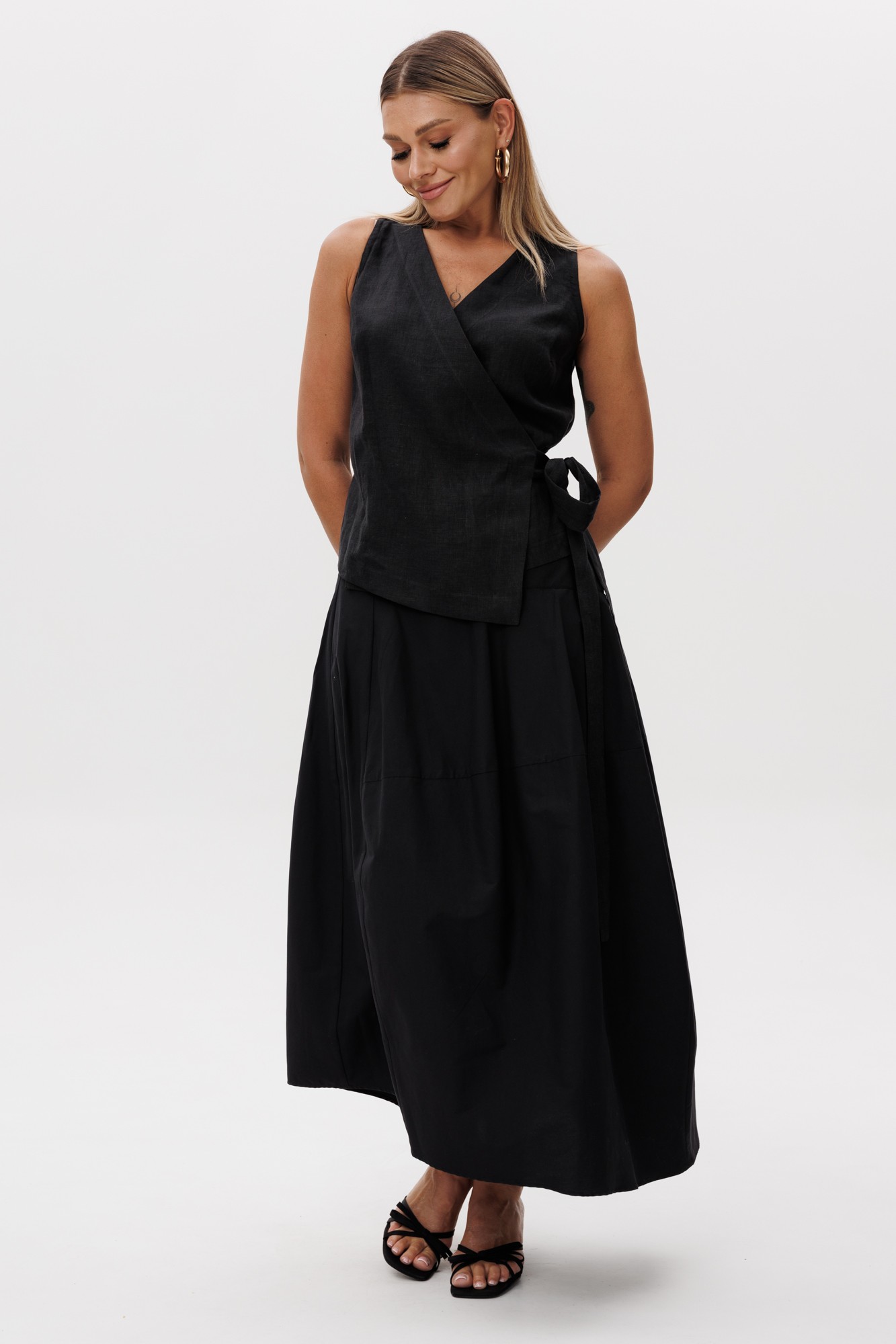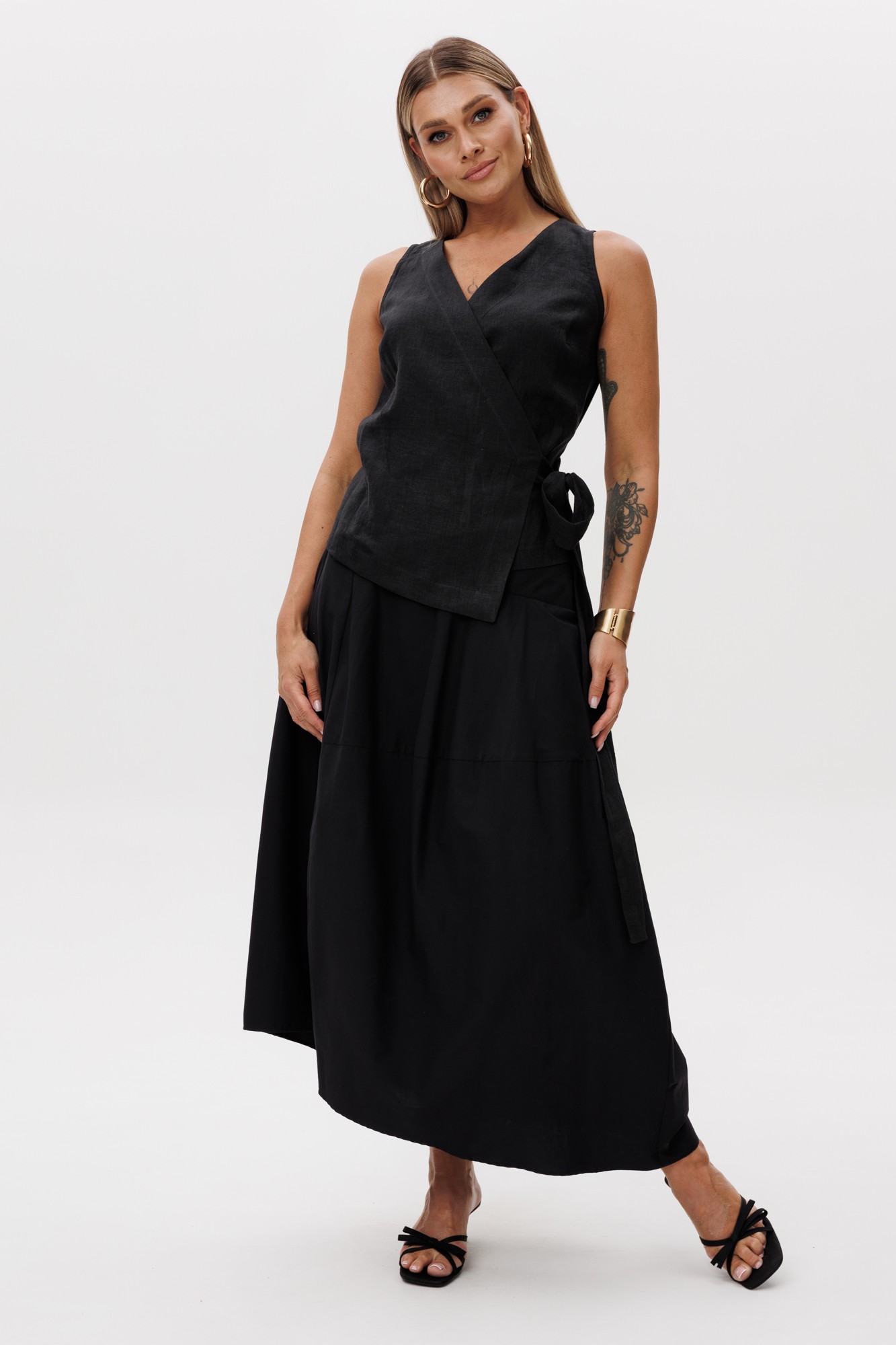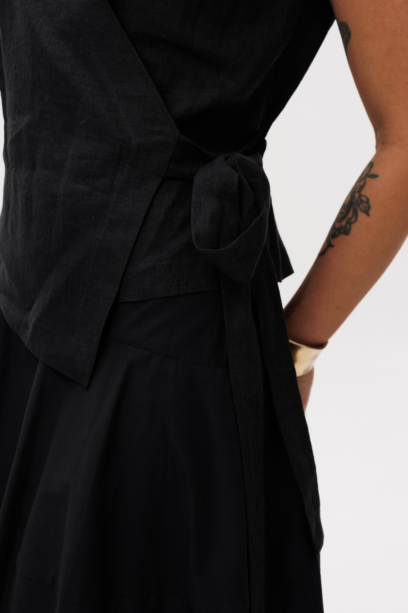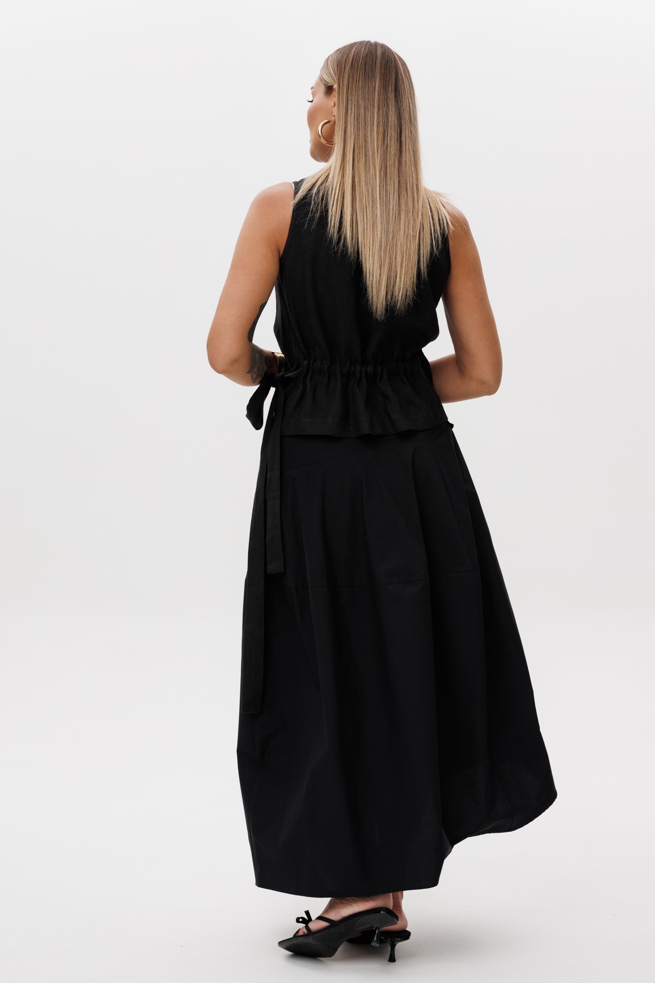 55% хлопок, 40% полиамид, 5% спандэкс(юбка), 100% лне (жилет)