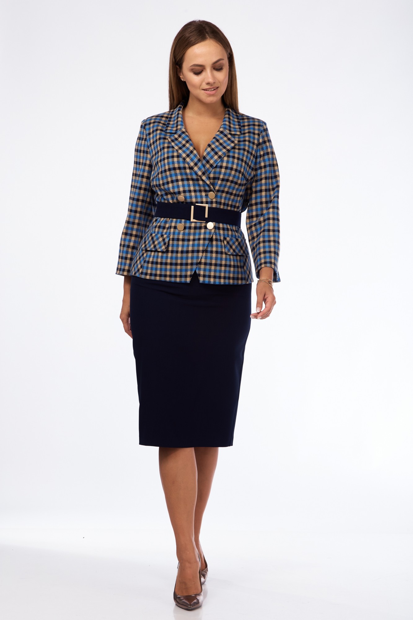 Костюм/комплект Милора Стиль 1146 двойка /1 темно-синий + клетка
