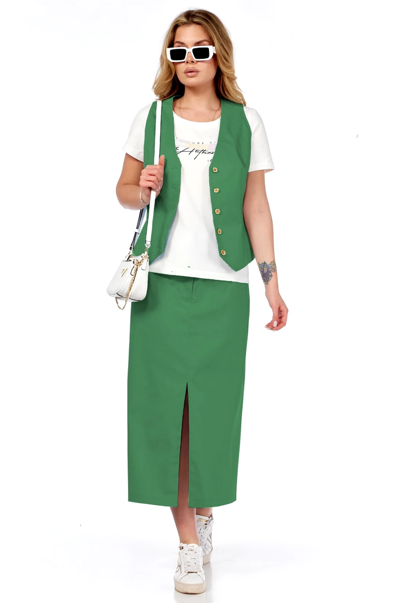 Юбочный костюм Милора Стиль 1205 тройка зеленый