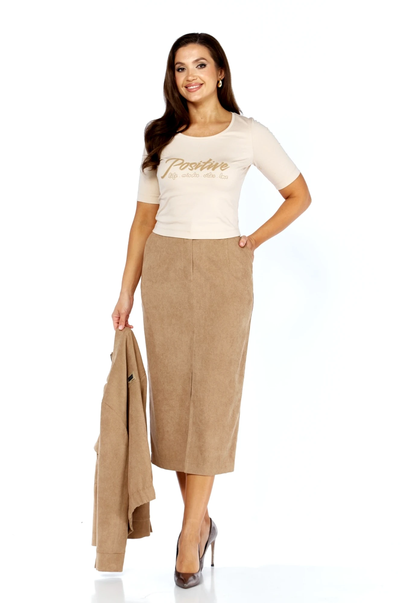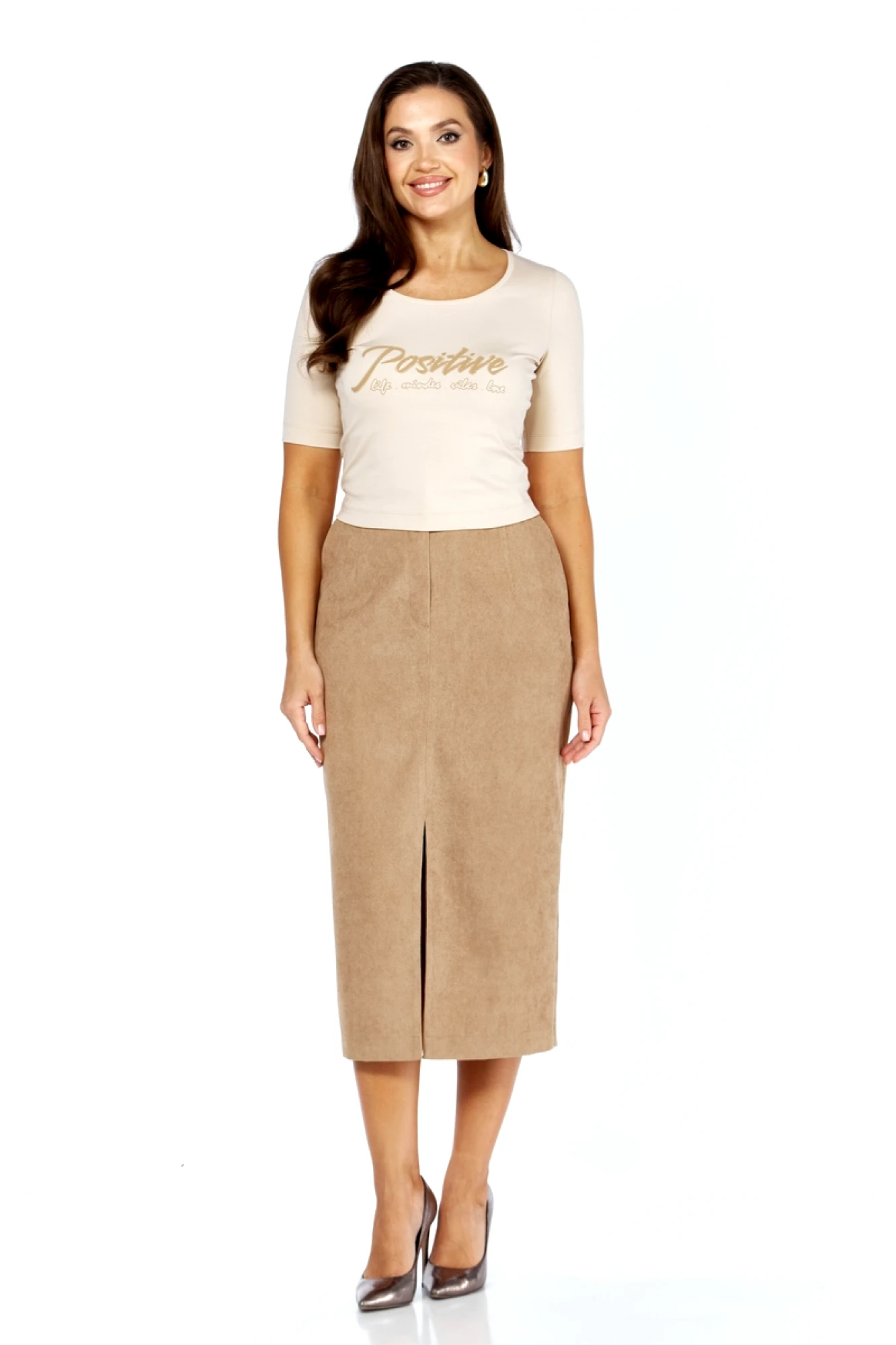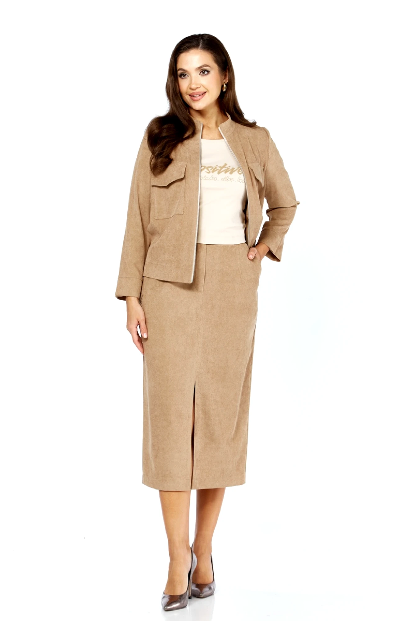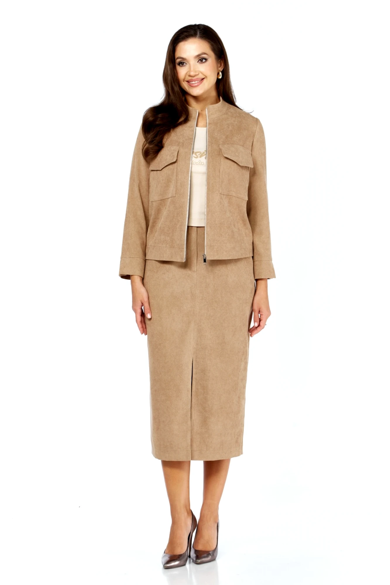 Юбочный костюм Милора Стиль 1381 тройка песочный