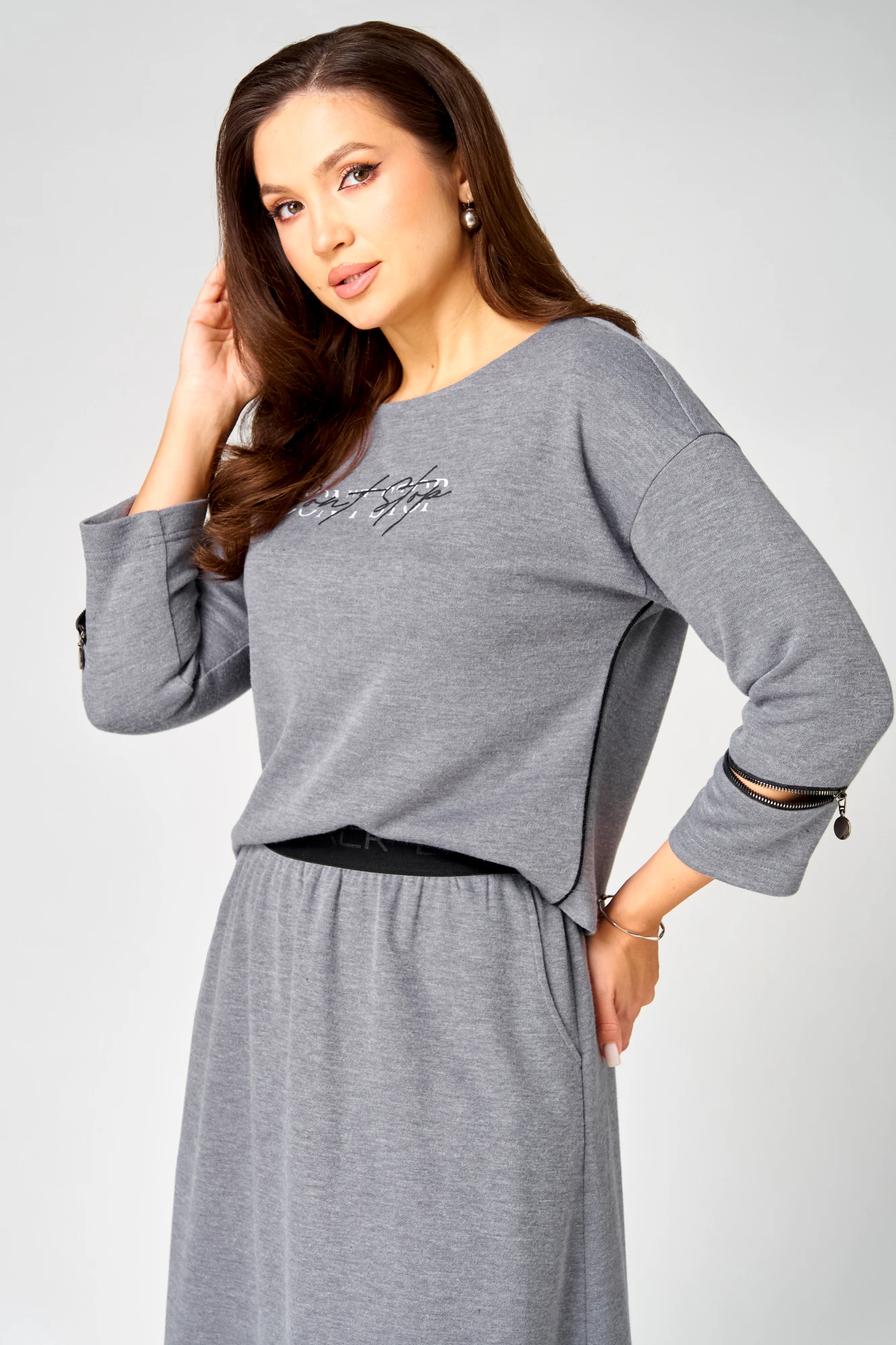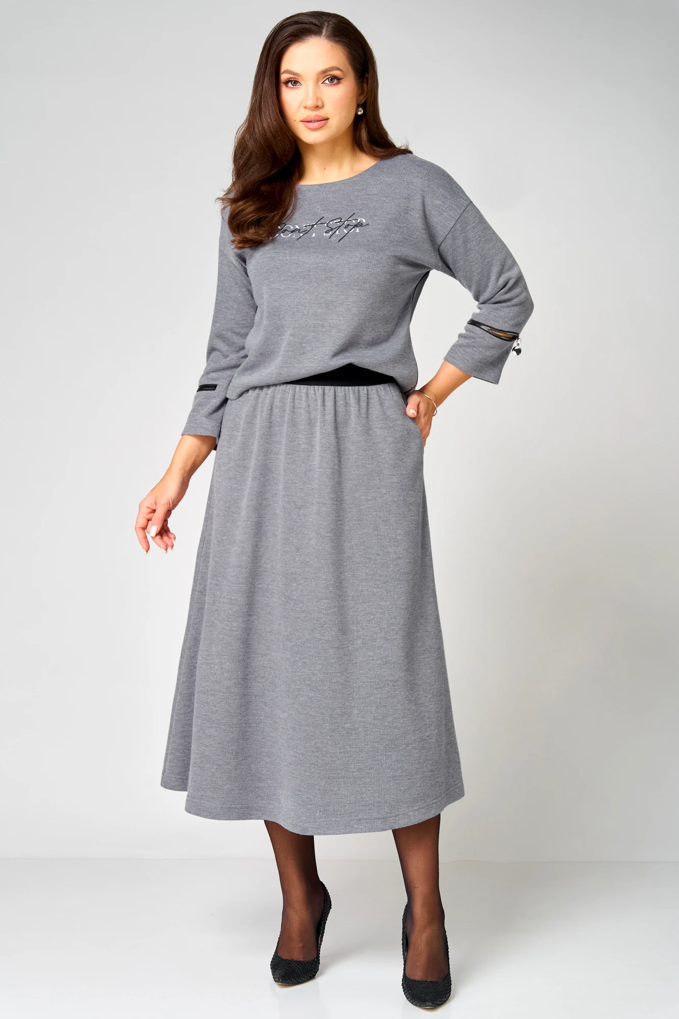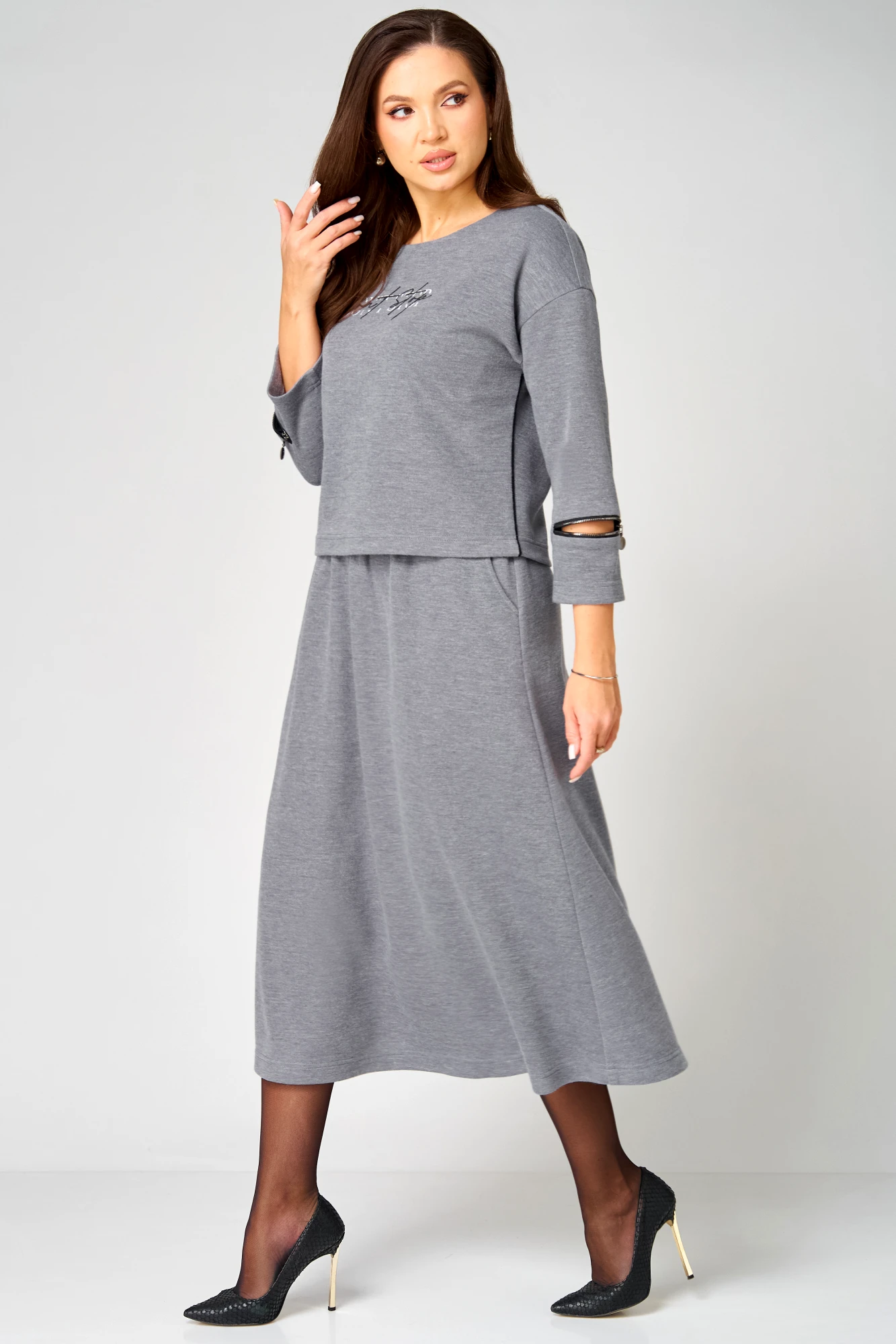Юбочный костюм Мишель Стиль 1344 серый