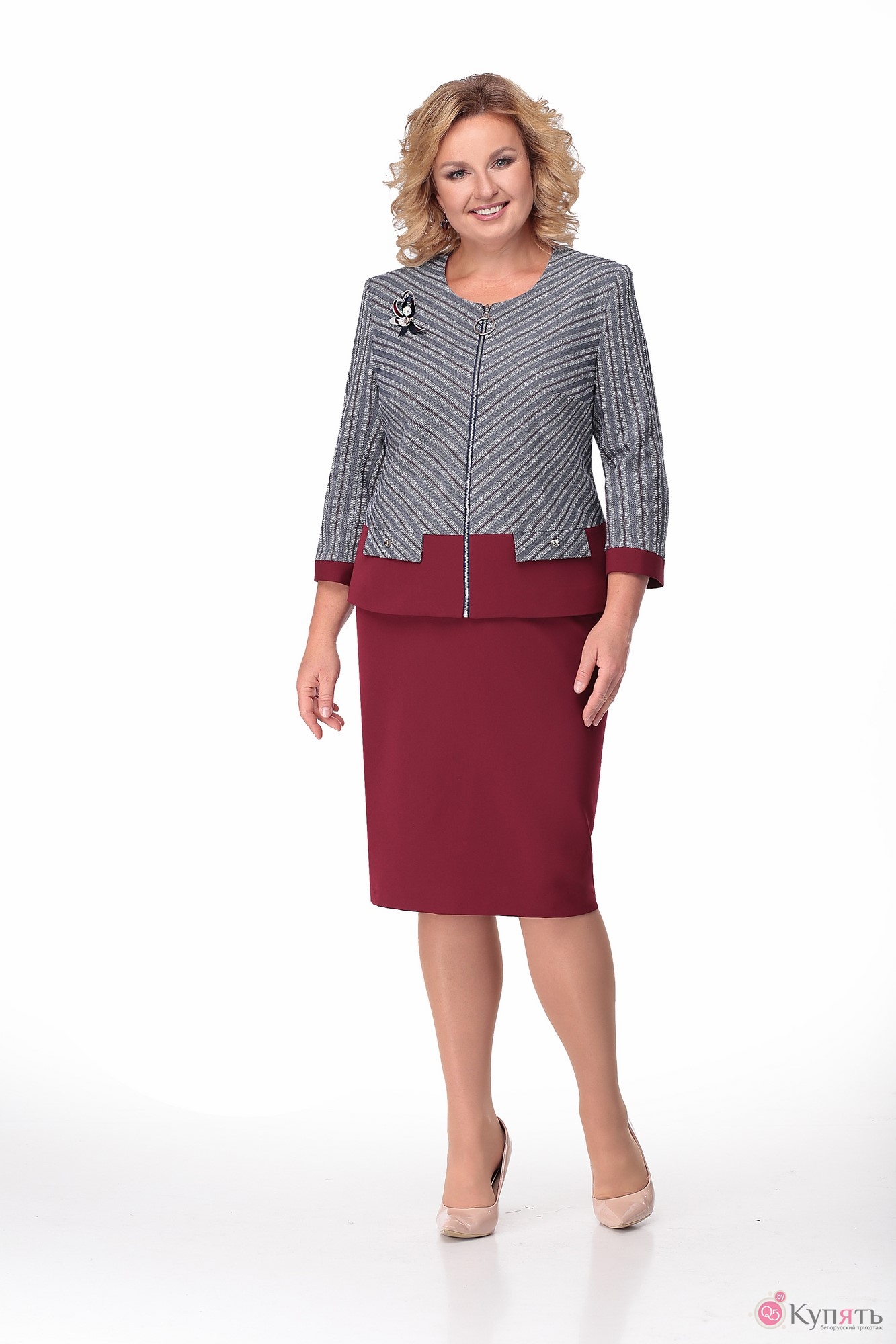 Юбочный костюм Мишель Стиль 799 бордо полоска с ID товара 194227