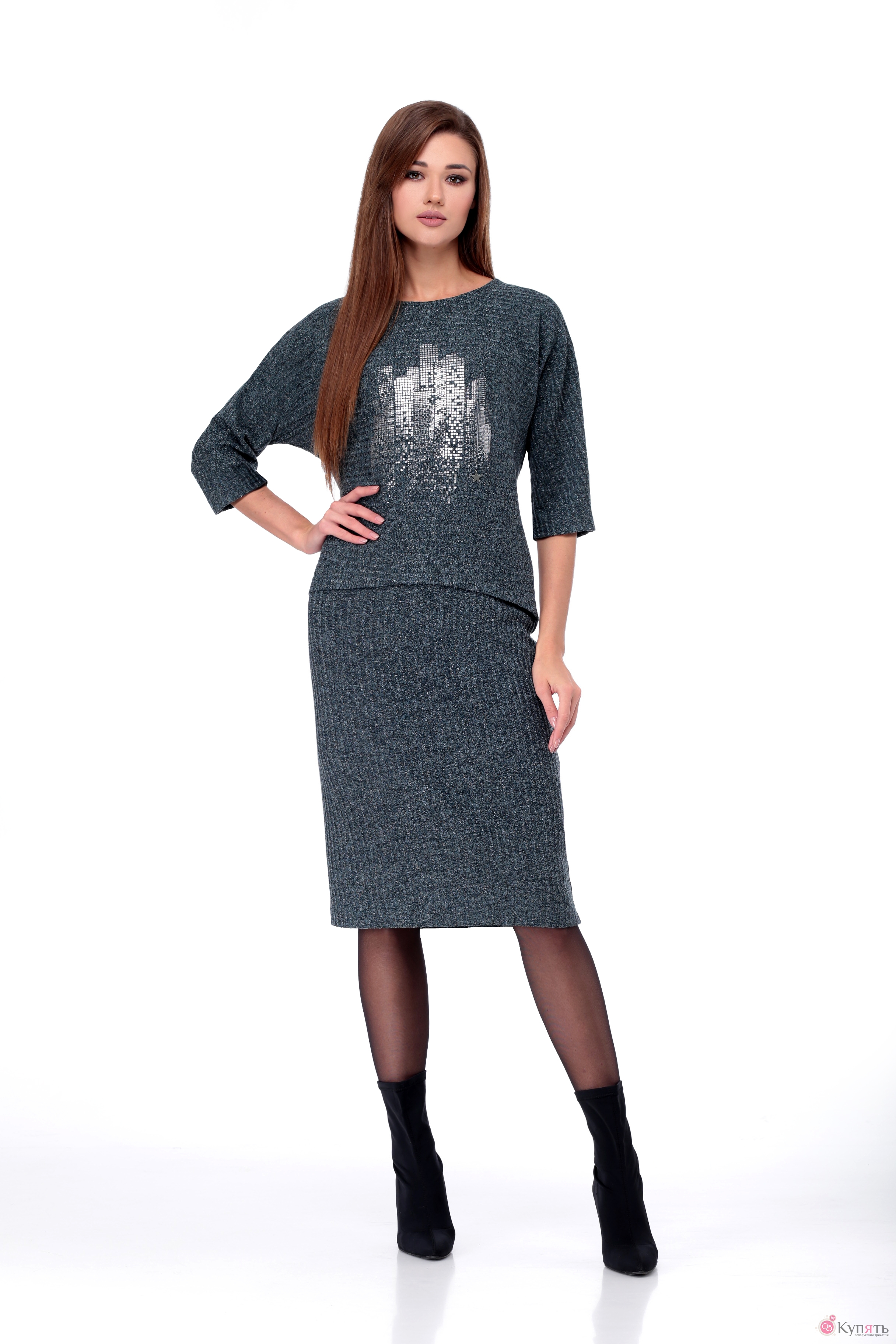 Юбочный костюм Мишель Стиль 811 т.зеленый с ID товара 196608