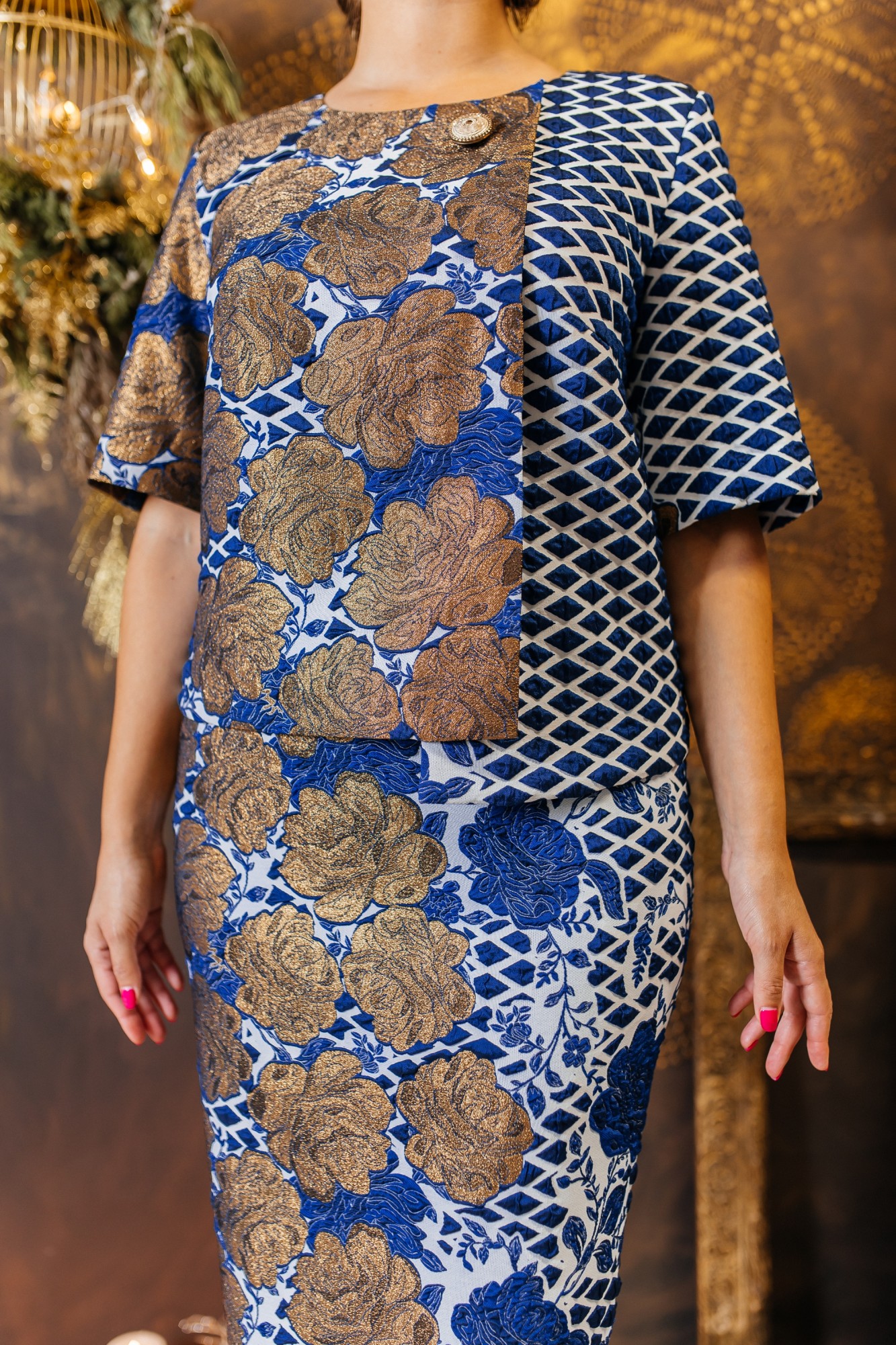 Юбочный костюм Мода Юрс 2291 голубой/золото с ID товара 354918