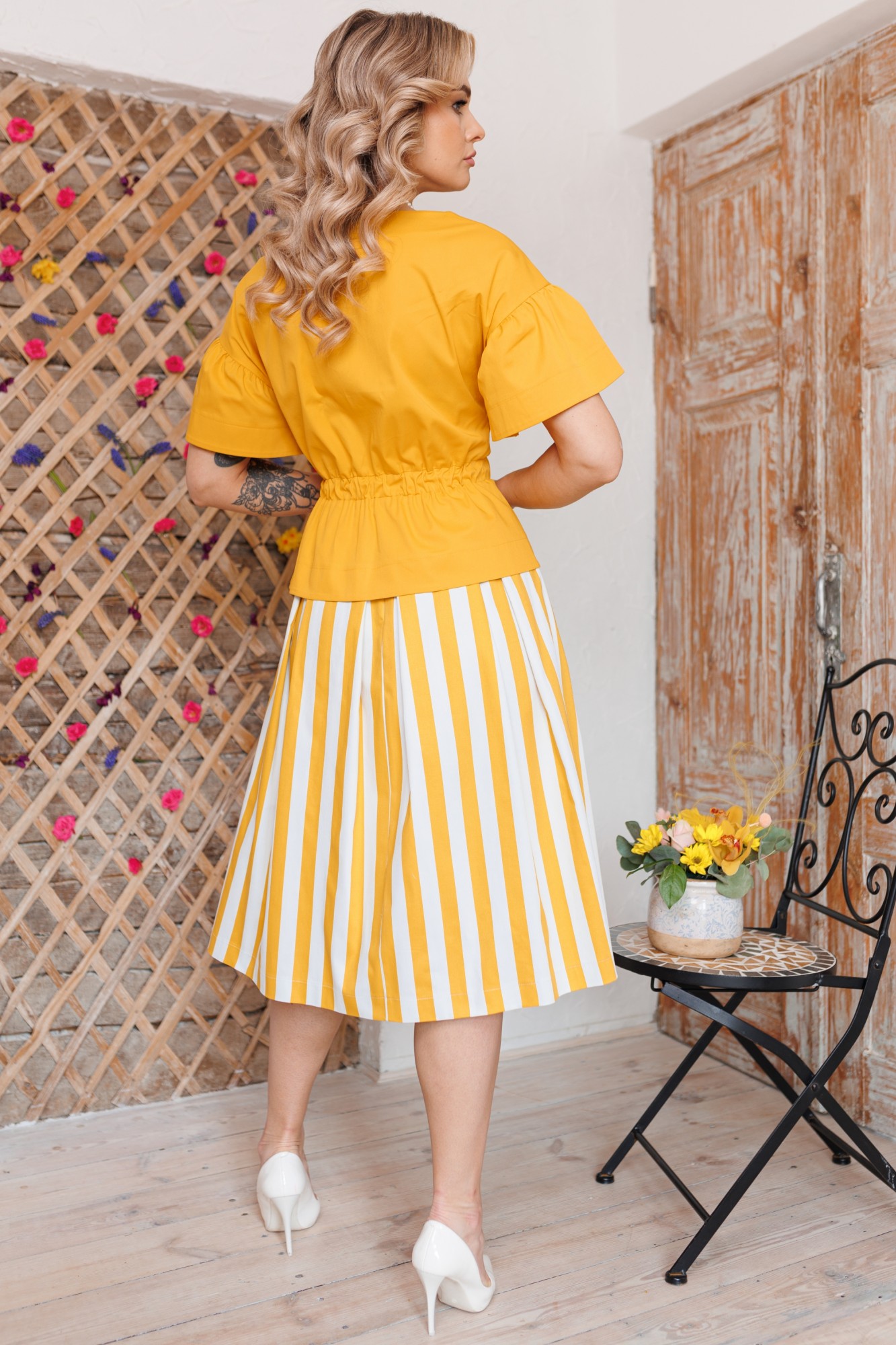 Юбочный костюм Мода Юрс 2688-1 горчица полоска с ID товара 364545
