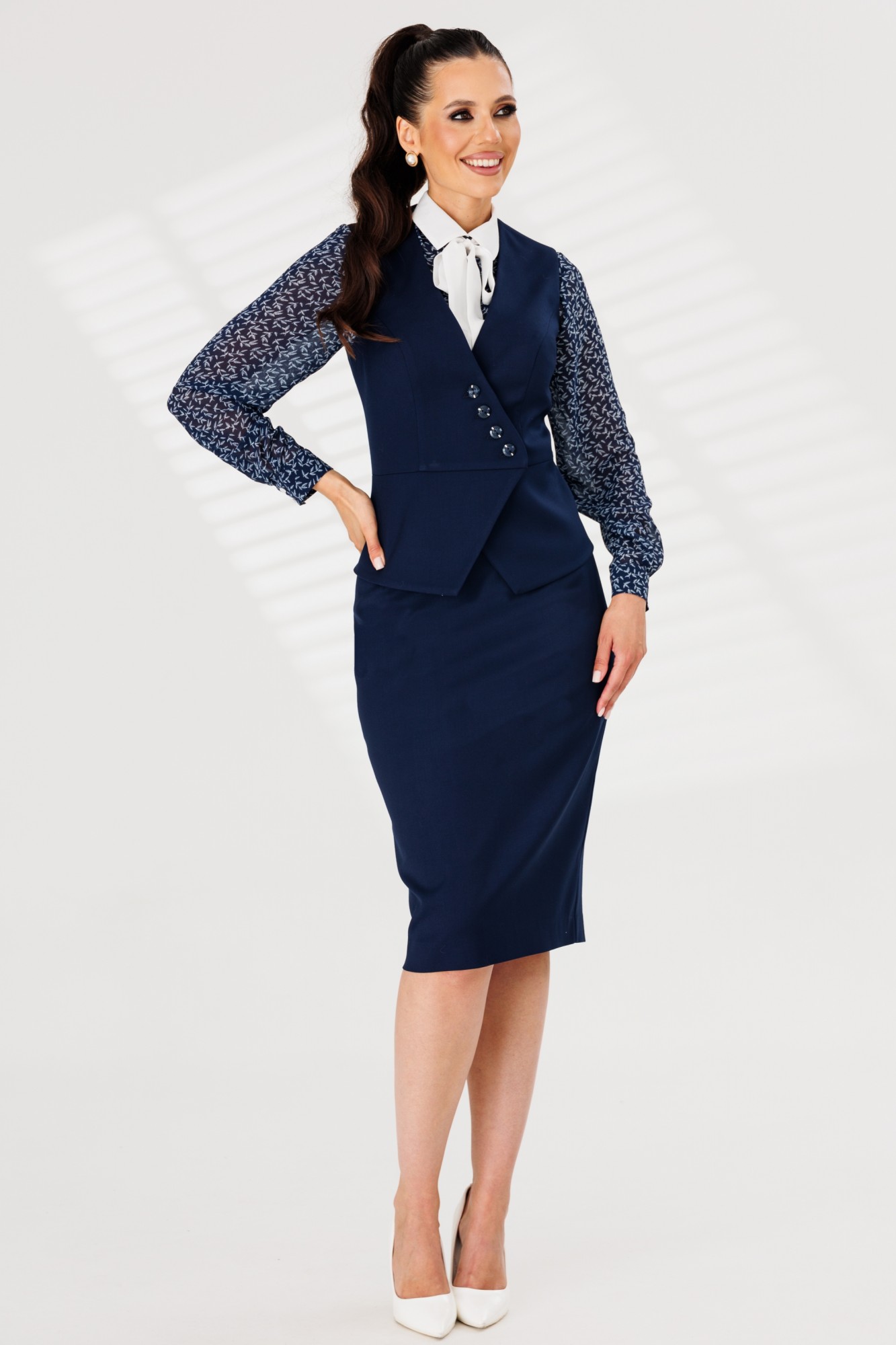 Юбочный костюм Мода Юрс 2766 тройка синий с ID товара 400978
