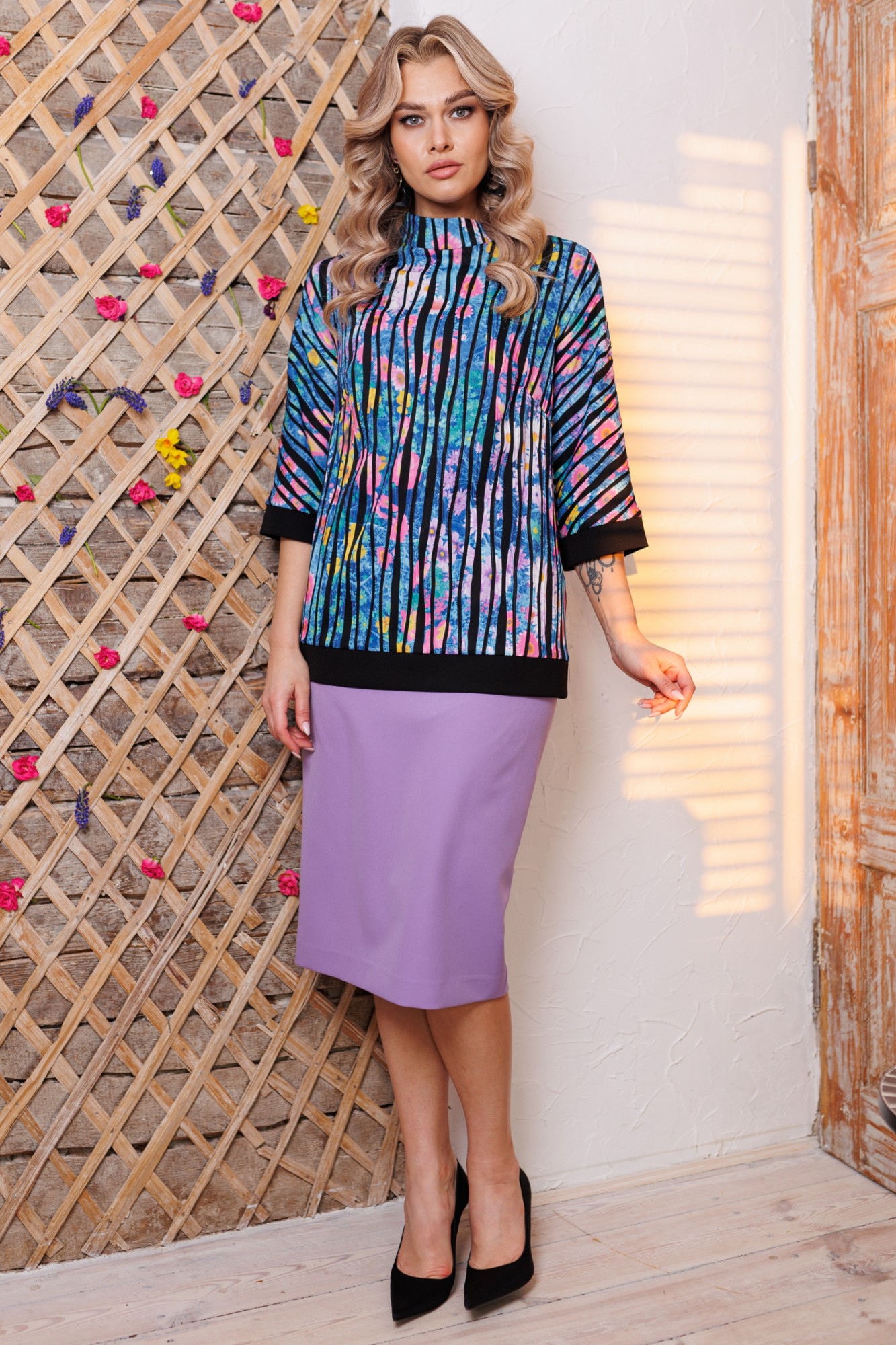 Юбочный костюм Мода Юрс 2805 фиолетовый цветы с ID товара 364544