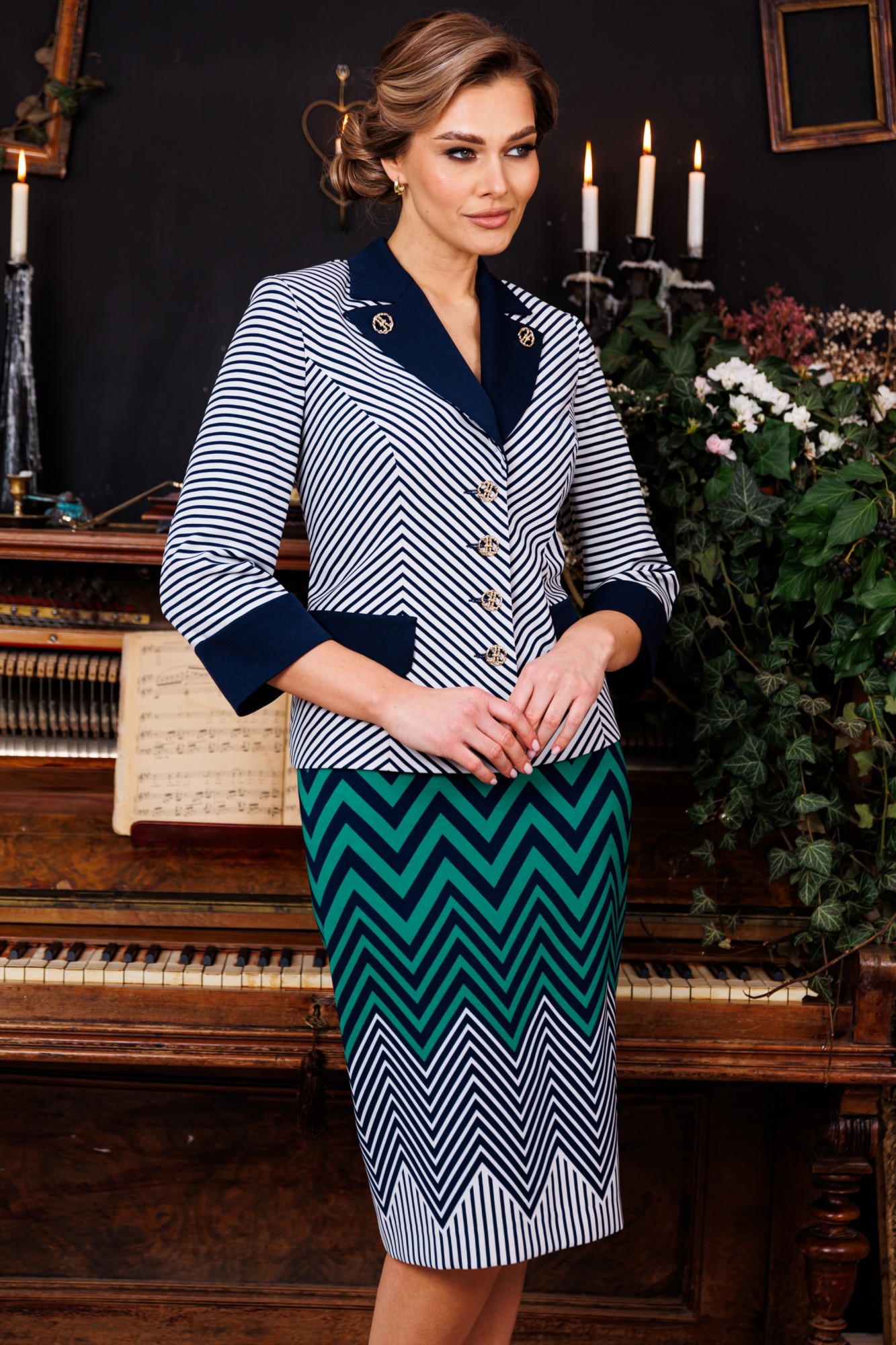 Юбочный костюм Мода Юрс 2845 полоска, зеленый с ID товара 387406