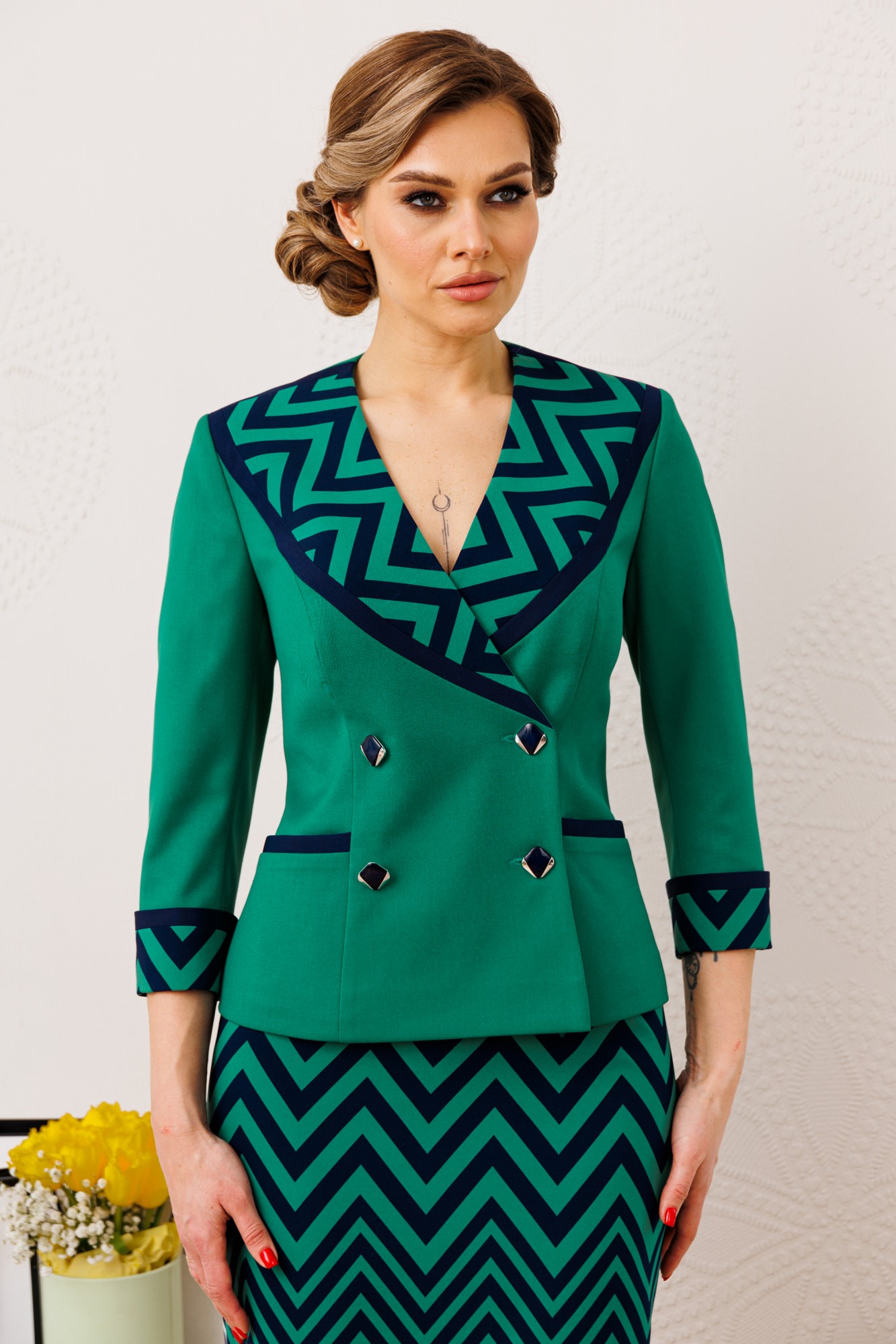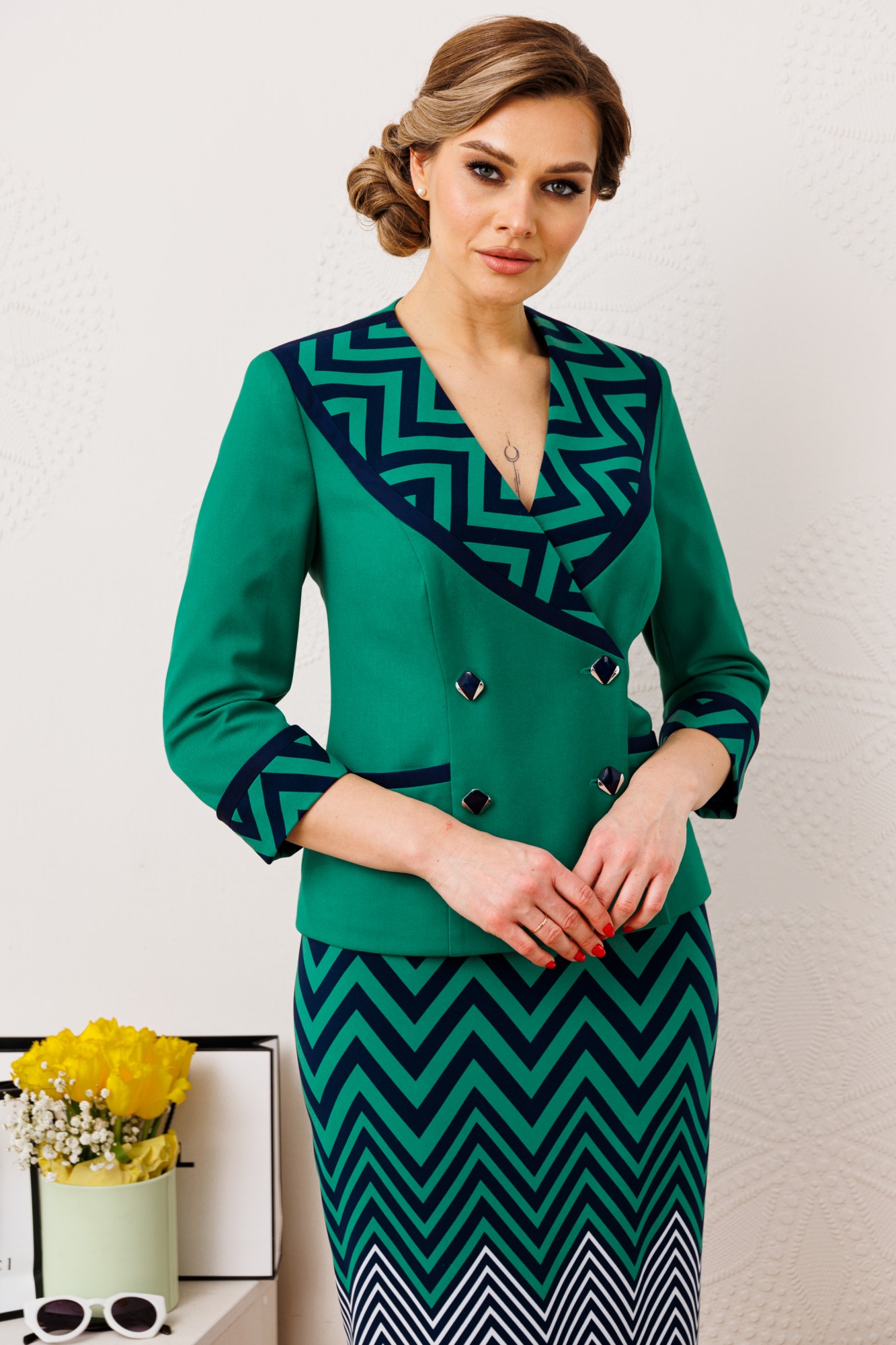 Юбочный костюм Мода Юрс 2851-0 Зеленый с ID товара 390461